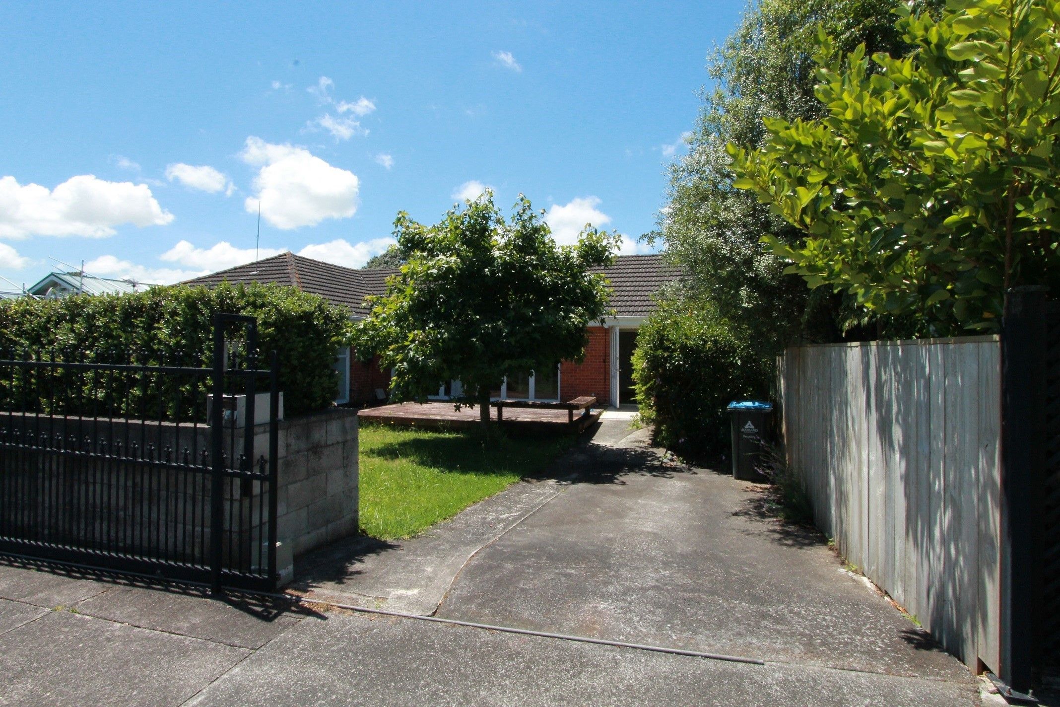 Remote secure front bar gate, 1 OSP parking space.