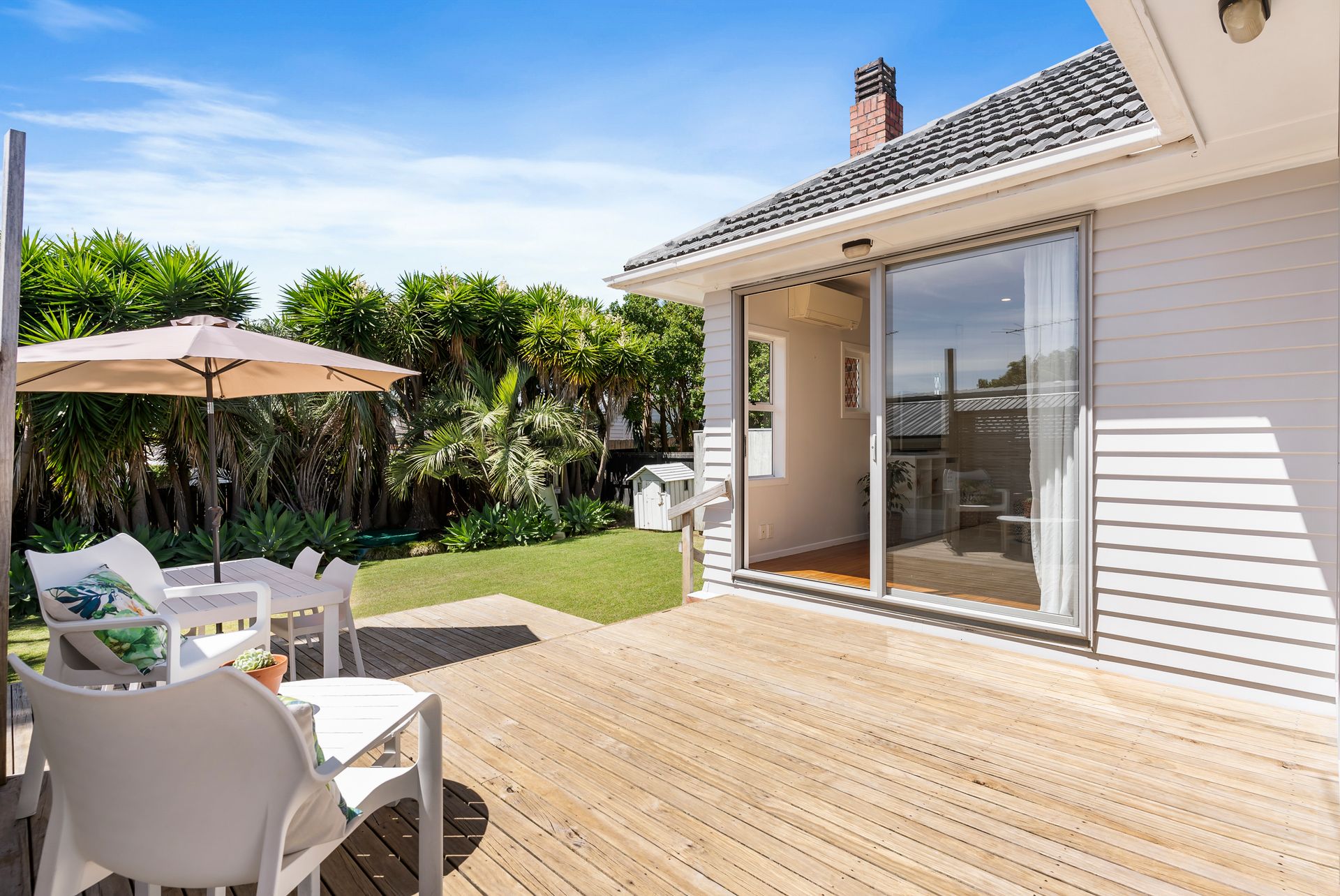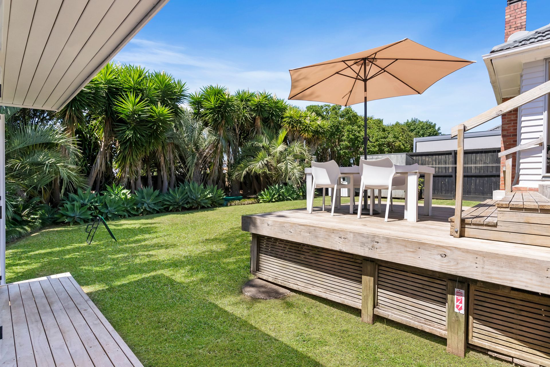 • Step beyond the deck to an expansive, secure backyard and lush established gardens that offer privacy and a paradise for pets and children alike, complete with a playhouse, slide, and sandpit;