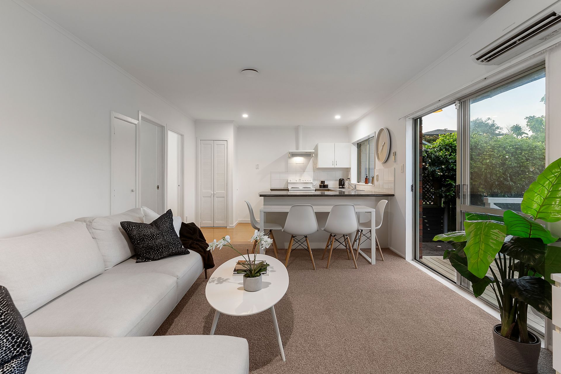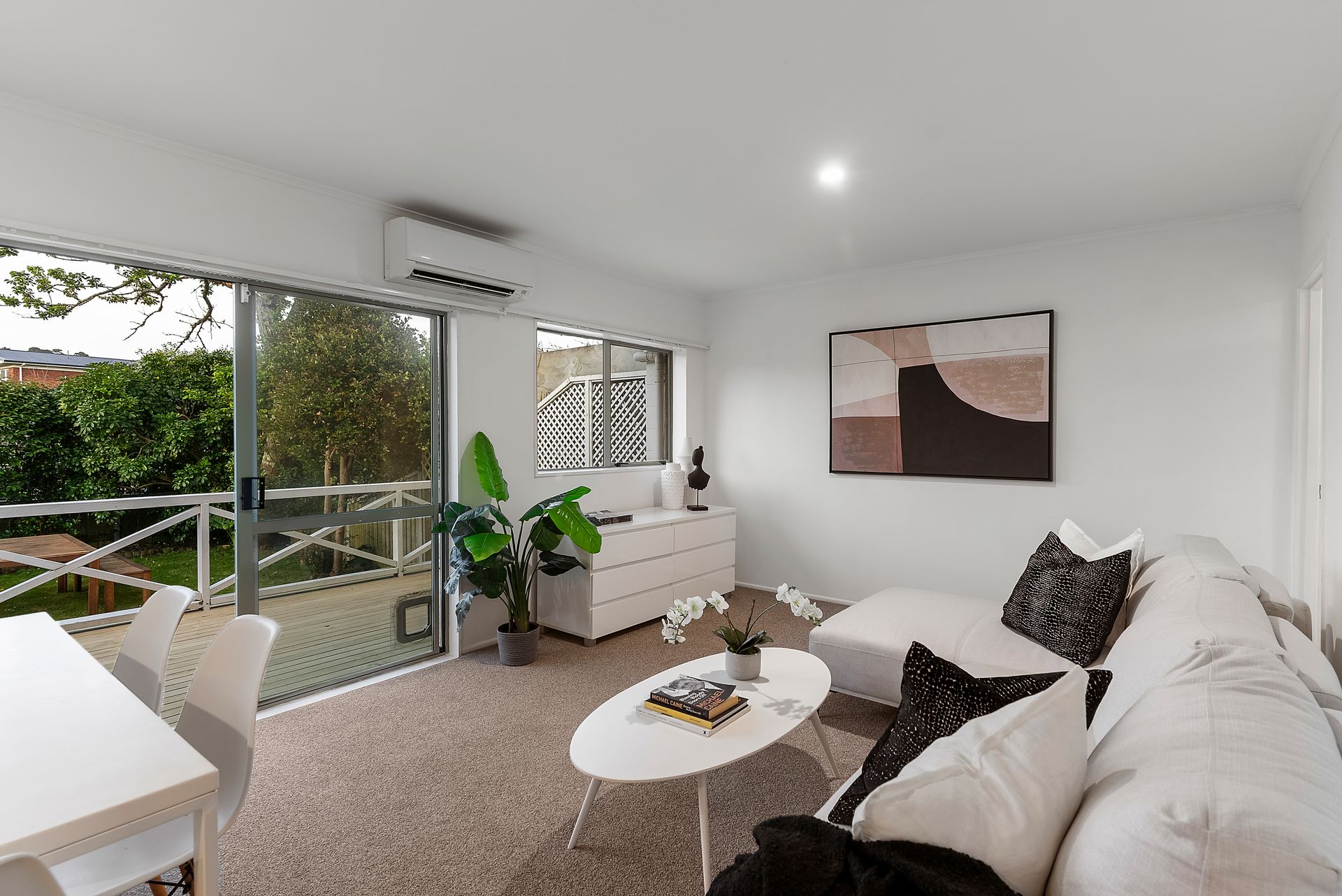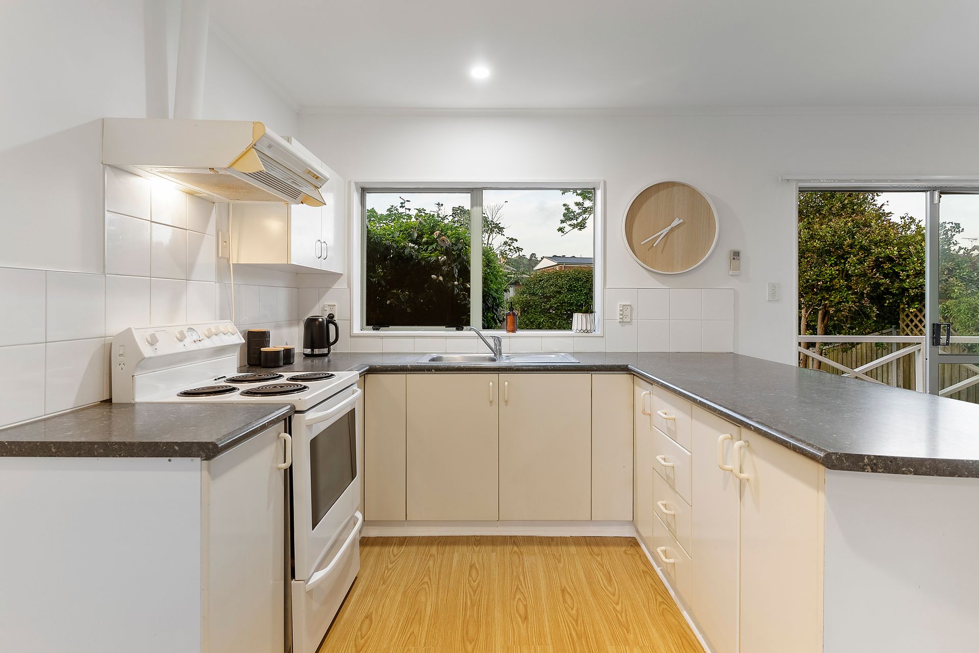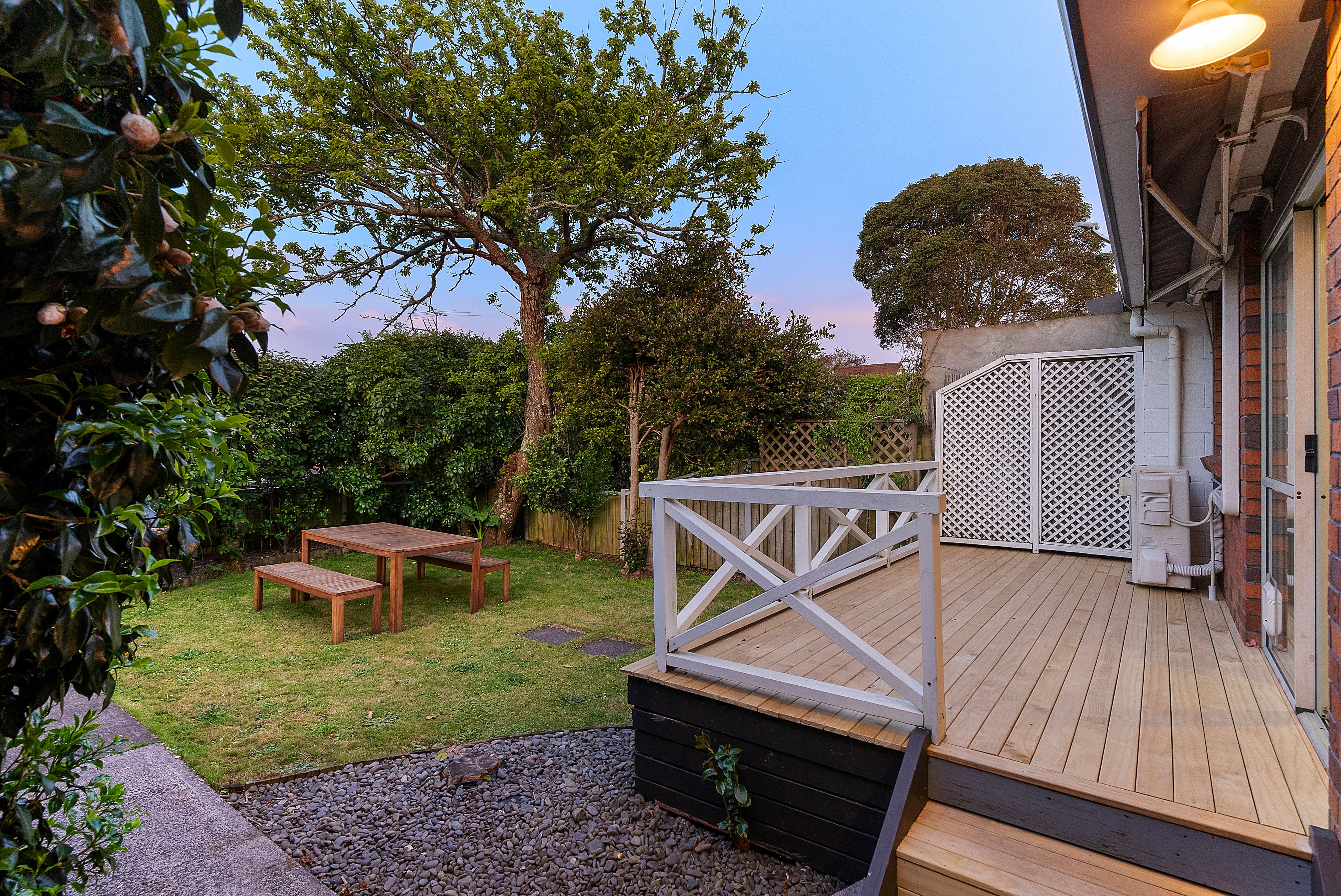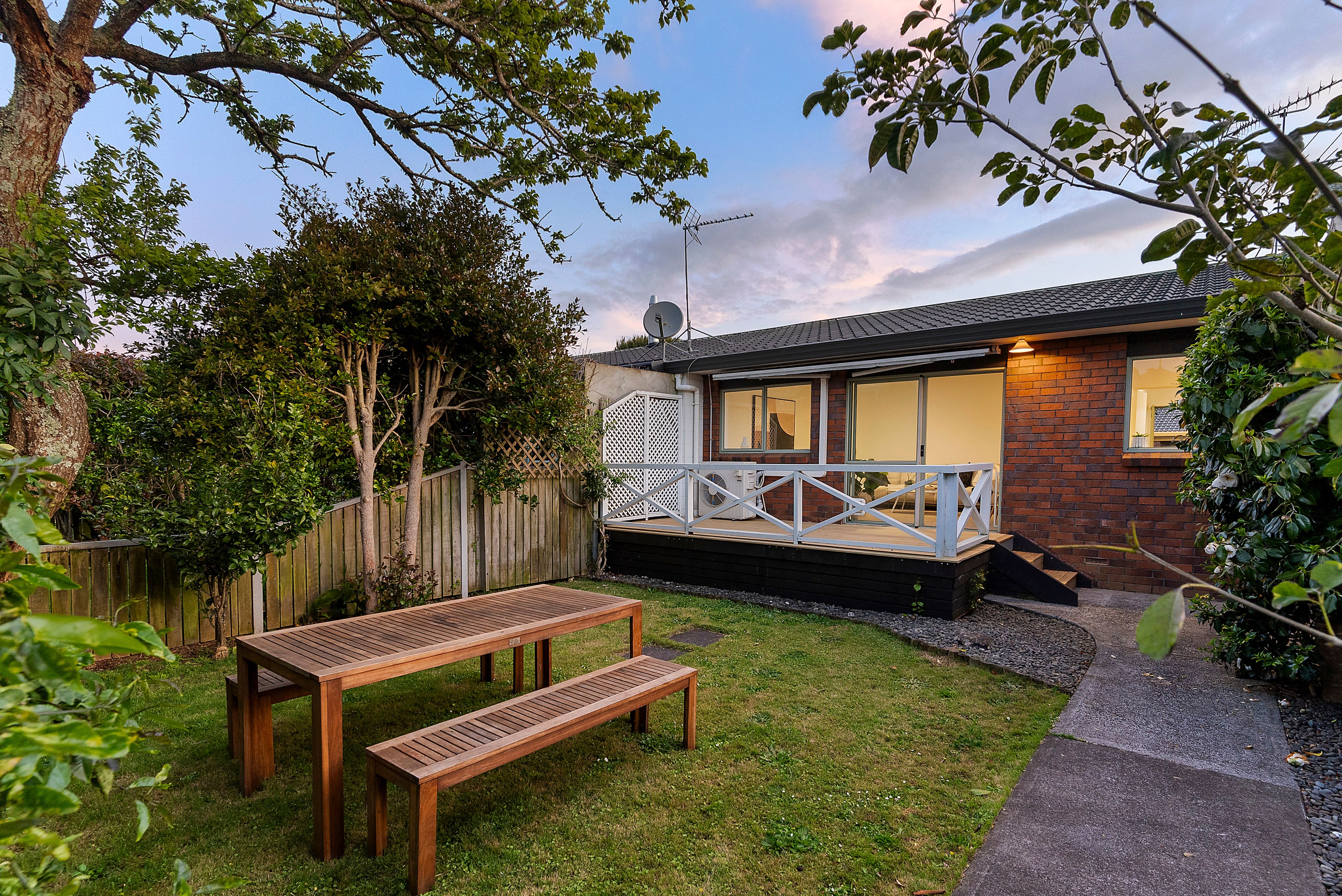 The open plan living, dining and kitchen offer indoor-outdoor flow, opening to the rear deck and backyard which face north for all-day sun while presenting a picturesque view of the One Tree Hill summit in the distance. Mature trees and plants complement the property providing further privacy to the quiet sanctuary.