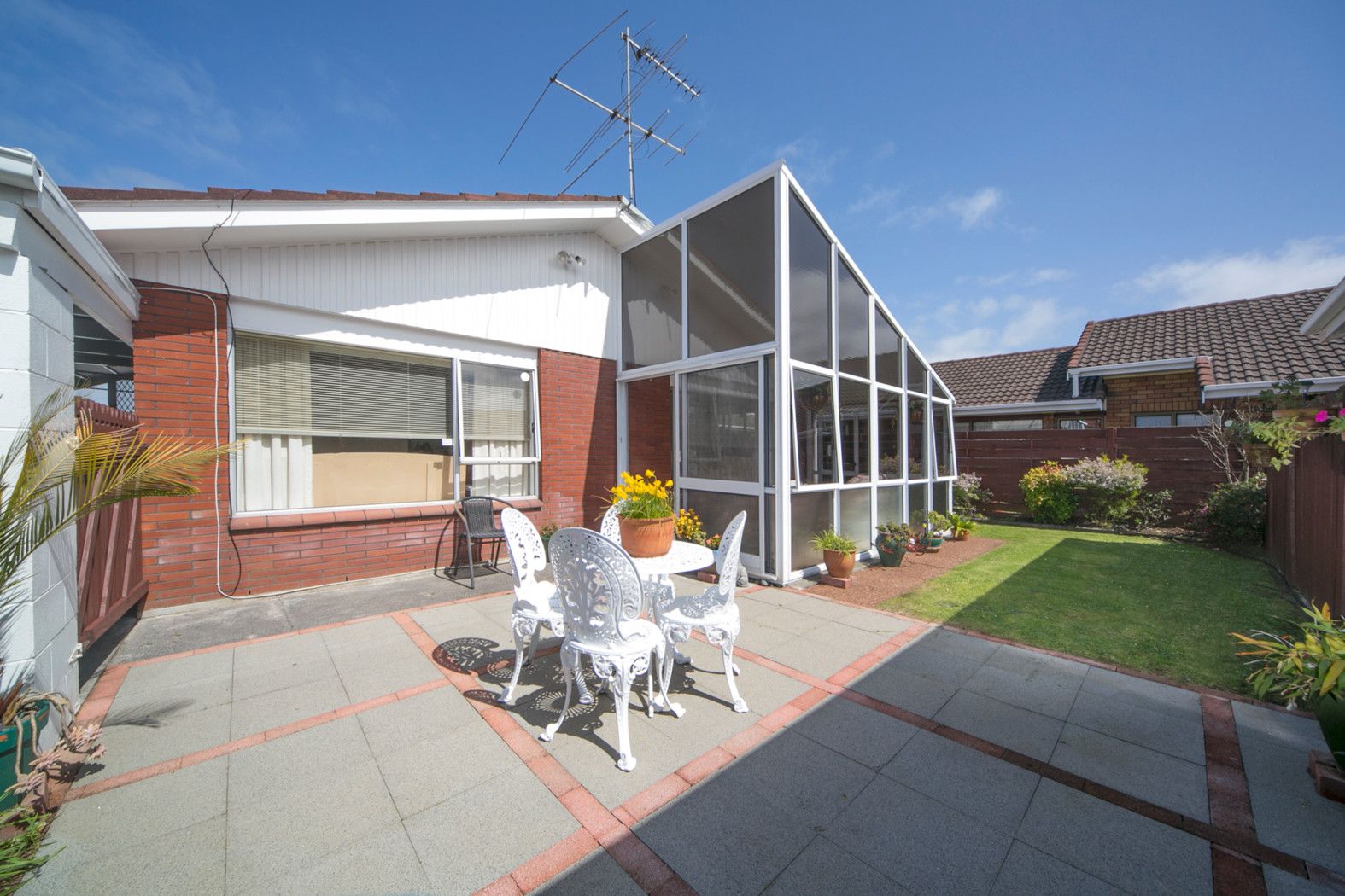 A fully-fenced low-maintenance outdoor area, with grass and paved spaces for BBQ, entertaining or play!