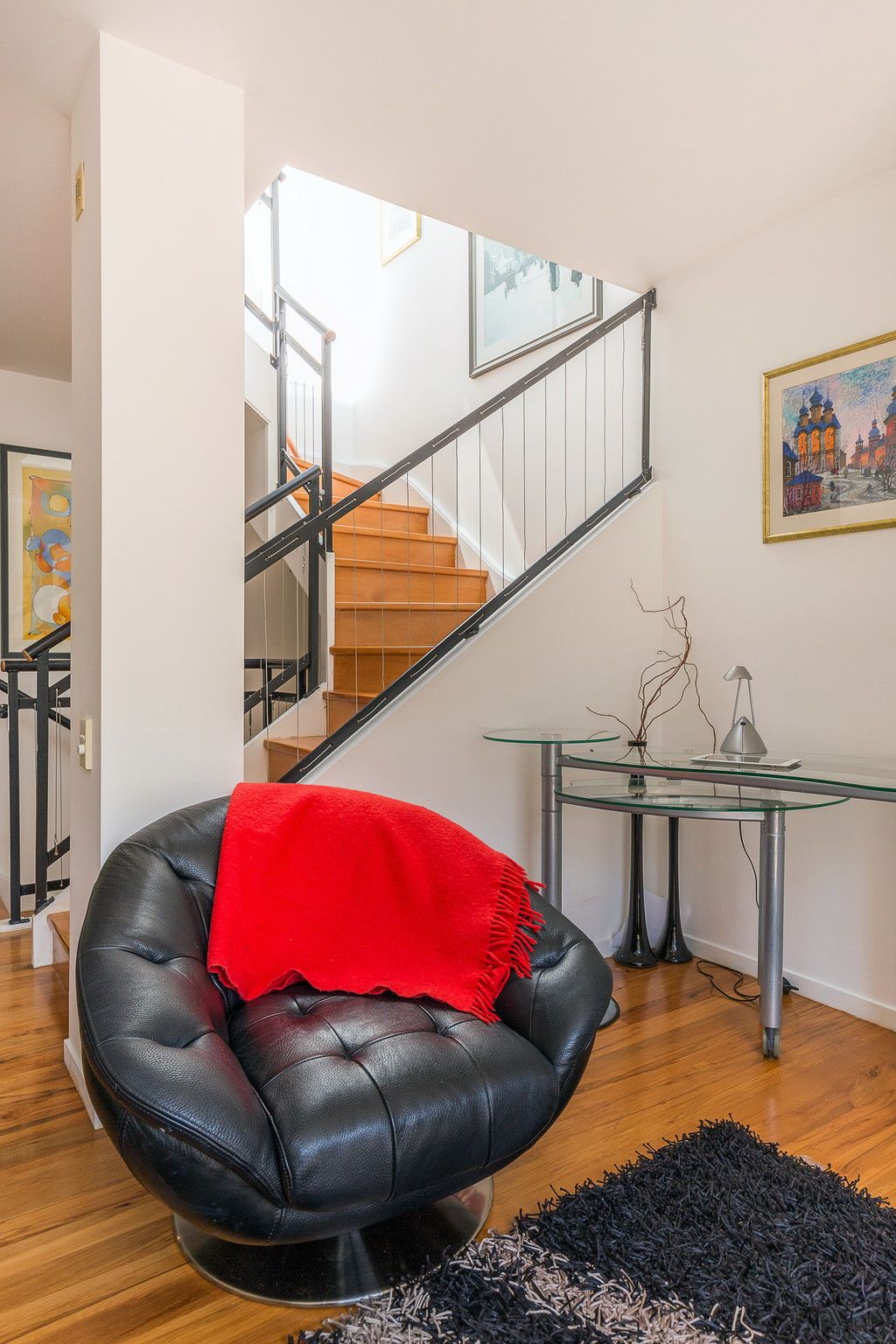 Then this is a must see. This terrace house is over three levels with a tandem garage, laundry and bedroom and bathroom downstairs. The middle level is all living with a sunny balcony ,outdoor courtyard a cosy gas fire and a flat screen TV .Upstairs are two generous sized bedrooms and a bathroom.