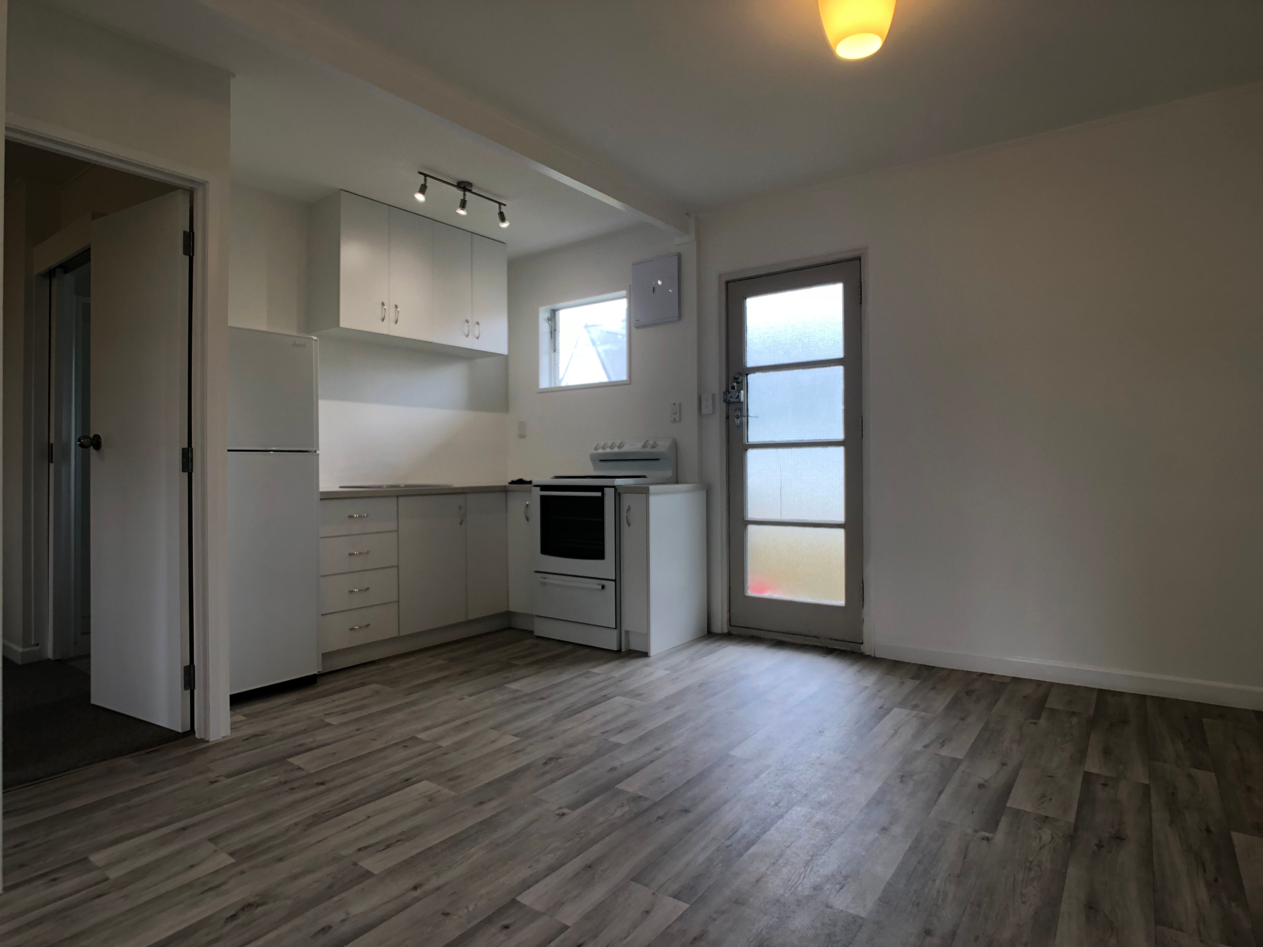The property is presented in a clean, modern style with neutral paint and carpet and modern vinyl throughout. Front or rear door access lead in to the full width open plan lounge and dining area with garden views to the front and Museum views to the rear. The kitchen comes with fridge/freezer and freestanding electric oven. There is a good sized double bedroom with mirror fronted wardrobe storage and a rear facing bathroom with corner sited step in shower. The property has the superb benefit of being insulated and sound proofed and comes with one designated off street car park.unfurnished, water included. Shared Laundry. No smokers, no pets. Max x2 tenants.