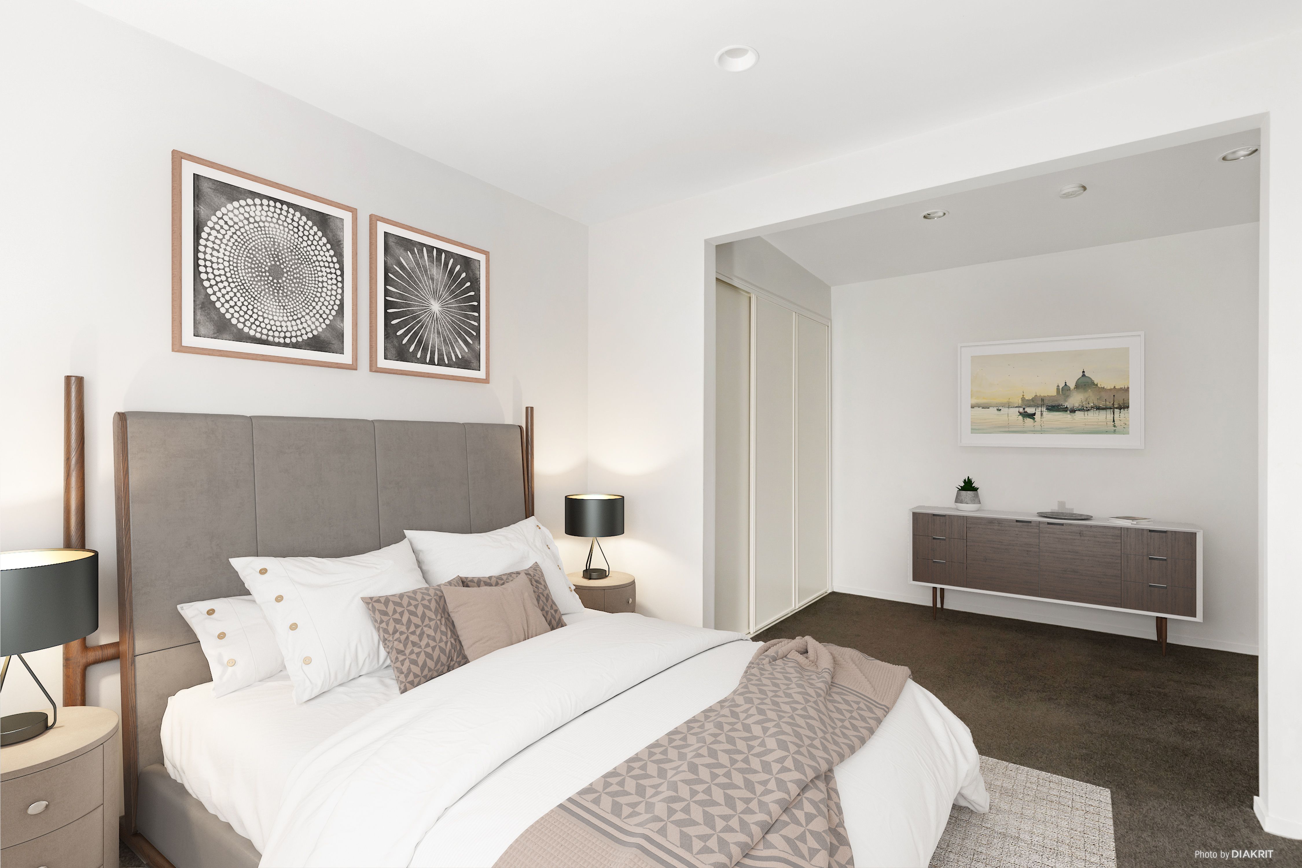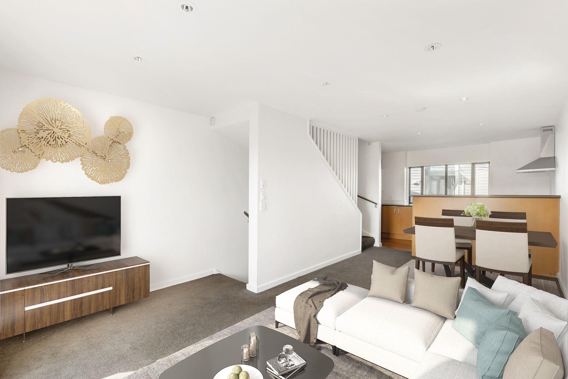 The north facing main floor level consists of a modern kitchen opening into a large open plan lounge and dining area. Step out of the lounge and onto the balcony for outdoor entertaining. Up the stairs from the lounge to the top floor accesses two spacious bedrooms, with a large main bathroom nestled between them. Back downstairs on the ground floor is a single secure garage with laundry facilities, a third bedroom with another full bathroom plus office area or a second living. There are also easily accessible visitor car parks right outside.