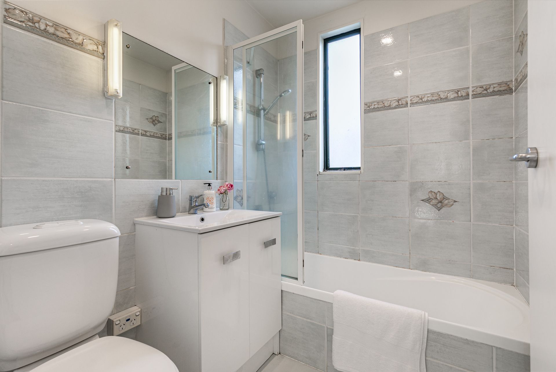 This terraced townhouse offers three bedrooms complemented by two bathrooms, including an ensuite off the master.