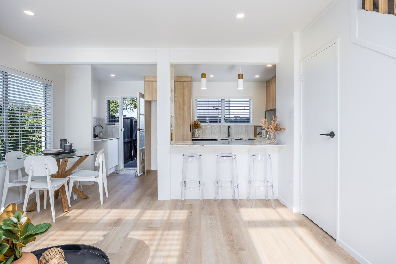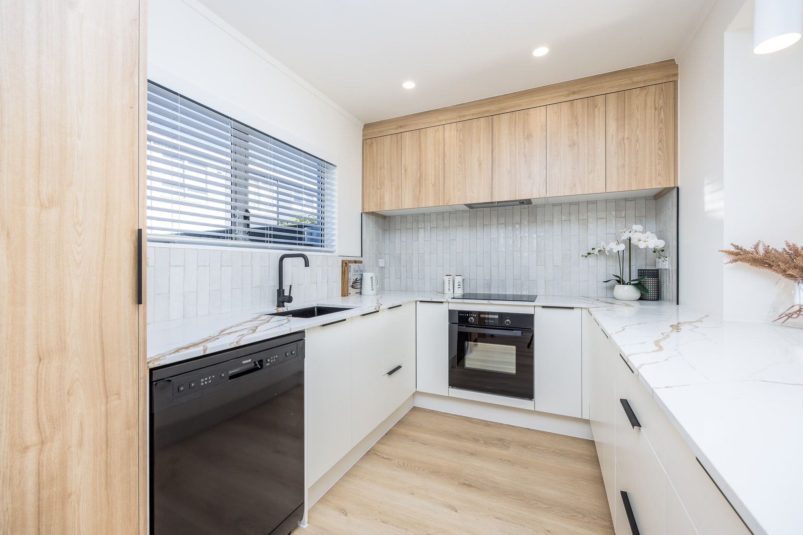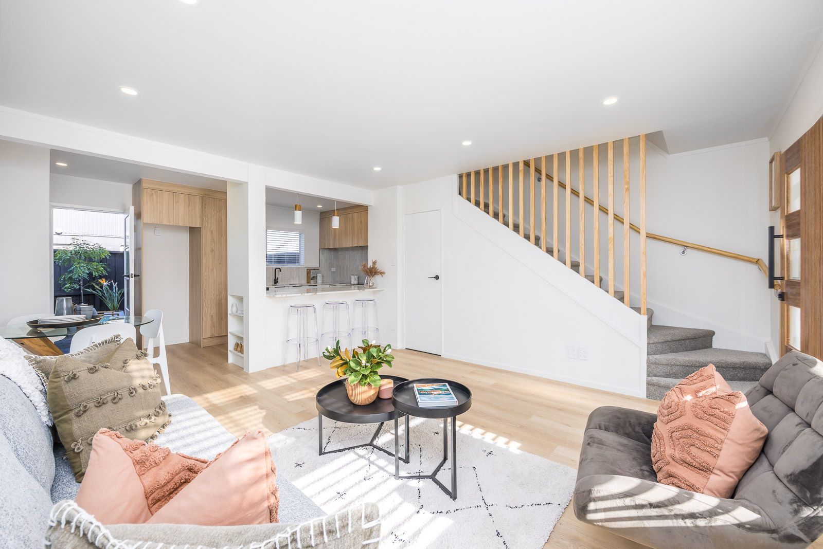 Downstairs you will find spacious open plan living and an impeccable kitchen with seperate laundry area.