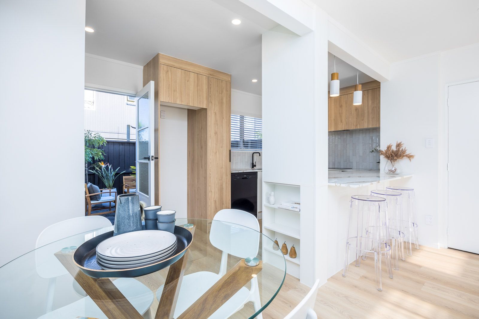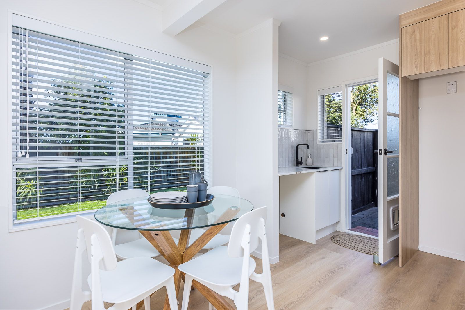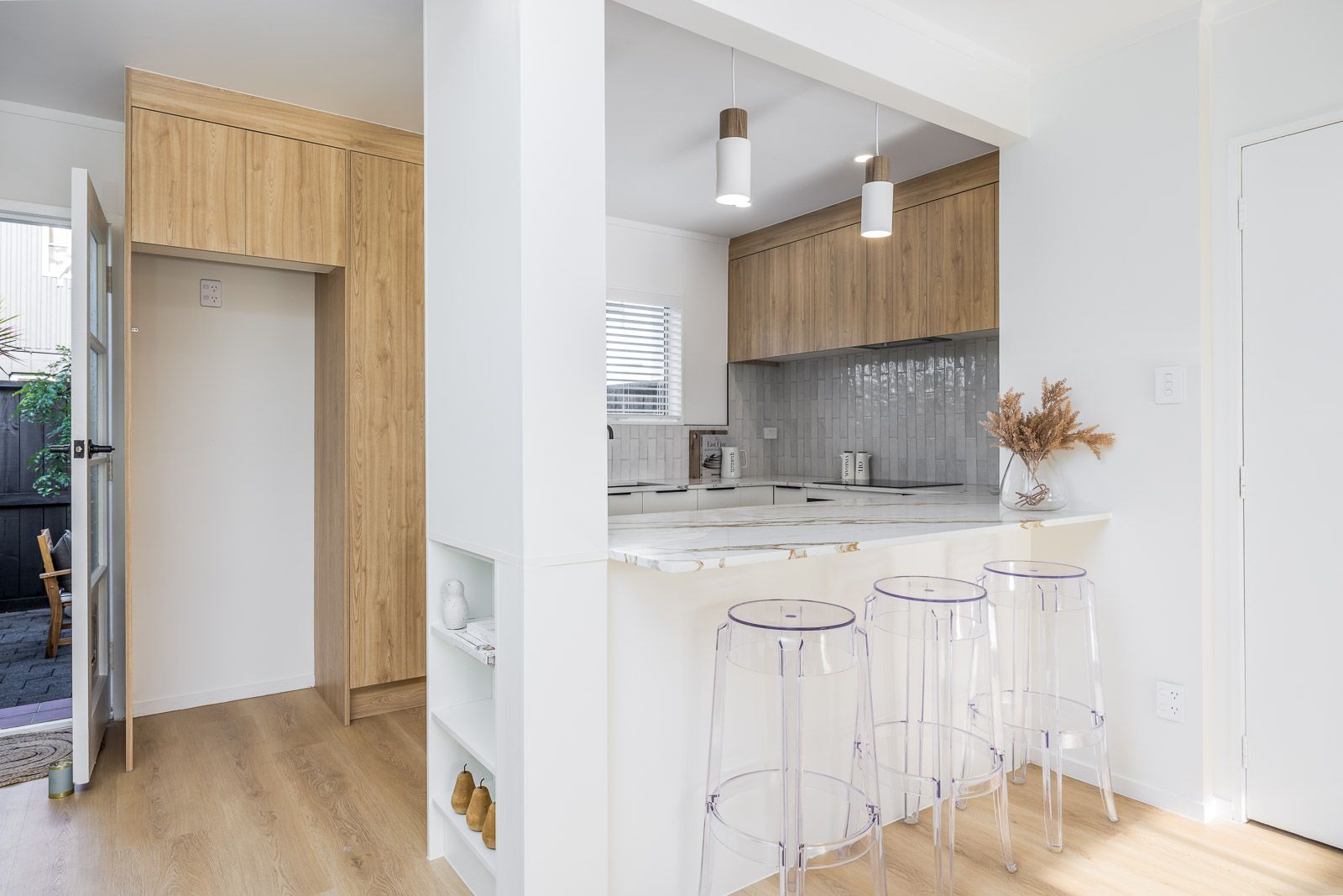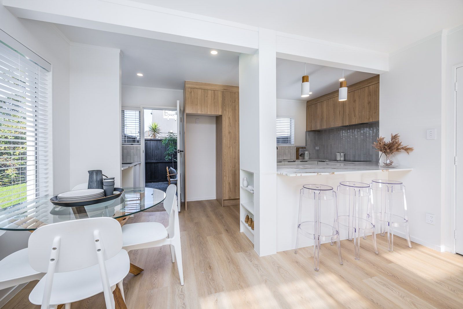 Downstairs you will find spacious open plan living and an impeccable kitchen with seperate laundry area.