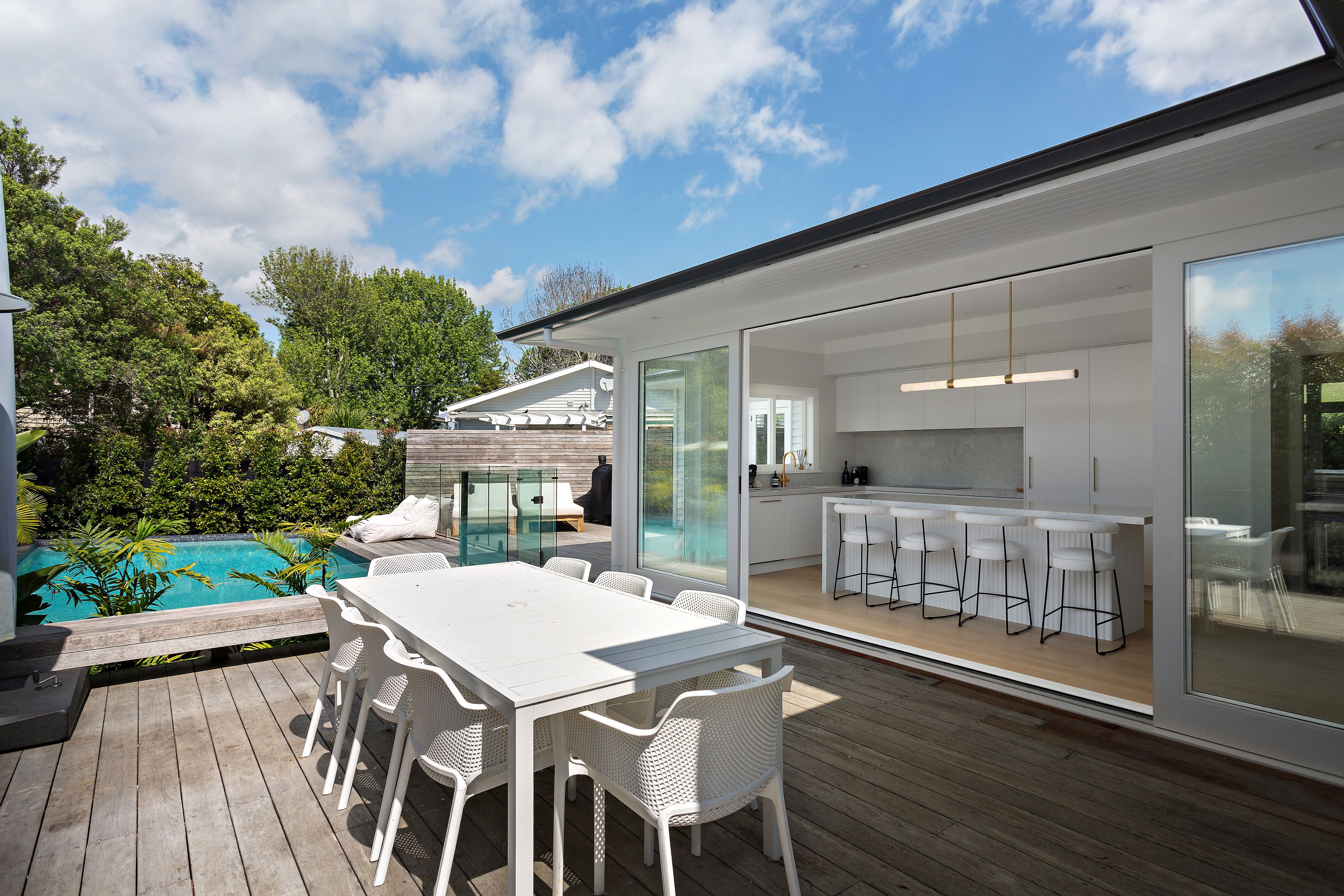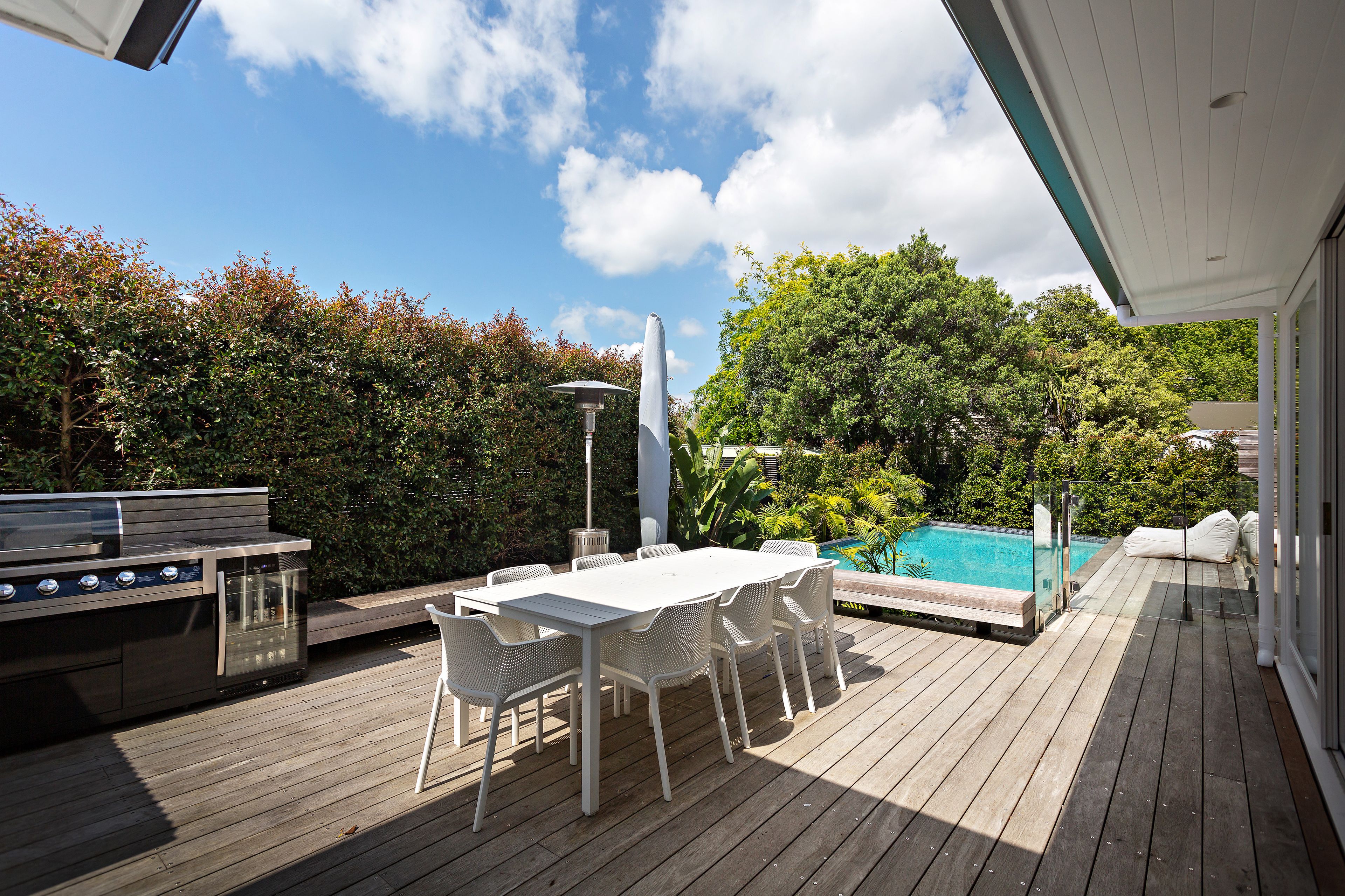 "It has served us really well! We've really enjoyed entertaining on the north facing deck, lapping up the warm afternoon sun before you take a dip. The purpose built BBQ and outdoor fridge has been an awesome addition to enhance our entertaining options - our mates love it! The house layout fits perfectly with the movement of the sun during the day with the kitchen capturing loads of morning warmth and light to enjoy your morning brew. Our little boy loves the outdoor area, including the astro turf lawn. We can sit out on the deck and we've got a good, clear view of him playing securely. Everything is pretty much brand new due to the recent renovation. The home has all the comforts of a new home but has that character feel & is understated from the road. It's also incredibly private which we love. The high fence at front means no one can see in from the road and the established gardens help that too. The area is epic too, walking distance to dairy, beach, park etc."