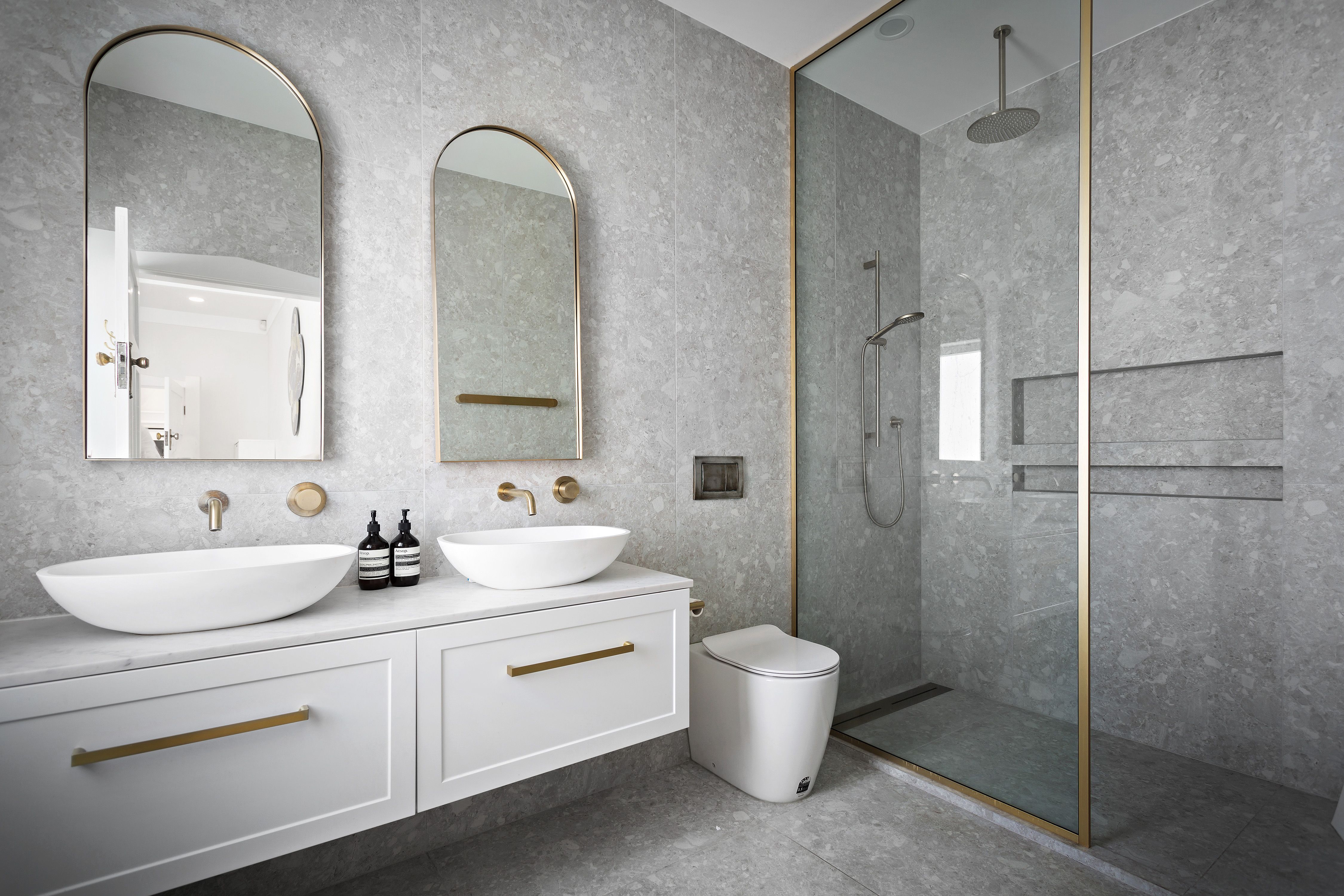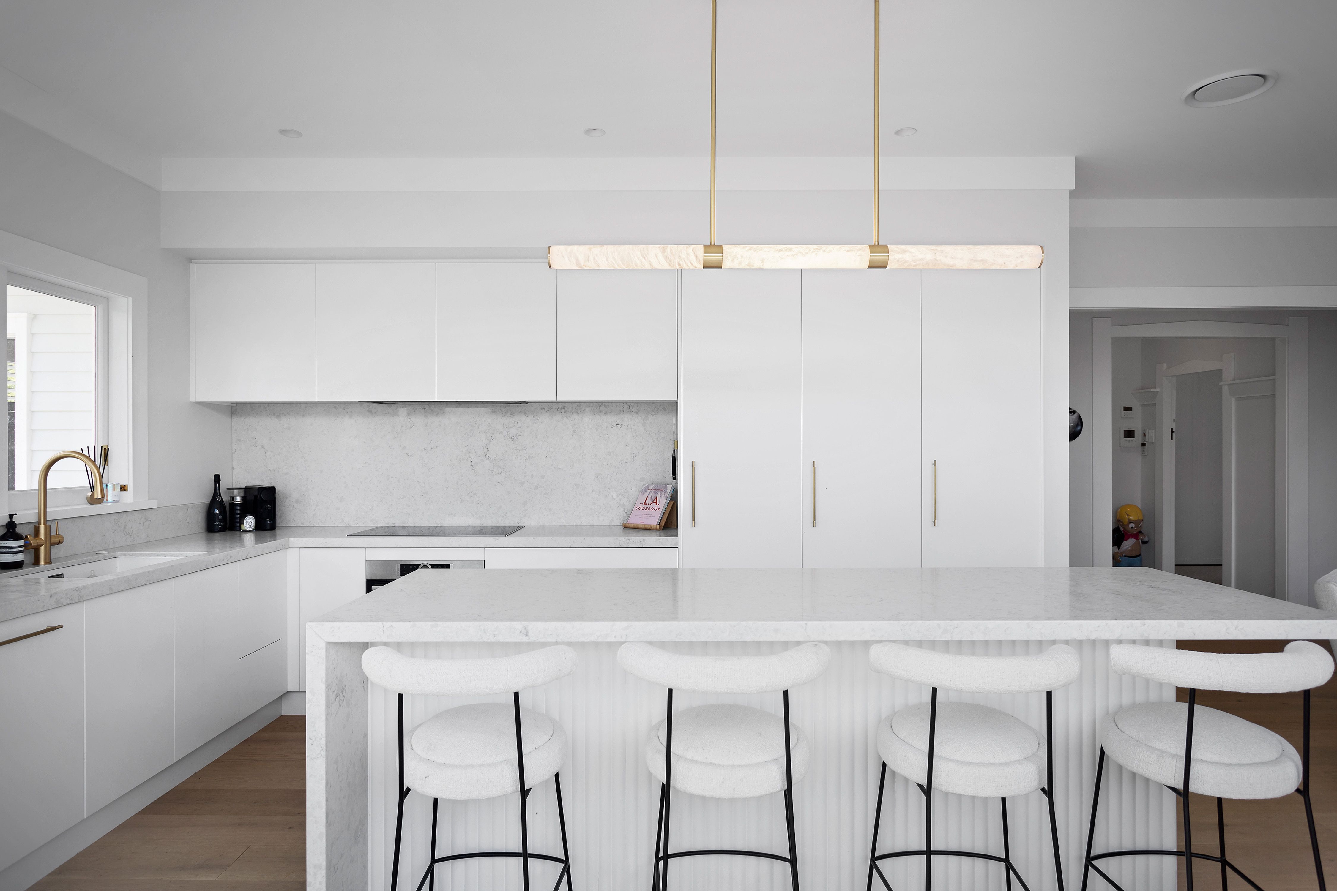• Induction cooktop and integrated rangehood.