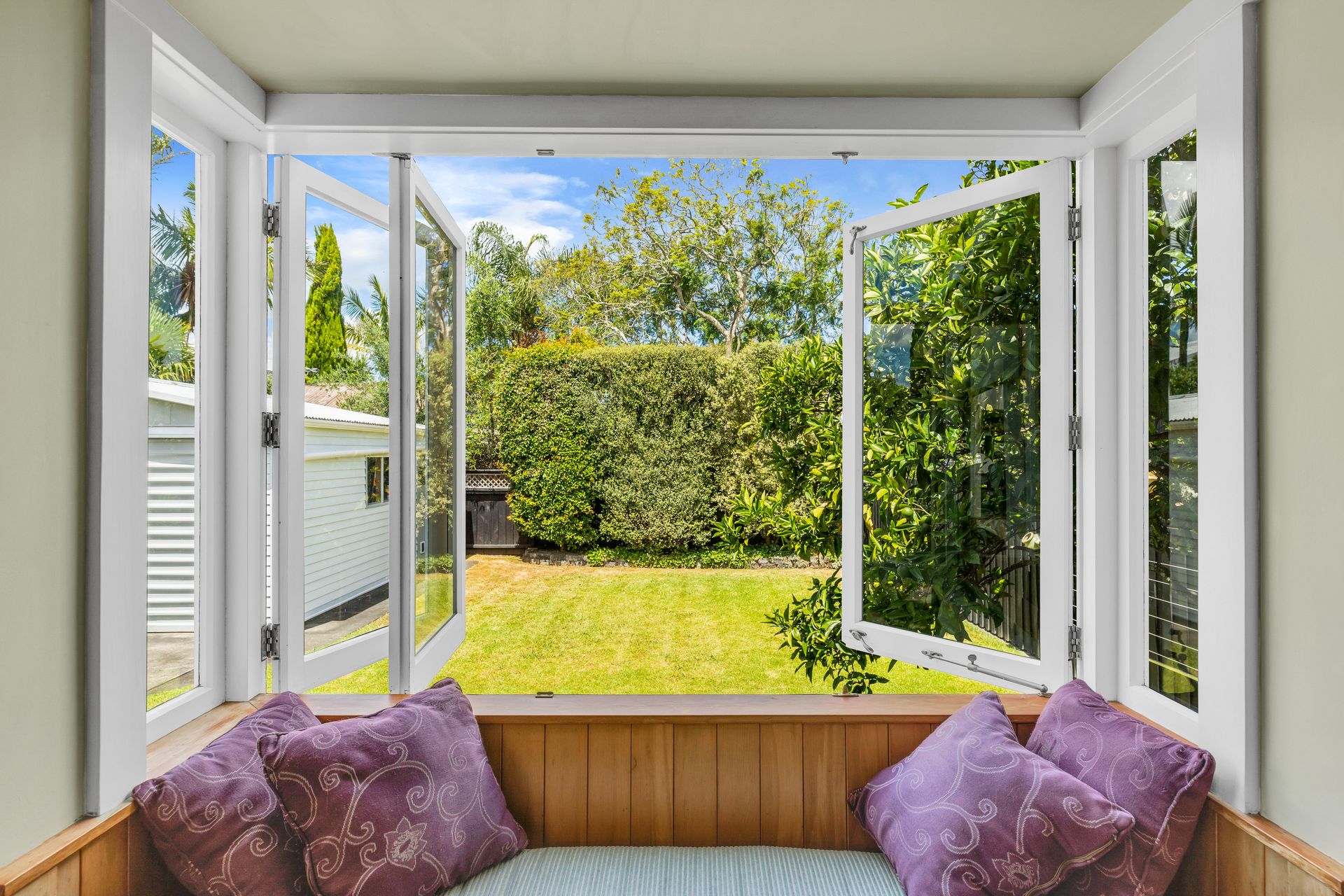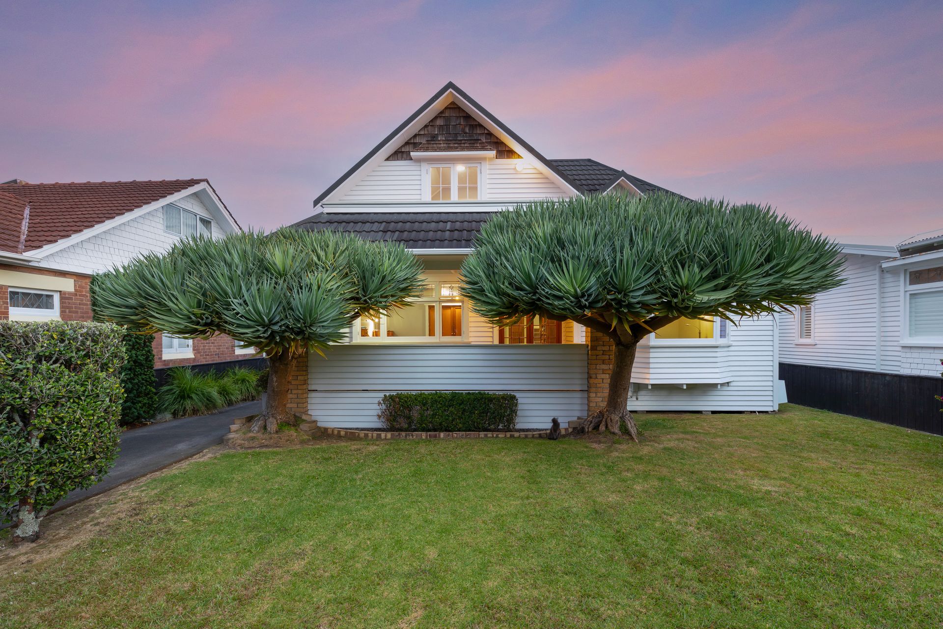 The home is super charming from the street, set behind a white picket fence and established plantings for privacy, on a very flat manicured section with plenty of room for the boat, the vehicles and the stand-up paddleboards thanks to secure off street parking as well as double garaging.