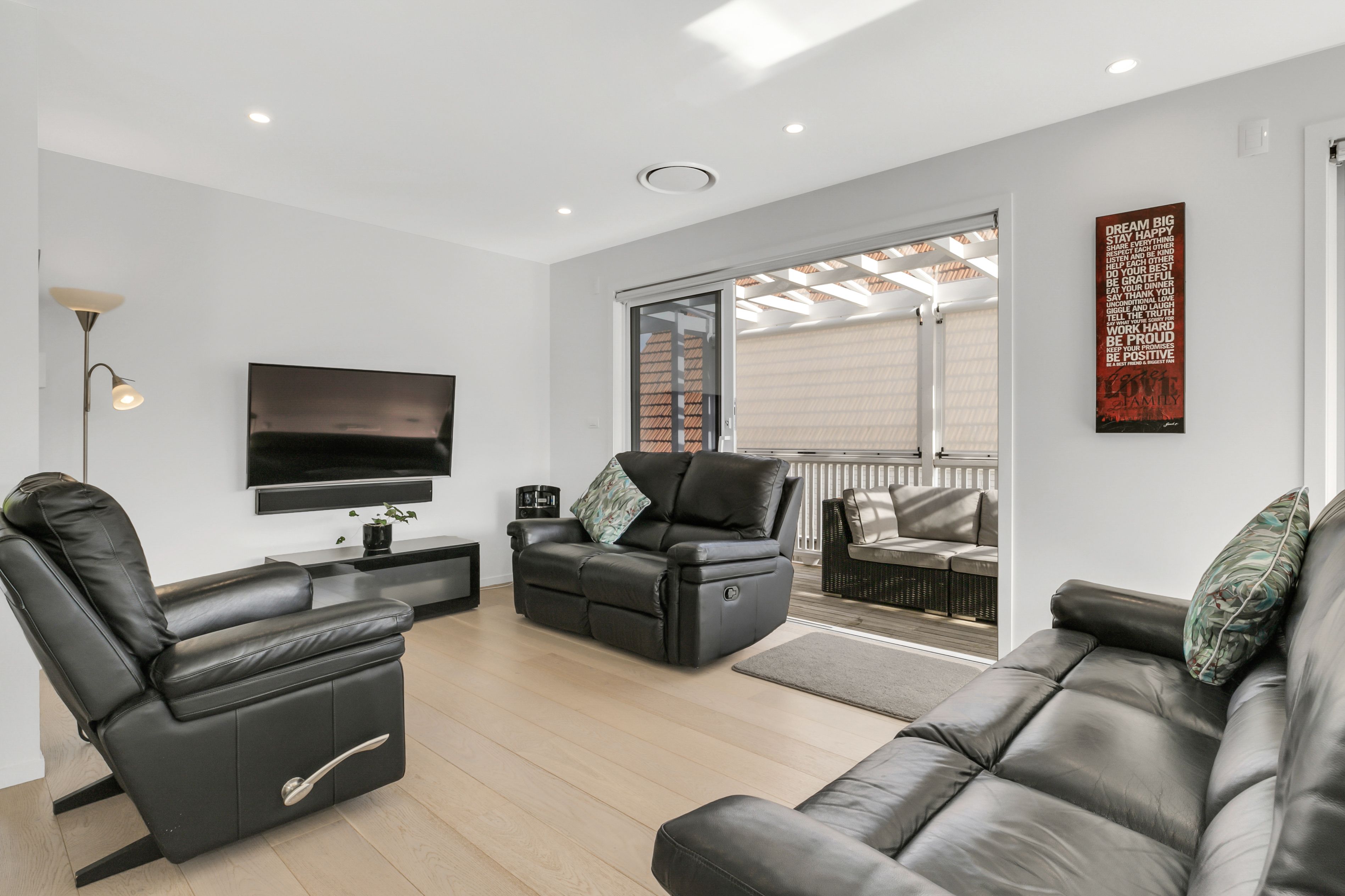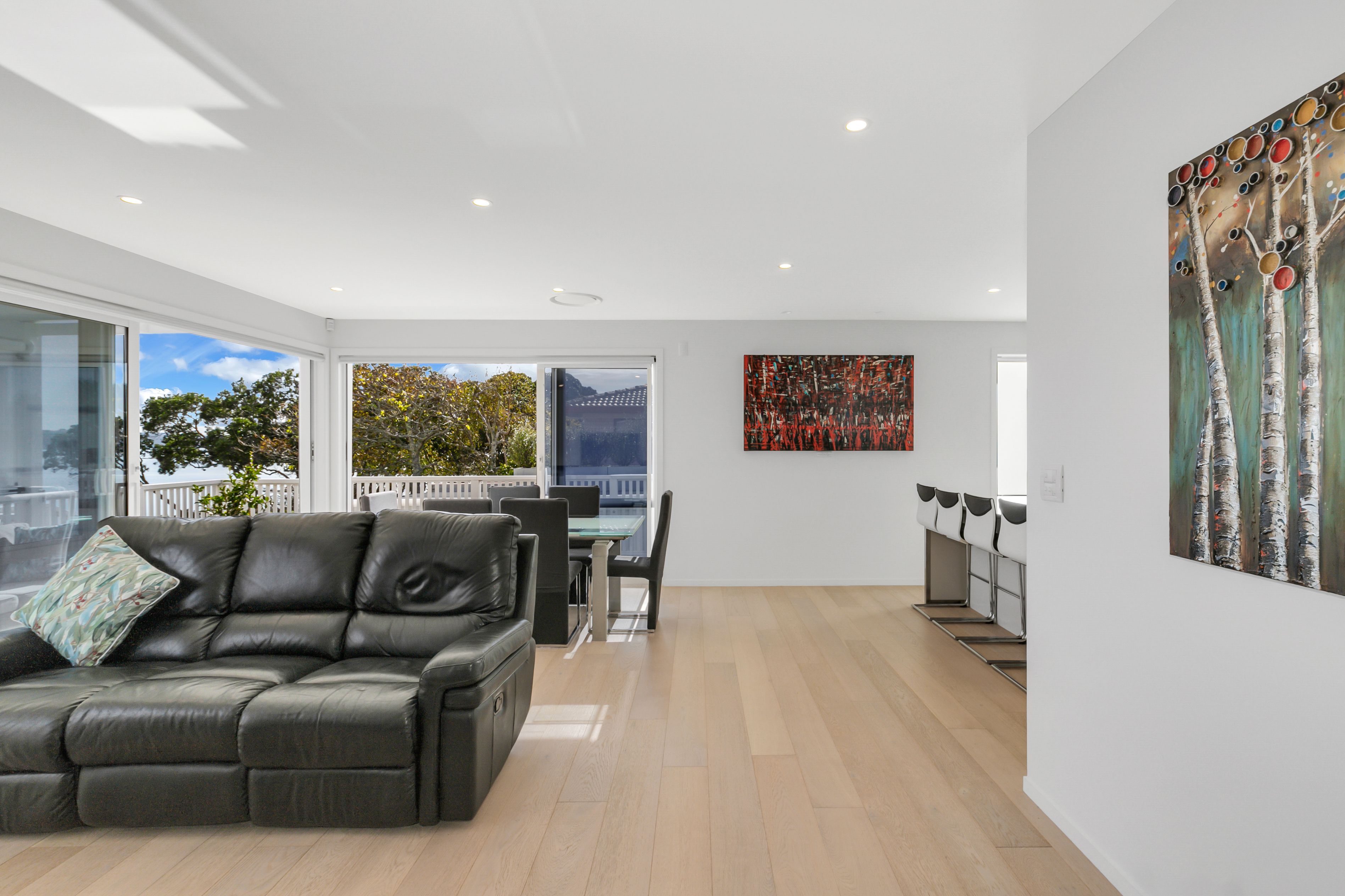 The large open plan living that faces north and has seamless flow to the deck with harbour views, all day sun offers a perfect spot to entertain or kick back and relax