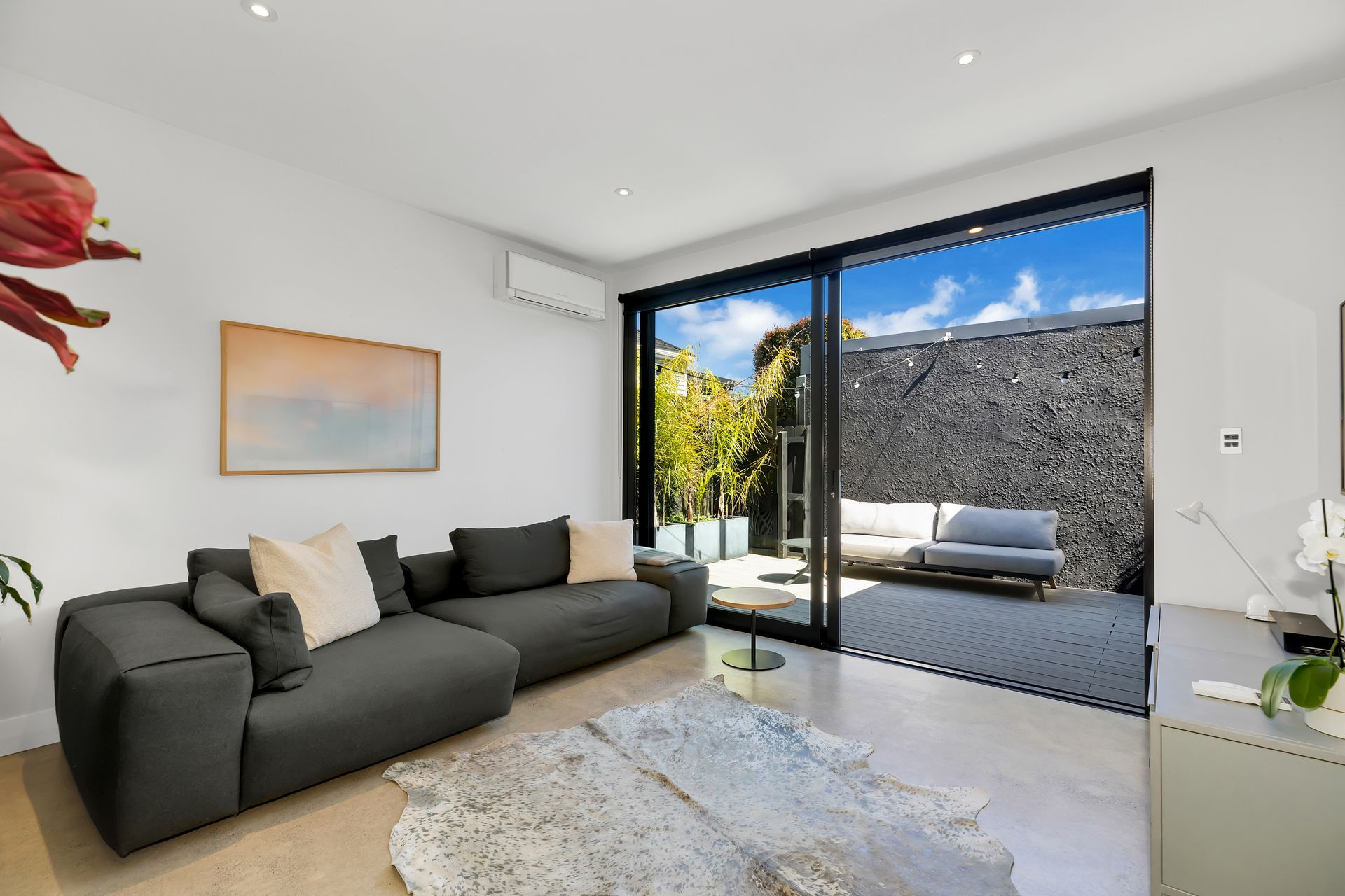 Doors open to the northeast-facing al fresco entertaining deck for secluded enjoyment with loved ones. Part of the fully fenced, ultra-private garden with mature green border and manicured lawn, imagine dining while the children and fur babies play, then in the evening taking it easy with a soak in the spa as you gaze at the stars.