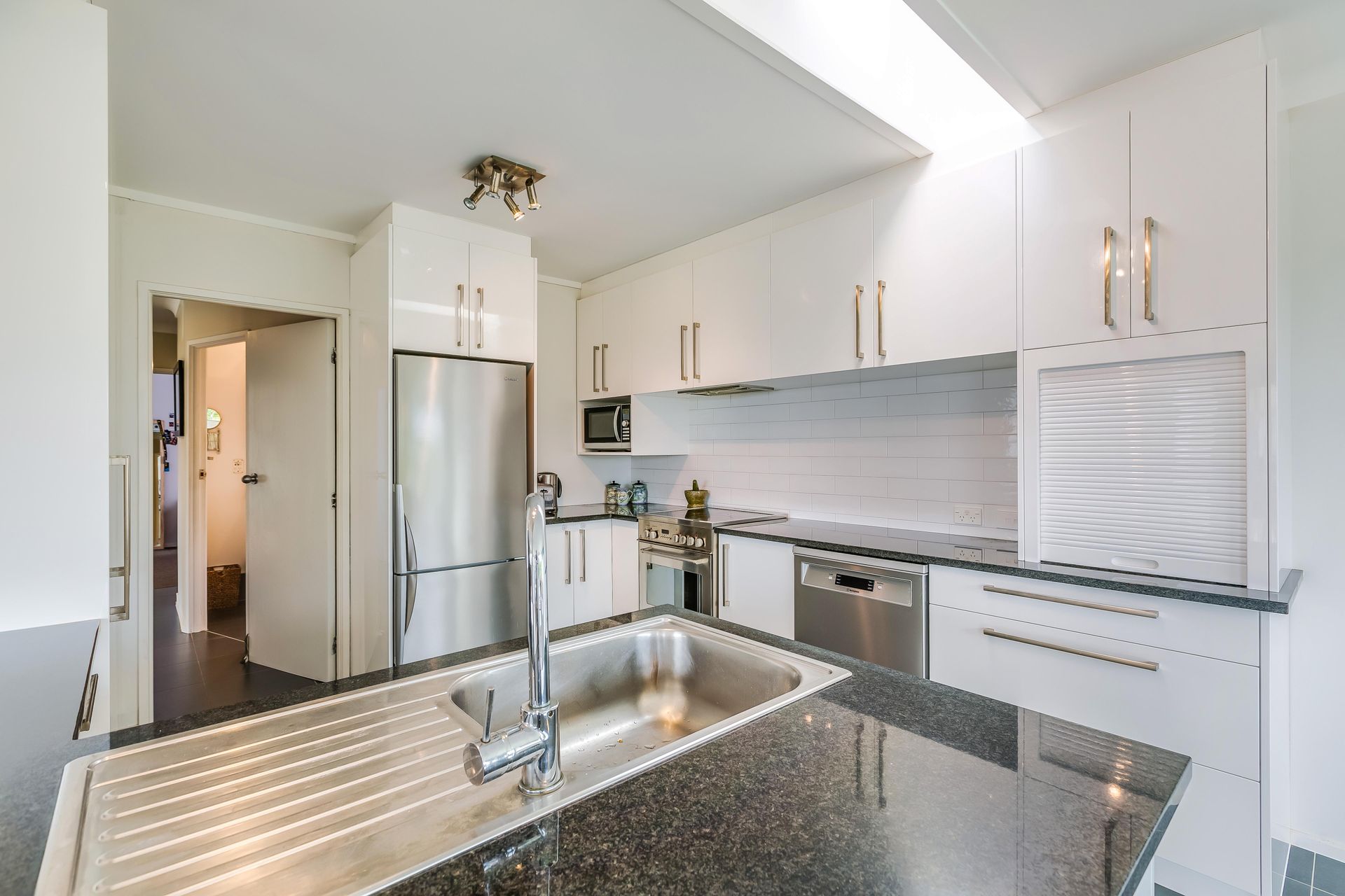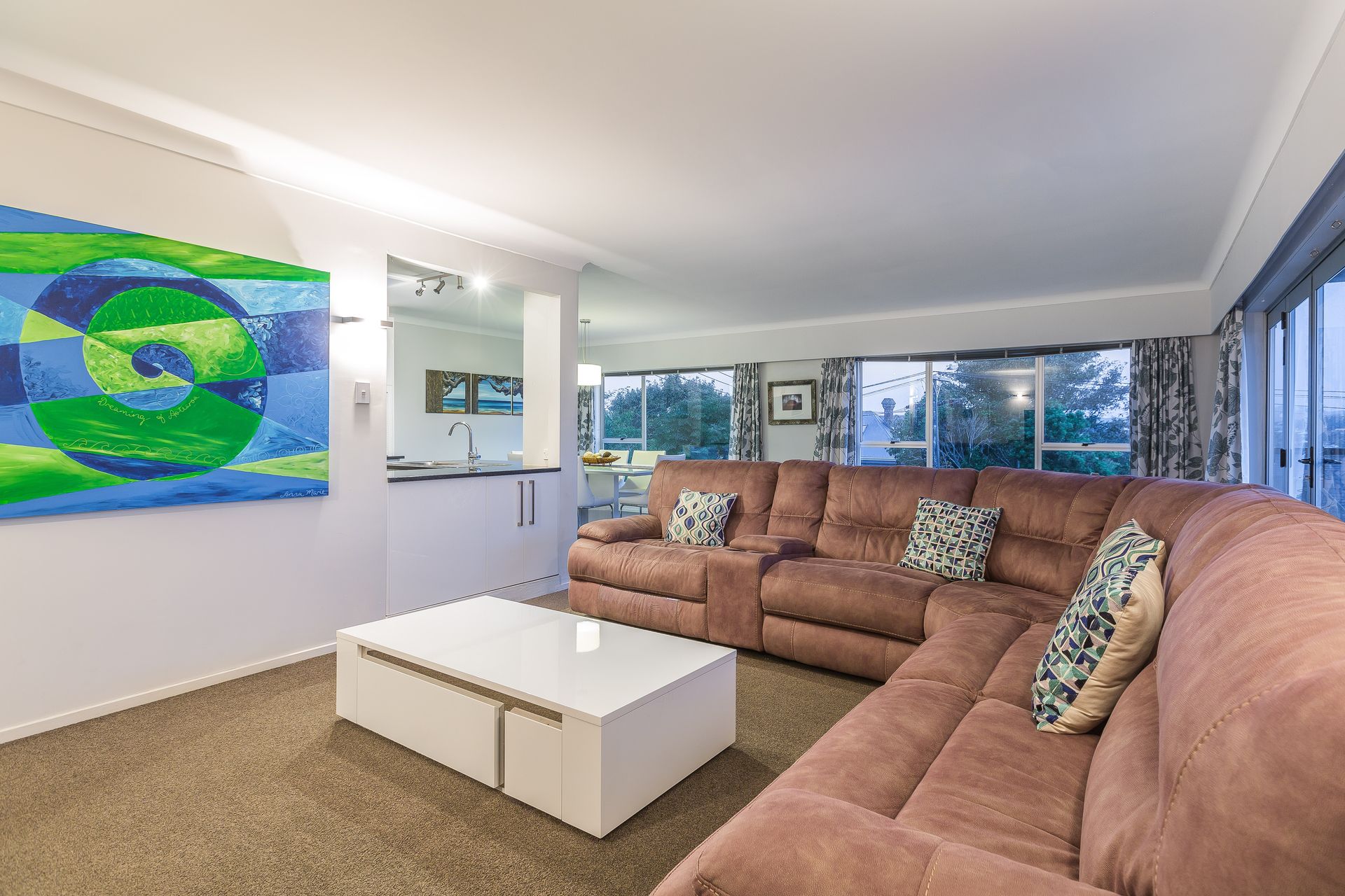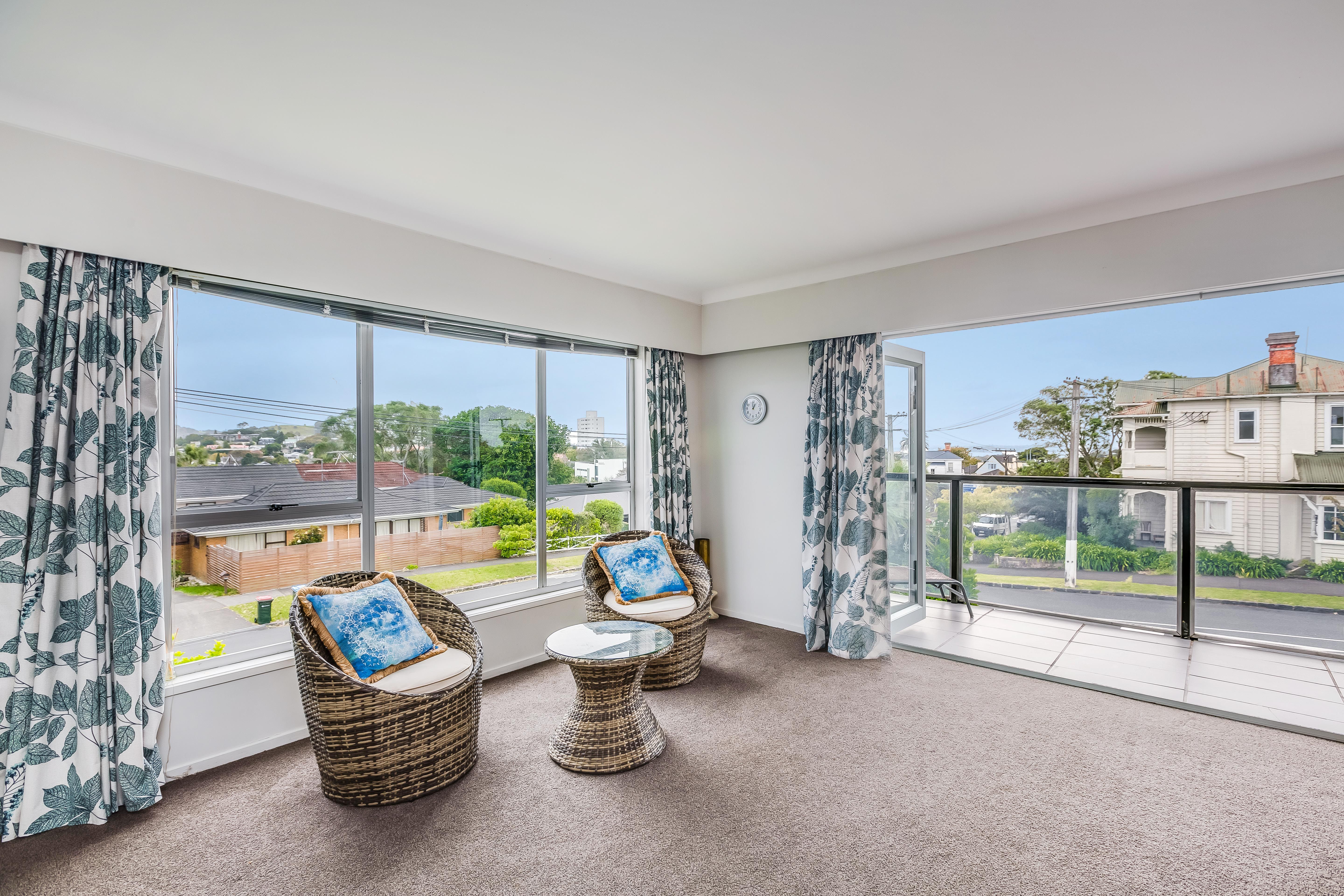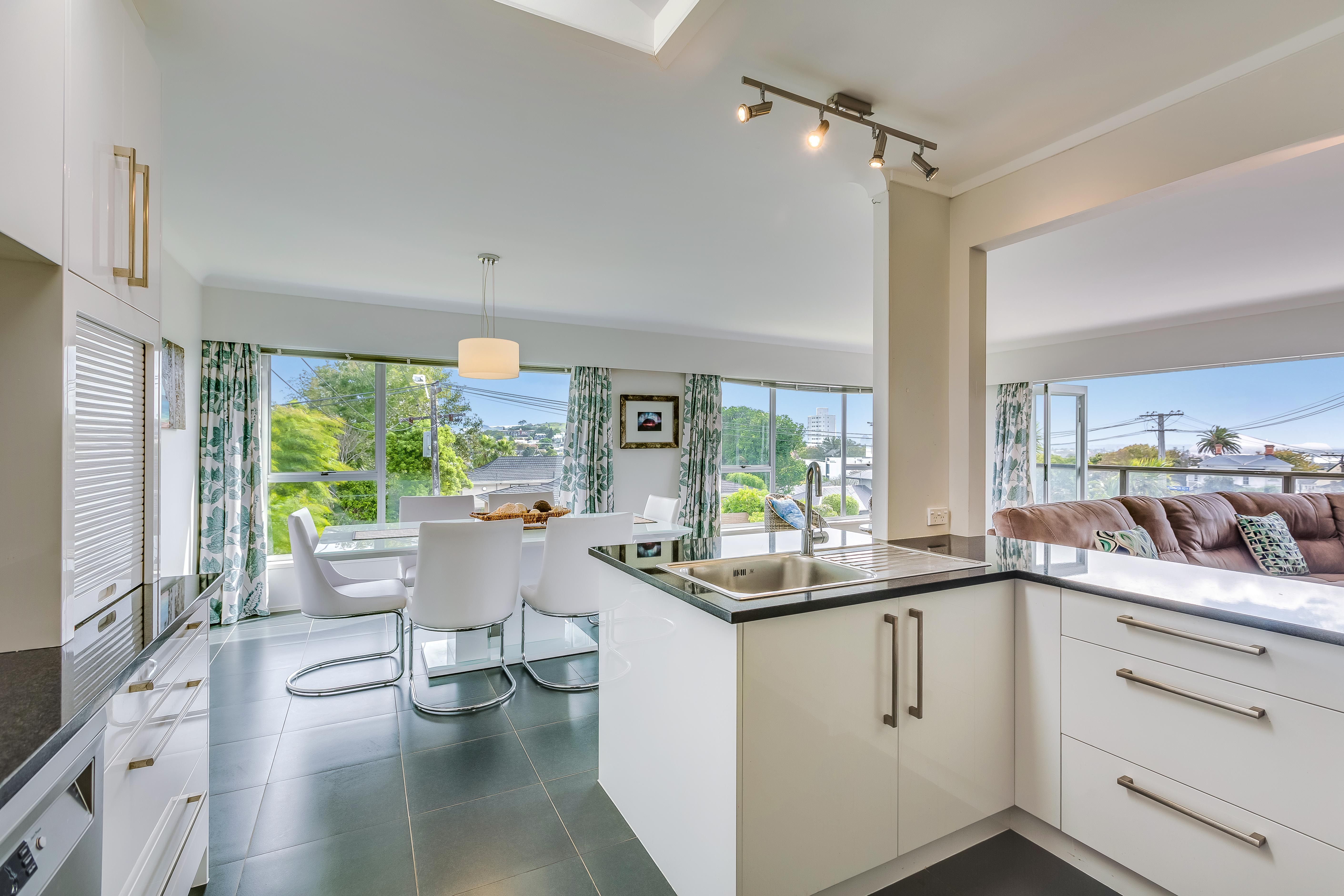 In the heart of this light filled open plan home is the modern kitchen, dining area and a large living space upstairs as well as a study nook. Sliding doors flow out onto a covered balcony area so that you can take advantage of the amazing views that sweep from One Tree Hill, all of the way to the CBD and out to a peep of the sea.