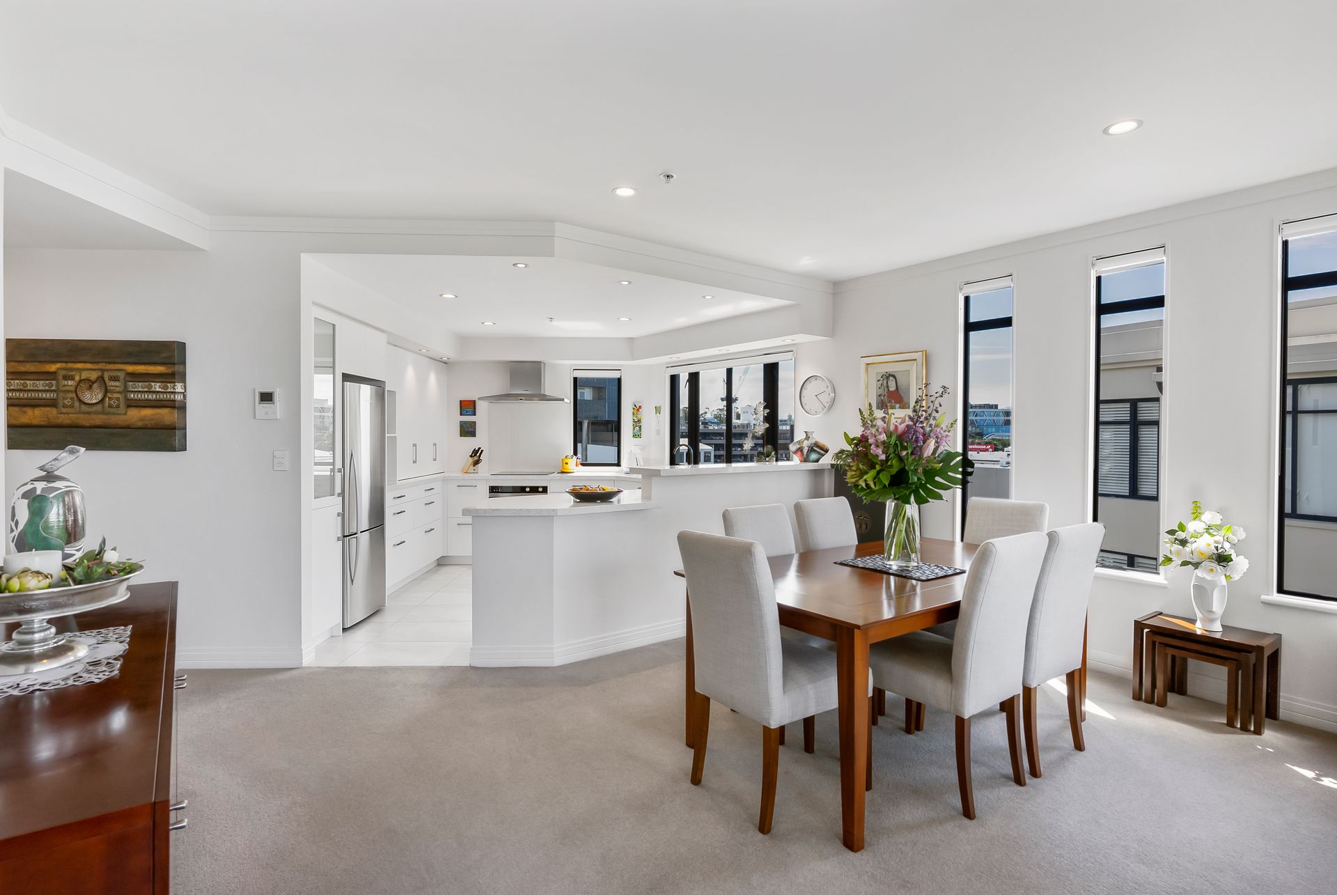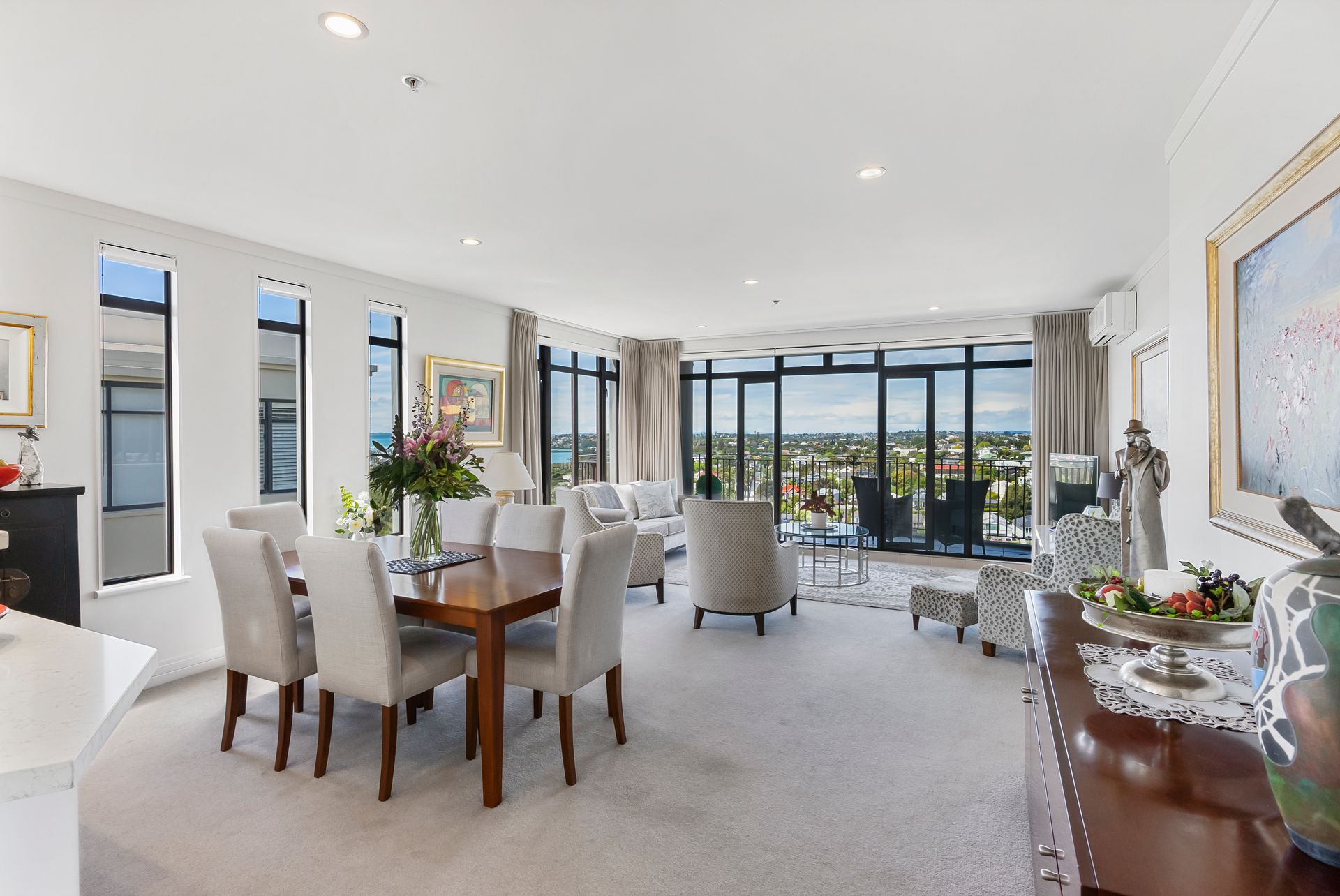 Basking in stunning views which extend to the Orakei Basin and Harbour, the ample floor-plan boasts supreme quality at every turn. The elegant open plan living space with balcony is a haven for entertaining, not least from the beautifully appointed and generous kitchen. Three bedrooms offer versatility - the luxurious master with ensuite and walk-in wardrobe, and the third makes the ideal home office or second living space should you need. Rounded off with two side-by-side carparks and storage, the residence holds all you could need.