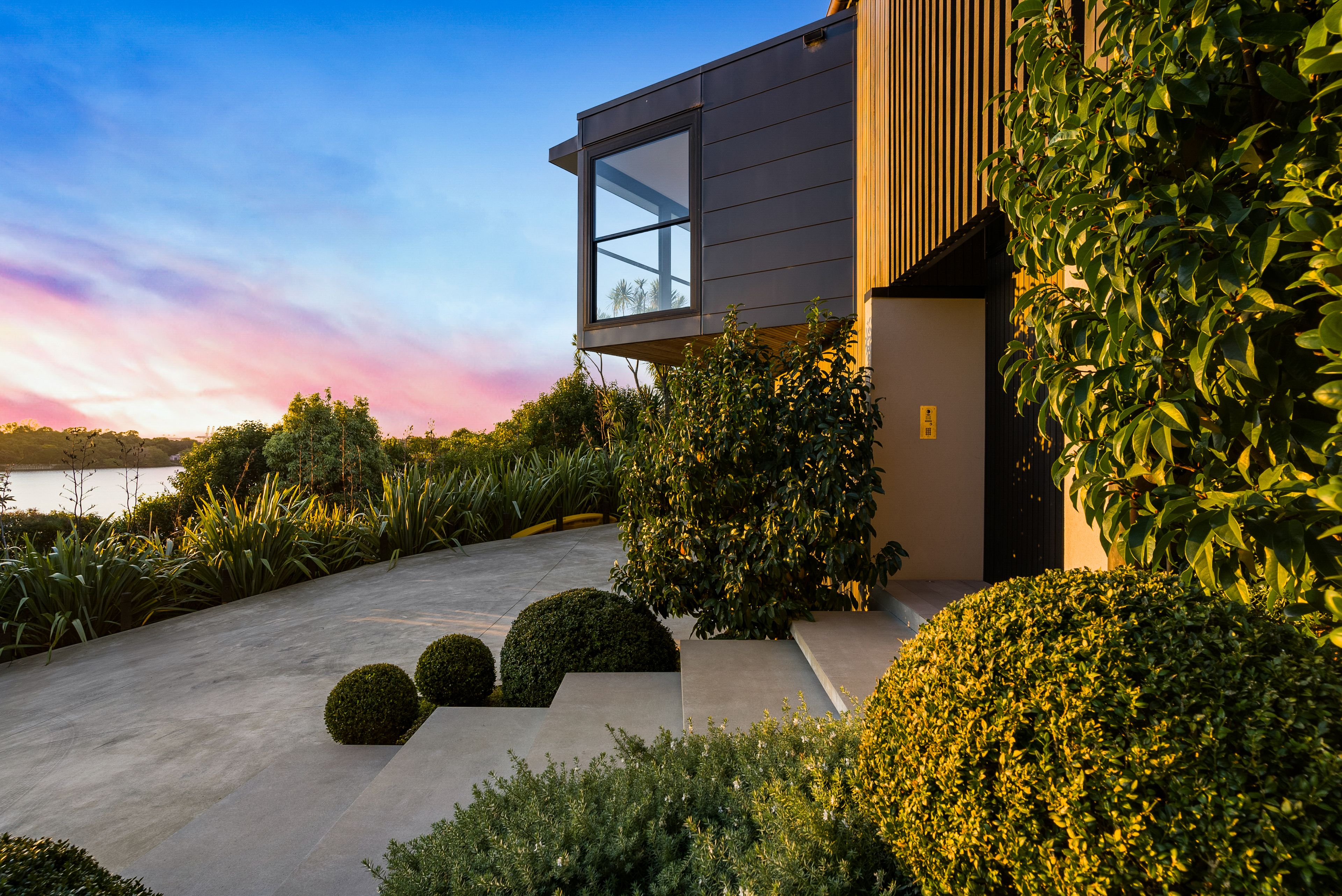 Wake to the view in the restful mezzanine-level master suite with ensuite and dual walk-in-wardrobes. This retreat enjoys pleasant separation from the main bedroom wing which contains two bedrooms opening outdoors, a third living room (with fourth bedroom potential) and a sophisticated bathroom, all anchored by the view. Beautiful landscaping includes a kitchen garden, or take a nearby path to walk or kayak the basin. Off-street parking bolsters the oversized internal-access double garage. There is much more to see here, from the office area, to the striking floating staircase but you really must visit to comprehend the uniqueness of this architecture & location.