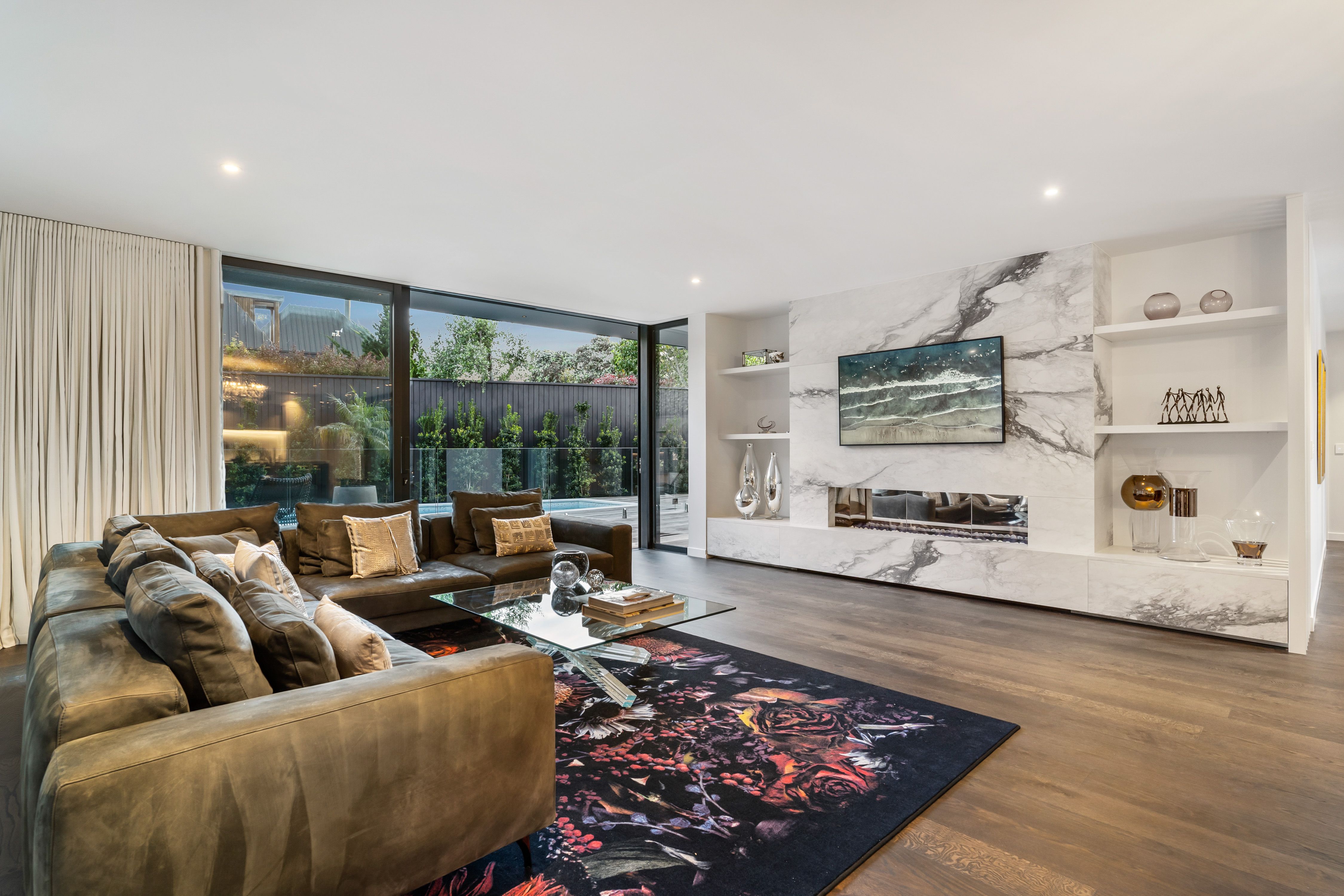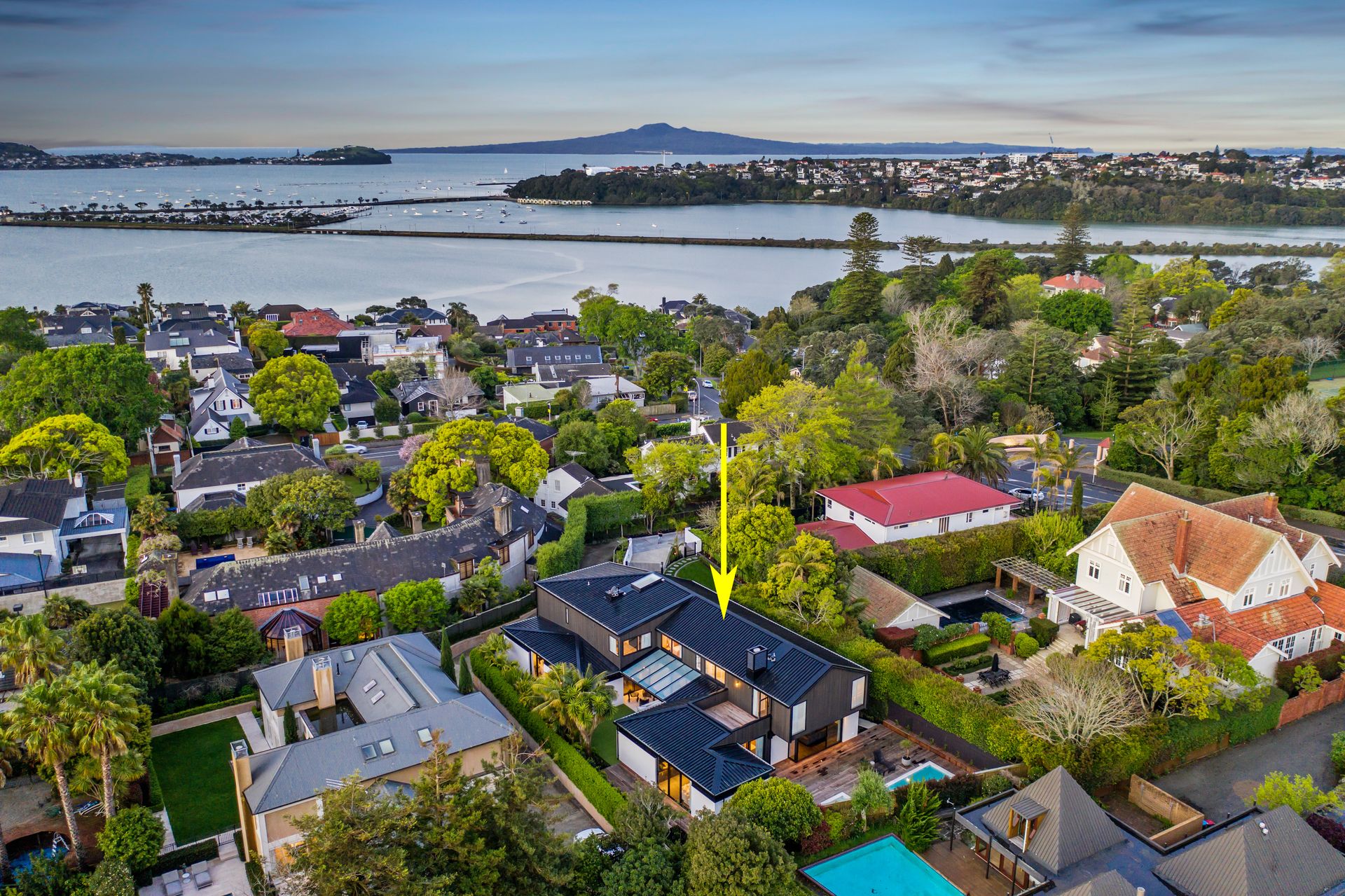 Located down a private gated driveway, this brand-new 602m2 approx. home has been beautifully designed and built with every attention to detail by its experienced Interior Designer and Builder Owners. Beautiful American Oak flooring throughout the living level gives a seamless feel to the outdoors of this stunning home. The kitchen family room flows to the concrete swimming pool and to the North West for that all-important afternoon sun. An LED-lit marble outdoor gas fireplace adds to the gorgeous ambiance of this exemplary home. With high-end appliances throughout the home including Miele and Liebherr its immediately apparent that no expense has been spared here with your comfort in mind. Fully equipped with multiple fridges, a washer-dryer, smart TVs and air-conditioning, you can simply move in and start enjoying life at this superb address. A bedroom and bathroom on the ground floor plus 4 bedrooms and 4 ensuites upstairs provides separation and convenience for the entire family and guests. A large second living space with a fully equipped bar is a great place for entertaining and the adjoining room can be a flexible media room, gym or perhaps a 6th bedroom if required. Homes of this quality and calibre are rarely offered brand new to a lucky new owner. In zone for Victoria Avenue Primary, Epsom Girls and Auckland Boys, walking distance to St Kentigern, Baradene and handy to multiple other excellent private schools.