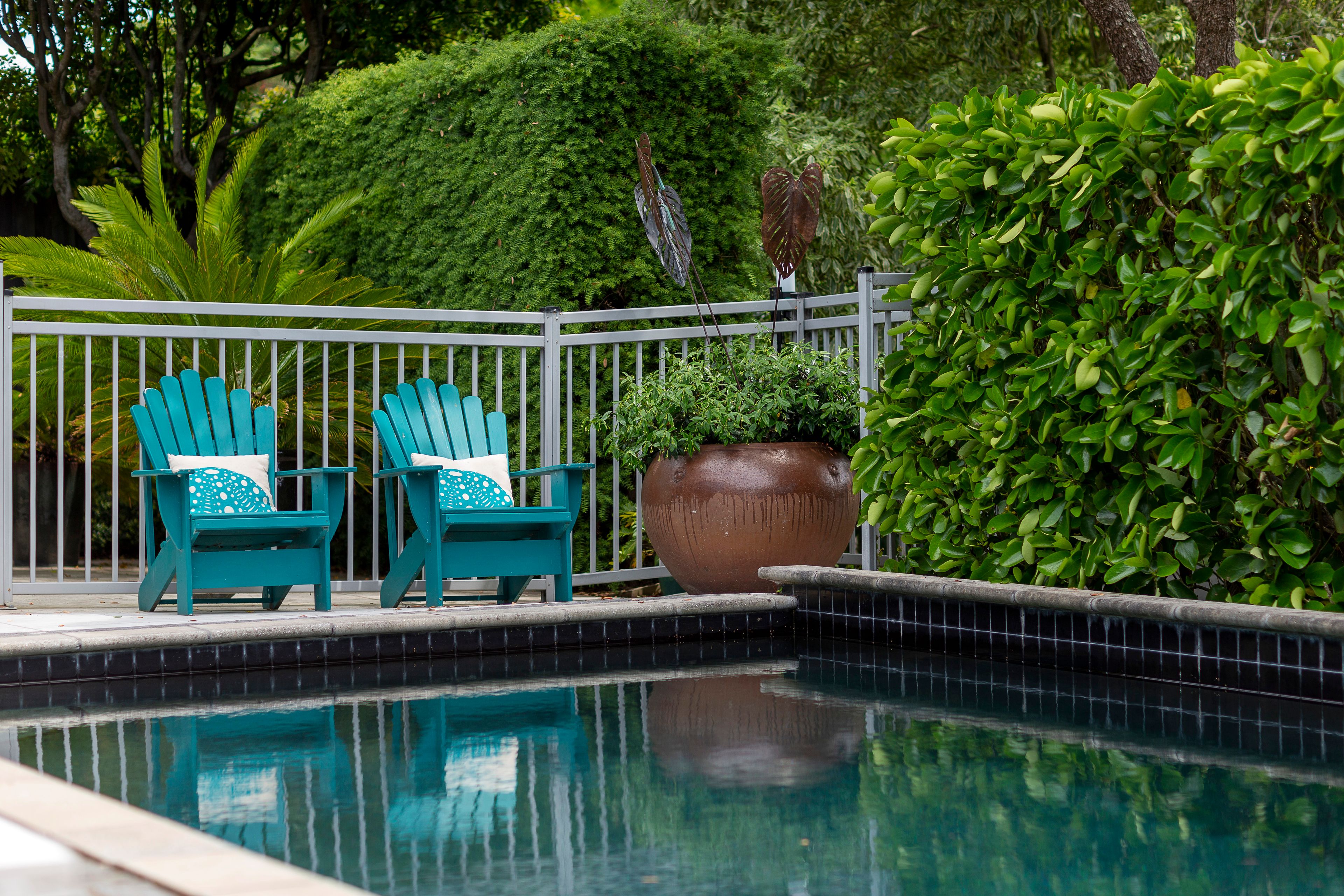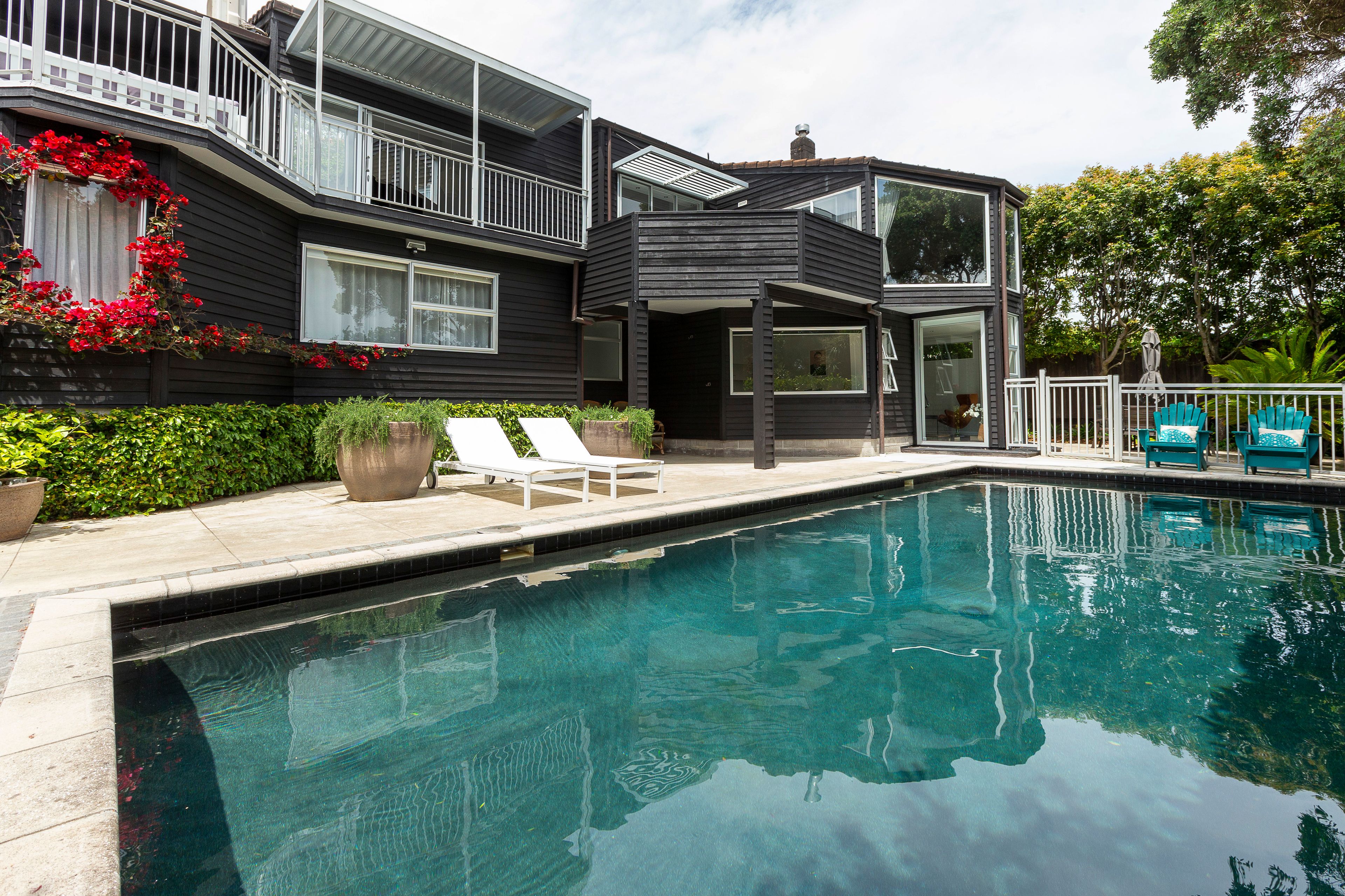 The home sits amidst landscaped gardens, complete with a North-facing pool that is sure to return dividends in the hours spent together enjoying the cool waters during the warmer months.