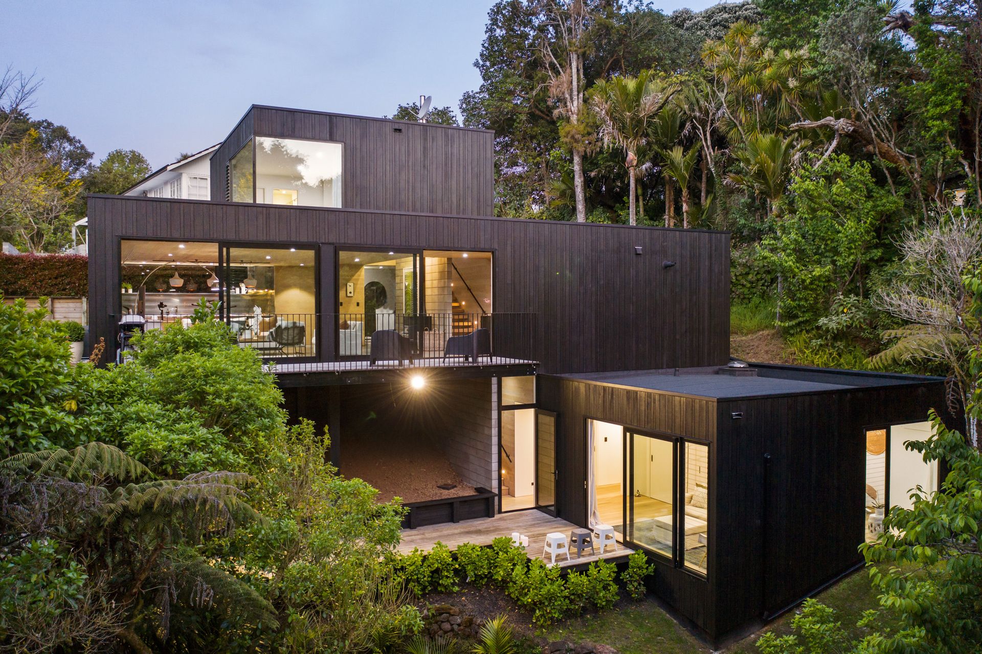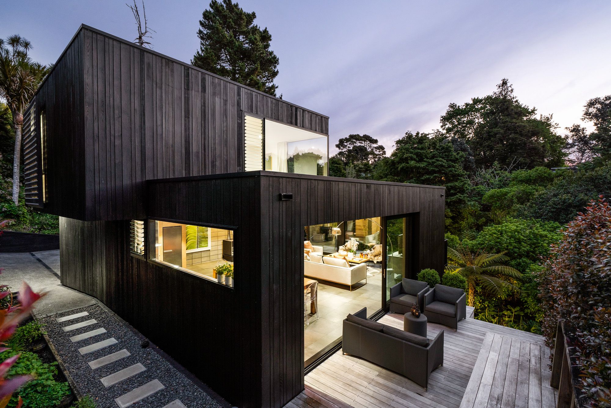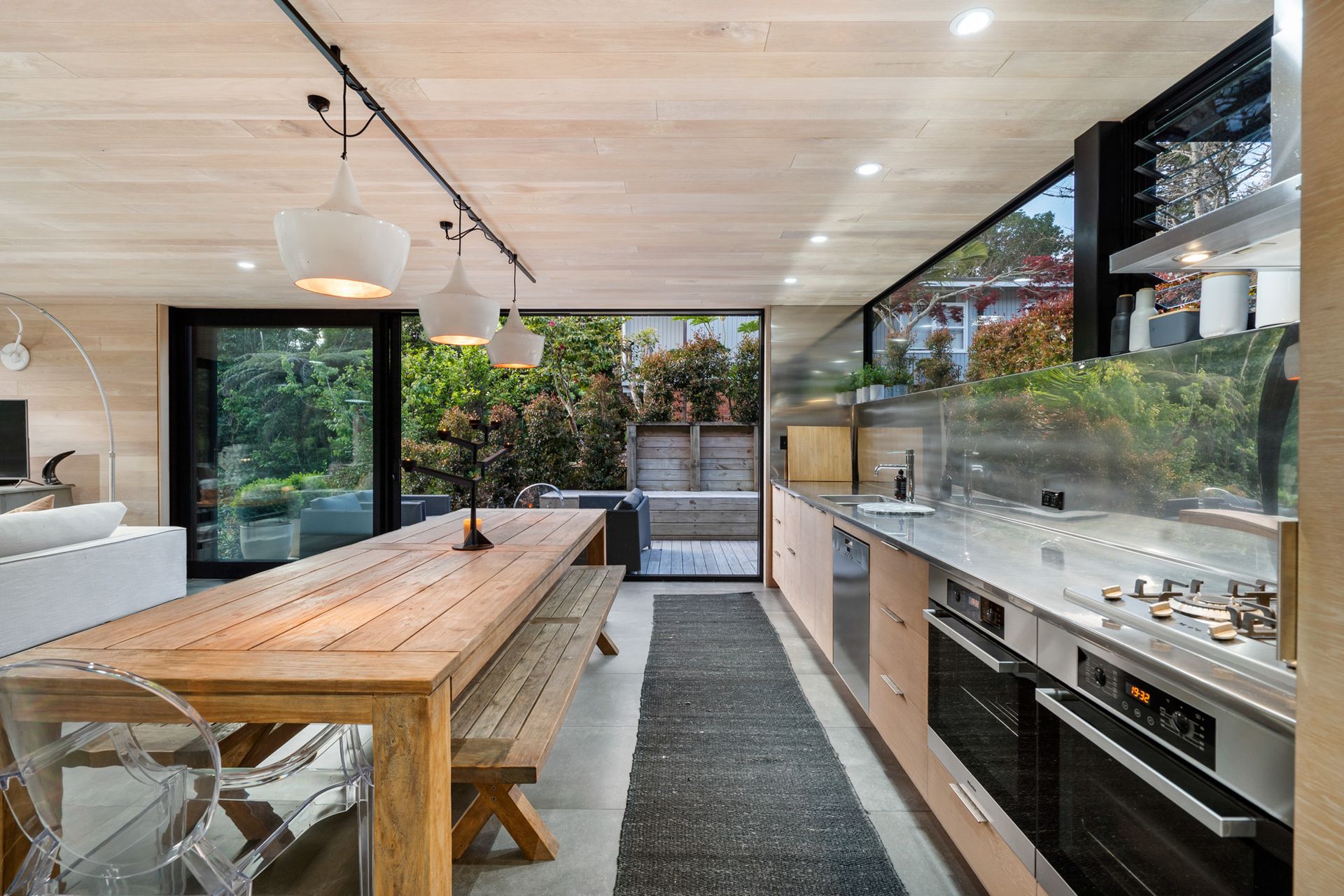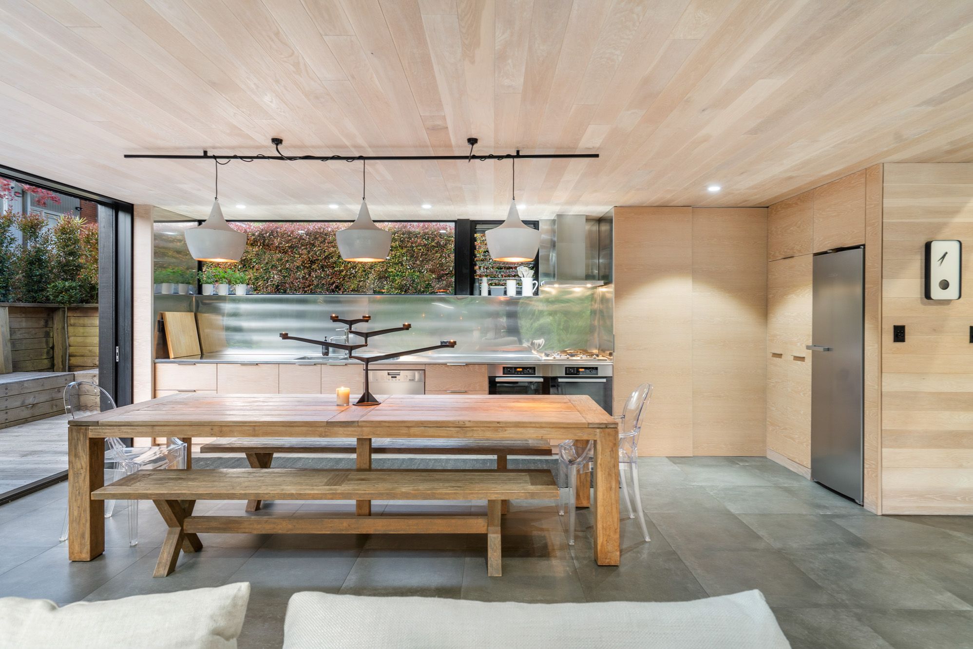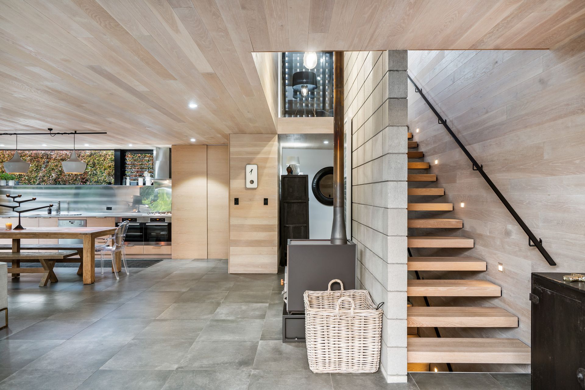 Sculpturally composed spaces with details at every turn are unified by harmonising authentic modern and organic elements with polished concrete floor, American oak influence, and floor to ceiling picturesque windows and doors.