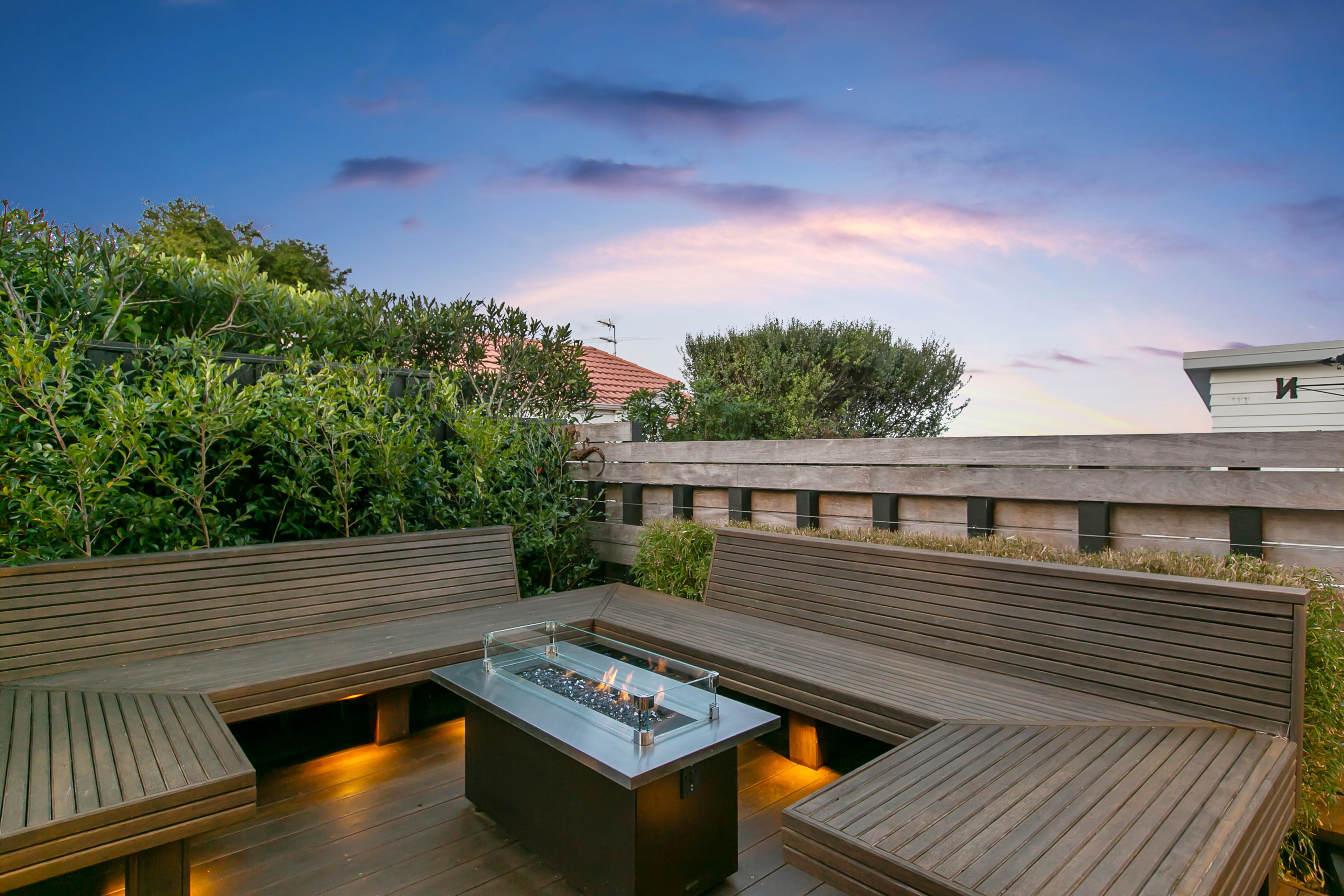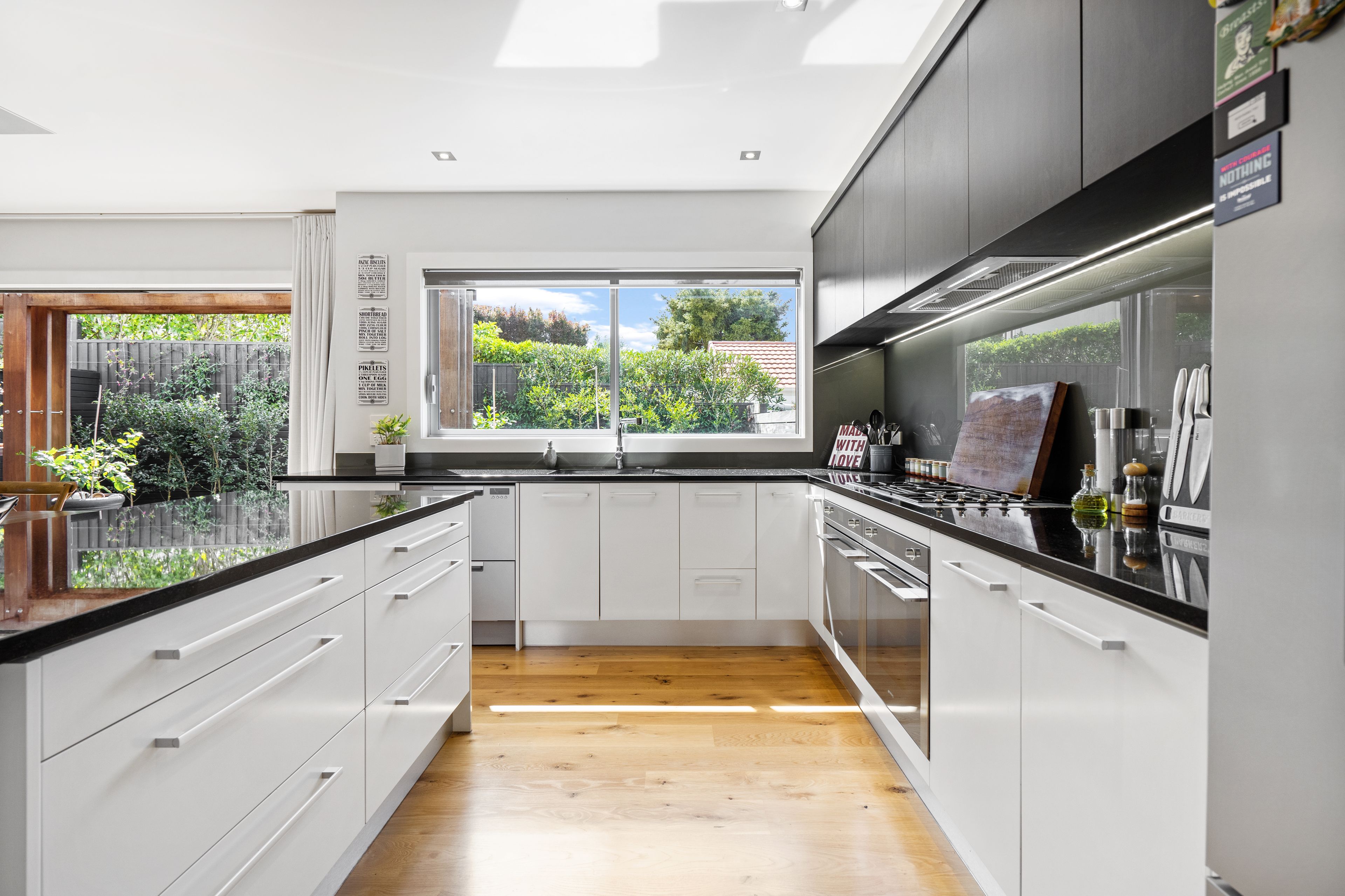 The practical layout includes a bedroom and bathroom downstairs - and another three bedrooms with two bathrooms upstairs. Elevated, private and facing north to the sun - the presentation and quality of this home is simply outstanding. You'll love the oak floors, scullery, separate lounge, superb open plan kitchen/dining/family area with indoor/outdoor flow to an outdoor fire surrounded by built-in seating, panoramic views and the double garage. There's even a small lawn for your pets.