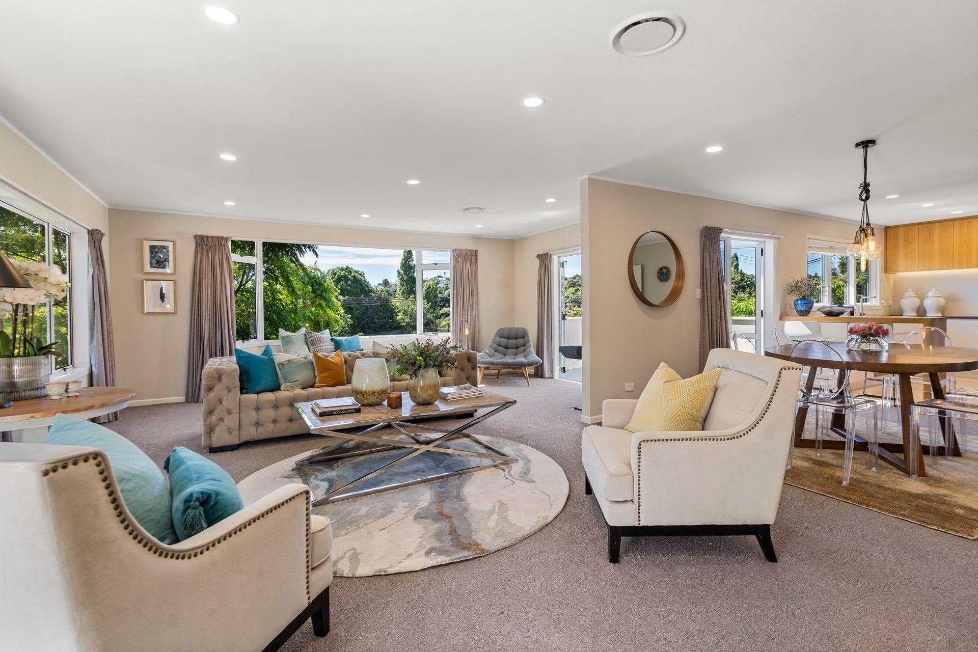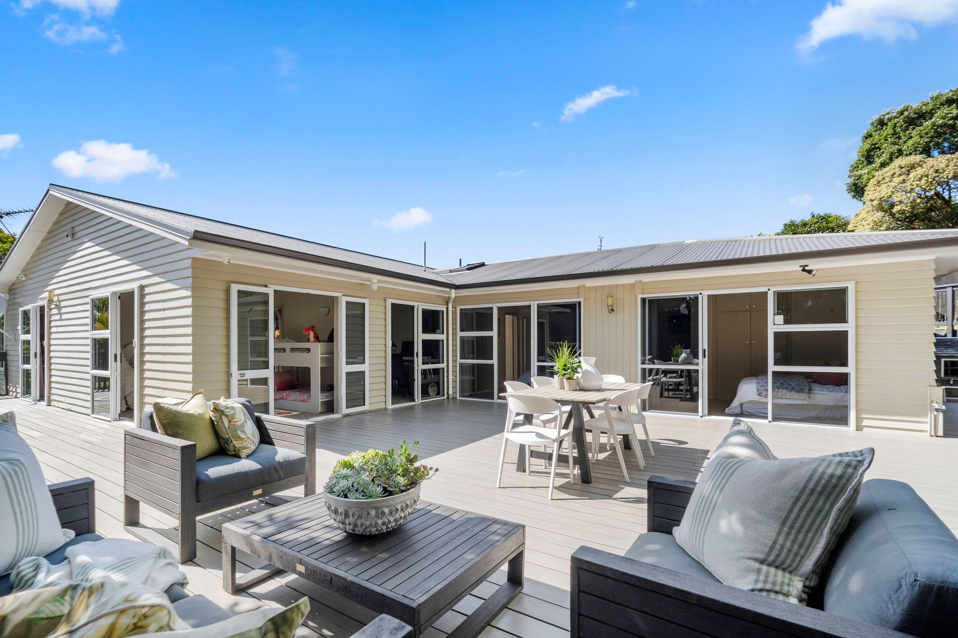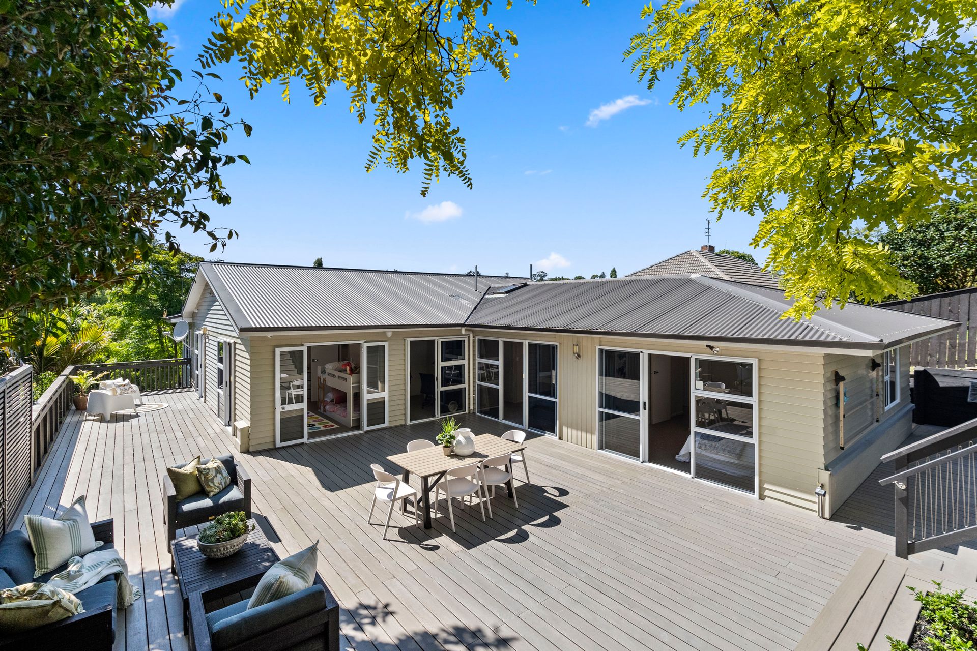 Offering everything a family, or extended family, could want with a hugely appealing layout, predominantly over one level, with sensational outdoor living on NW facing decks and lawn, elevated for the sun and a relaxing green outlook, the home also enjoys a great sense of privacy.