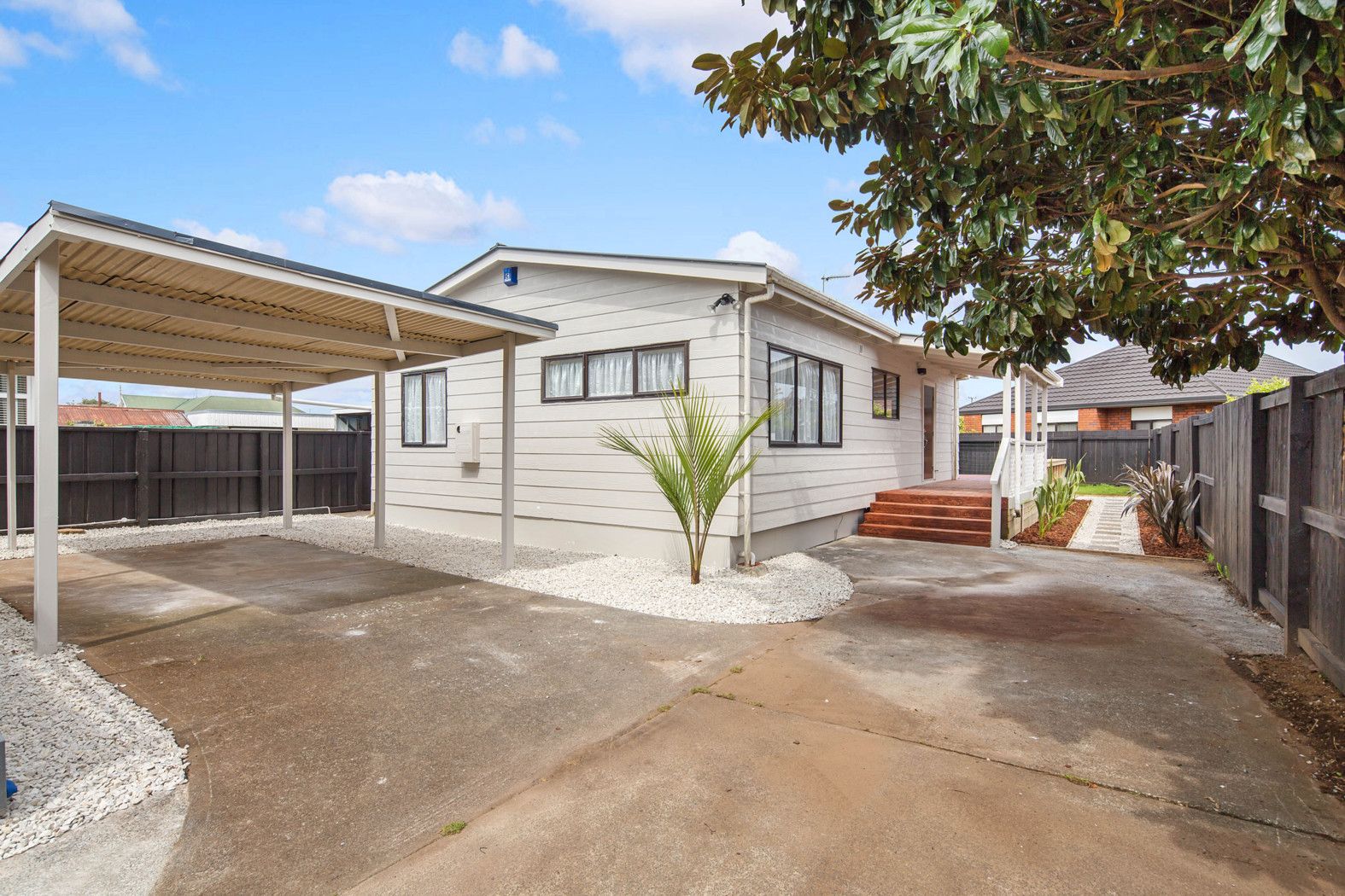 Rear property safely tucked behind electric security gates on a level half share of 733sqm