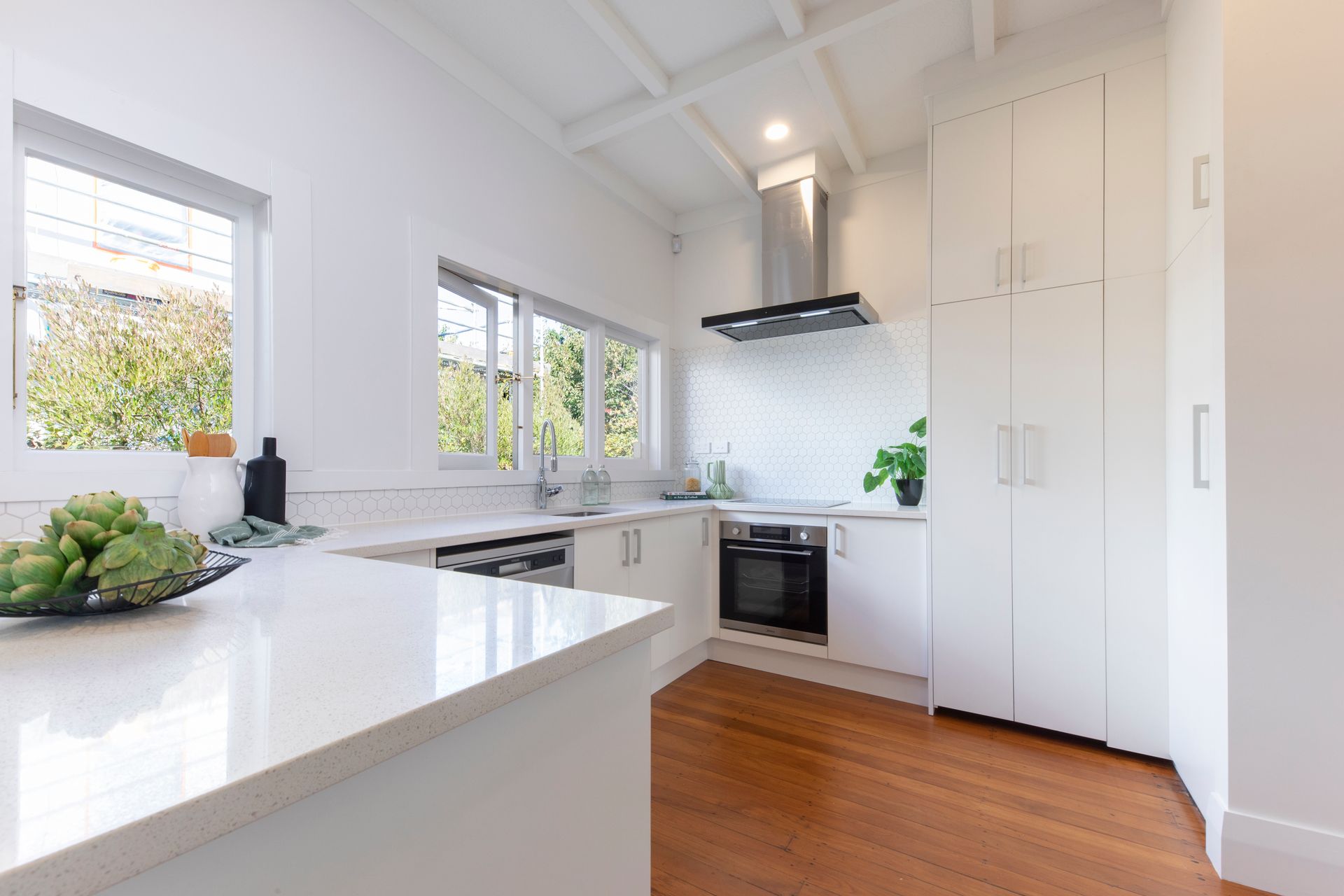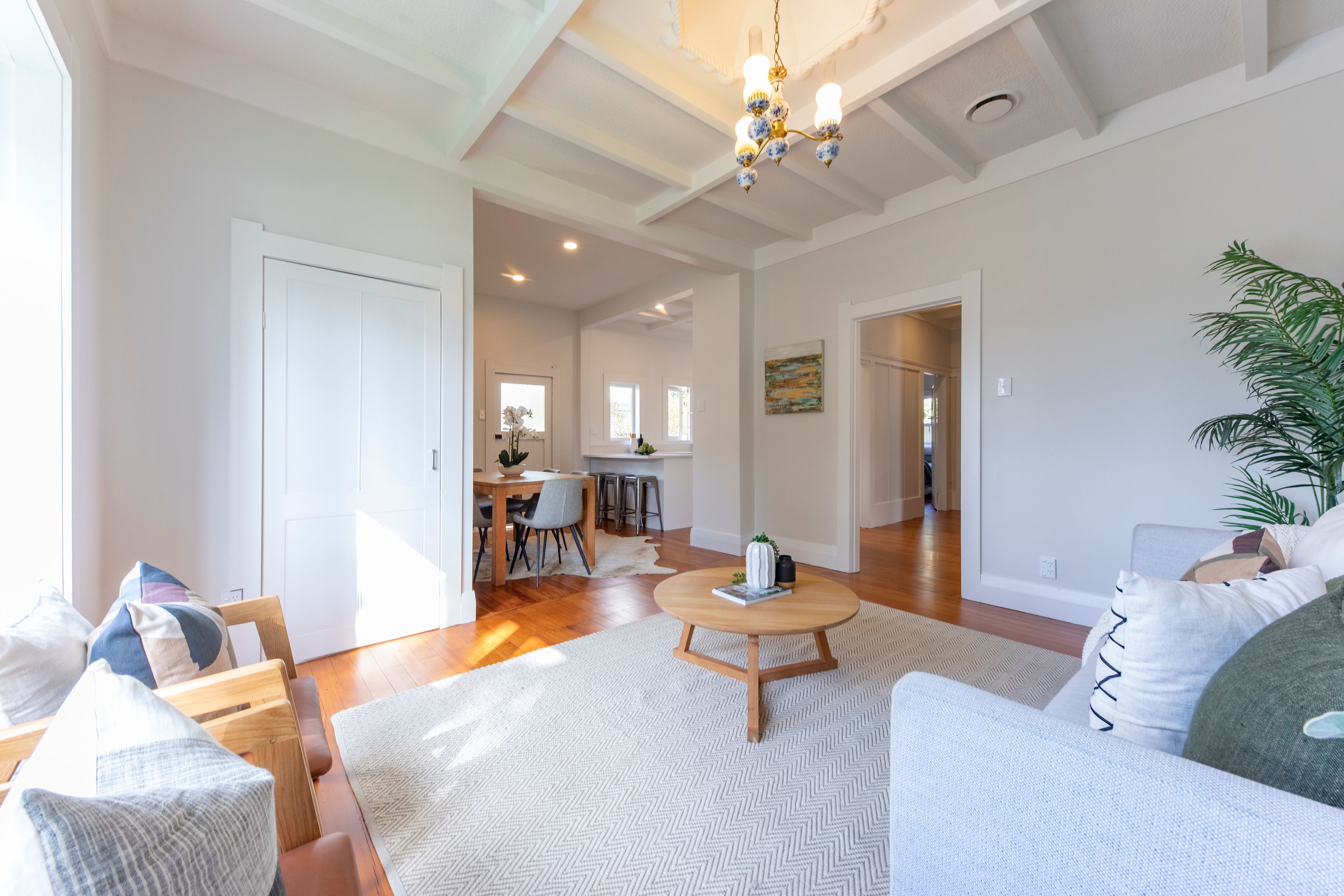 • Refreshed and modernised throughout, the super light, bright, and fresh space has been crafted to retain the beautiful character features which are celebrated in this traditional bungalow. You will find satin finished native timber flooring, original light fittings with ceiling rose, exposed beams, high-stud ceilings, bay windows, a wide entrance porch, and white picket fence