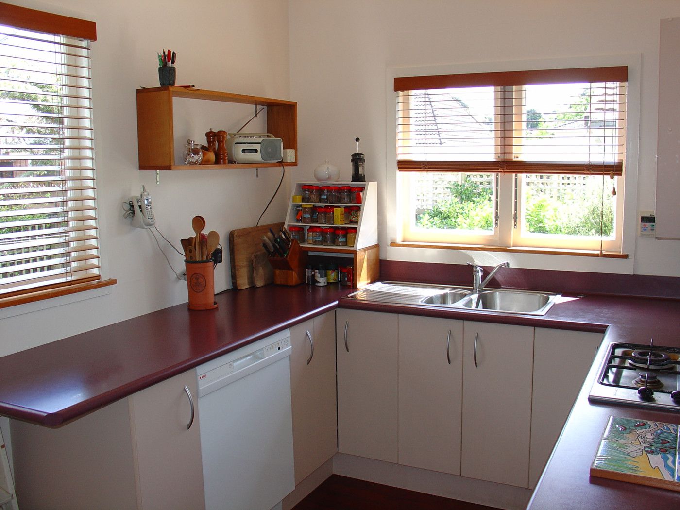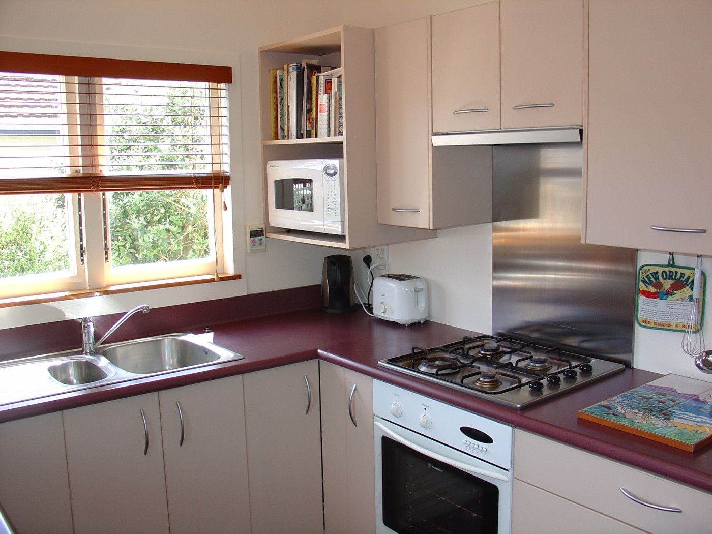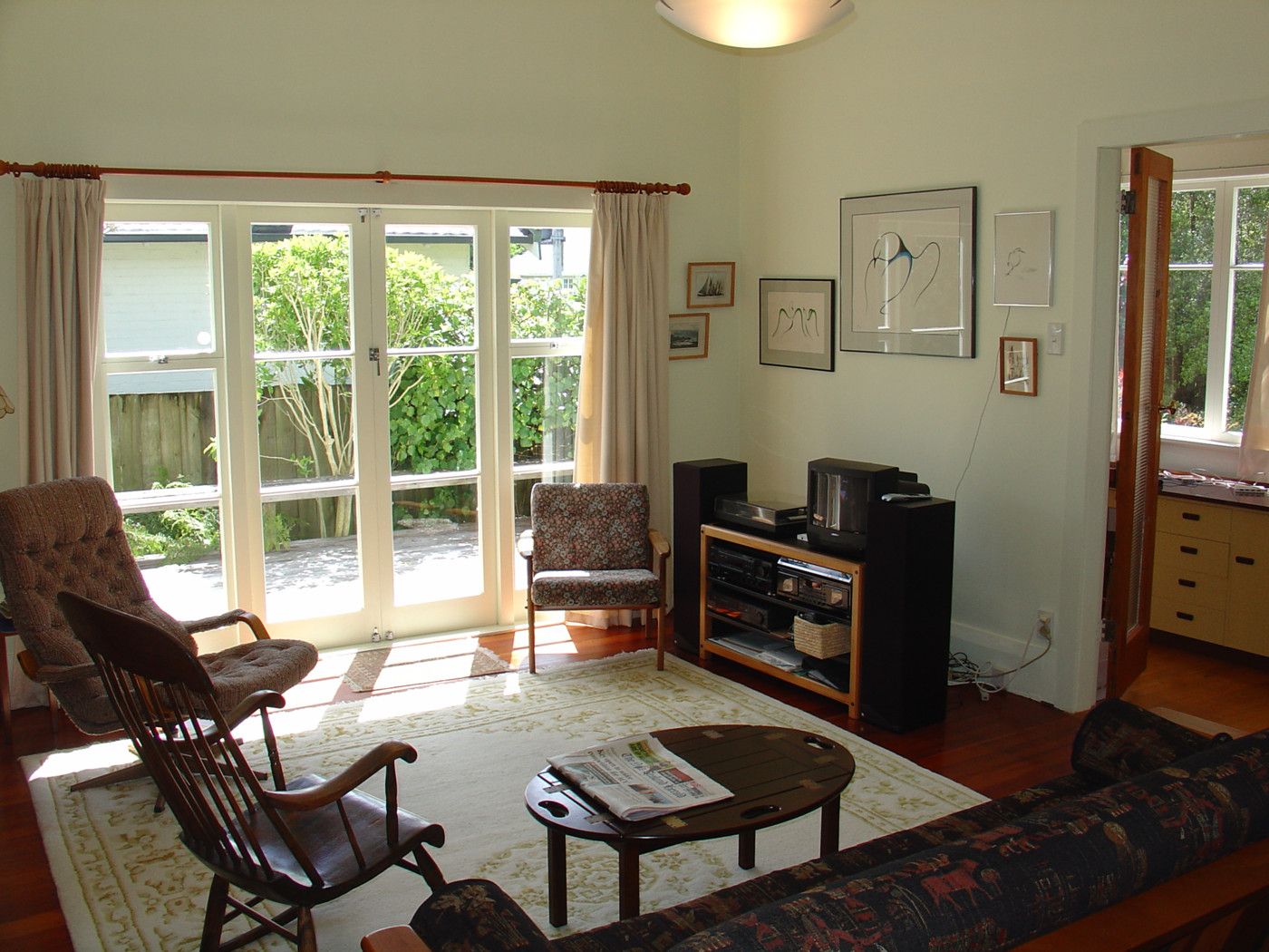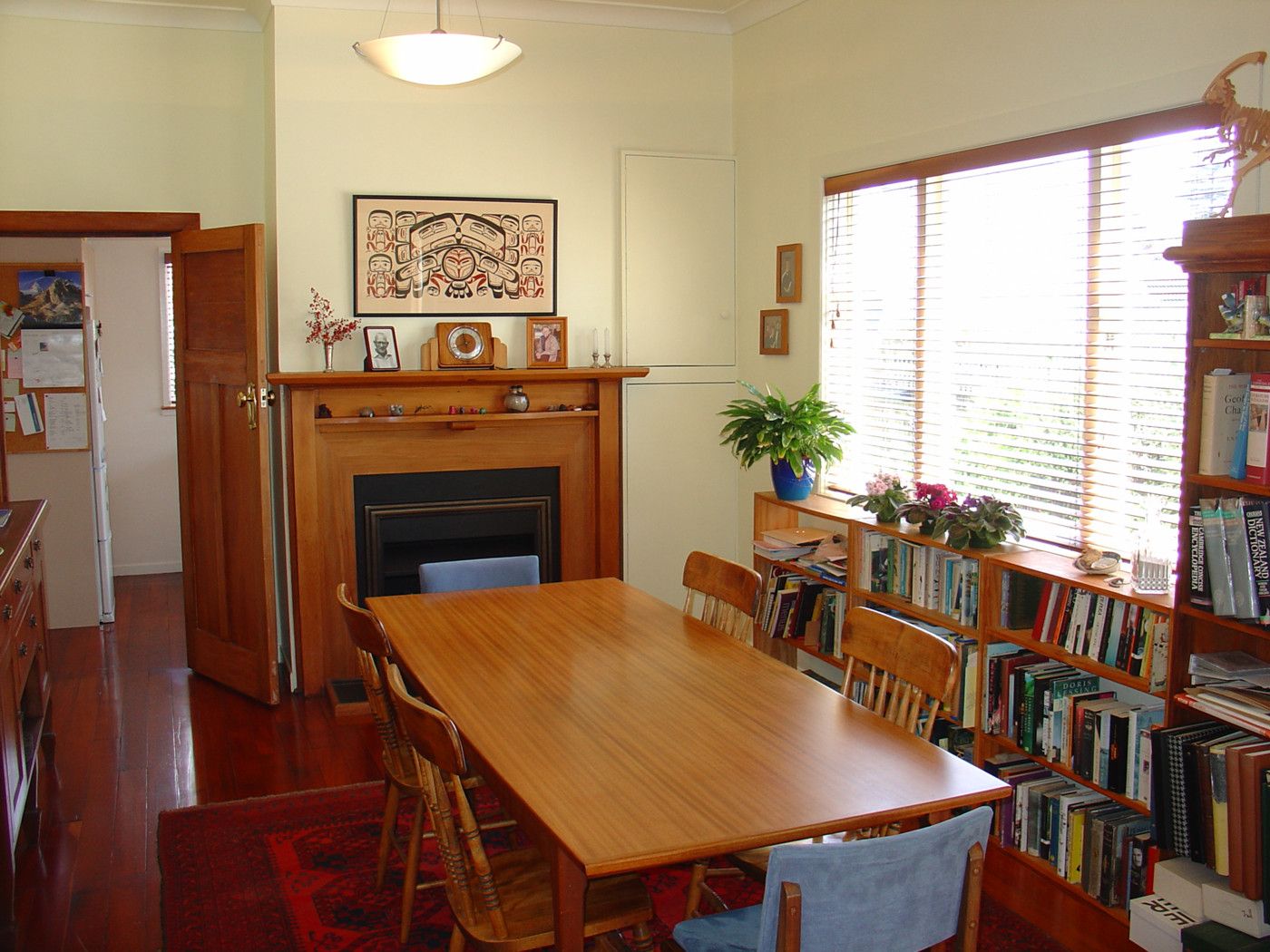 There is a separate dining room with a cosy gas fireplace and rich polished floors. A modern kitchen with gas cooking and gas hot water.