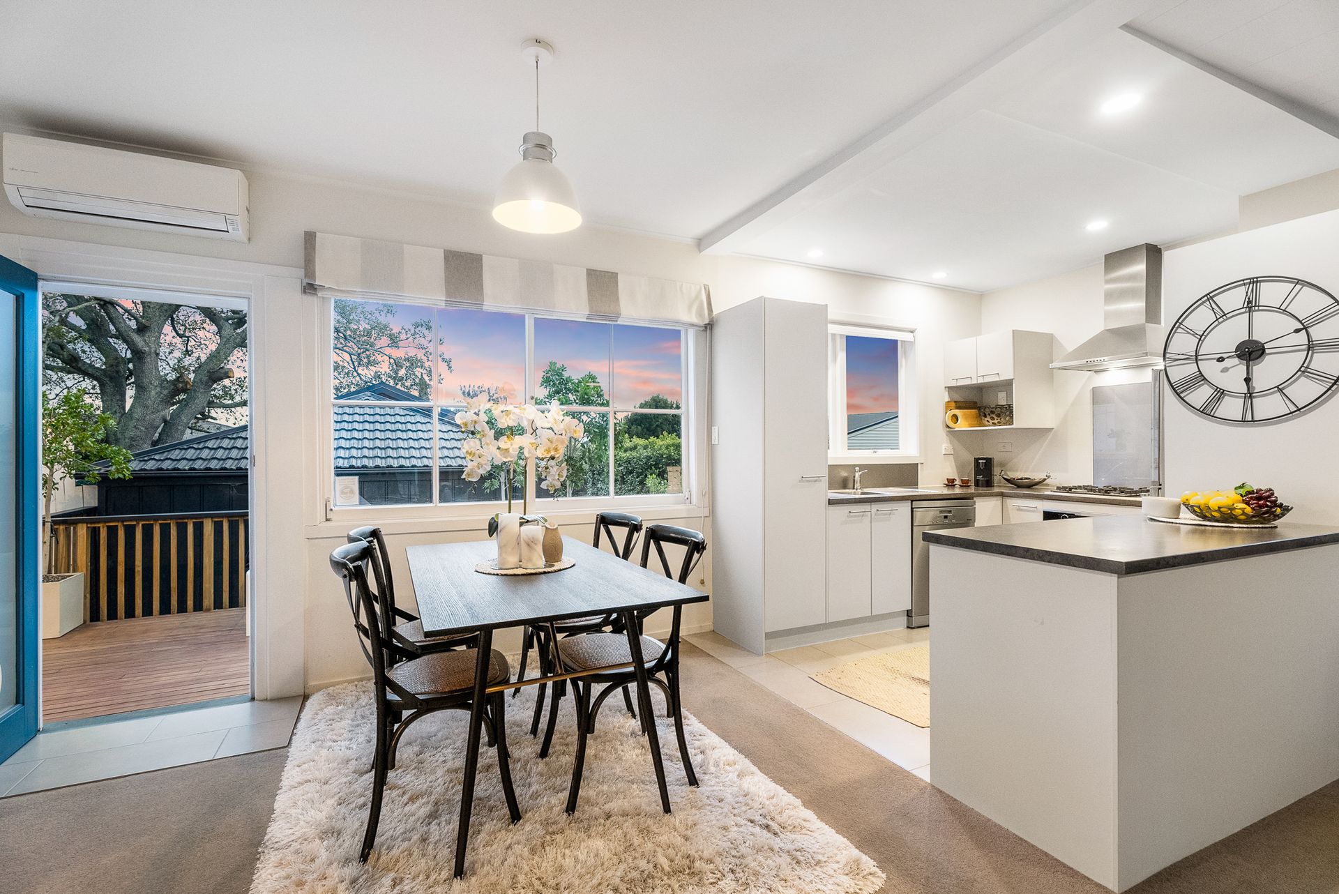 Attracted by her architecture, buyers will be equally enchanted by the exceptional outdoor living spaces, with a fenced lawn and sweeping wraparound decking, complete with a spa, setting the stage for entertainment and alfresco gatherings.