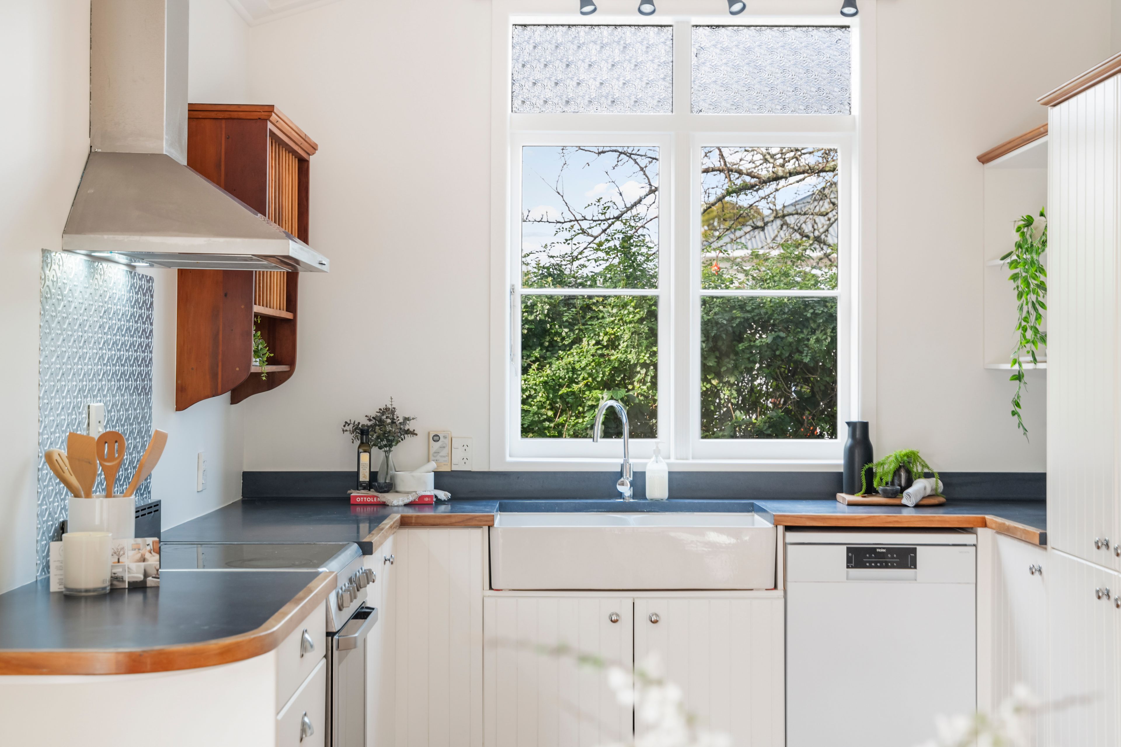 Enjoying a beautifully open living area, with fabulous connection to separate farmhouse style kitchen, complete with a gorgeous butlers sink, this home is a real charmer. Add in soaring board and batten ceilings, polished floors and gorgeous fireplaces and you have all the character you have craved in your next home. Fabulous indoor-outdoor flow to a north facing deck makes entertaining a breeze under the pergola, while a sizeable yet easy care section teems with established roses and buxus hedging. It is super dreamy!