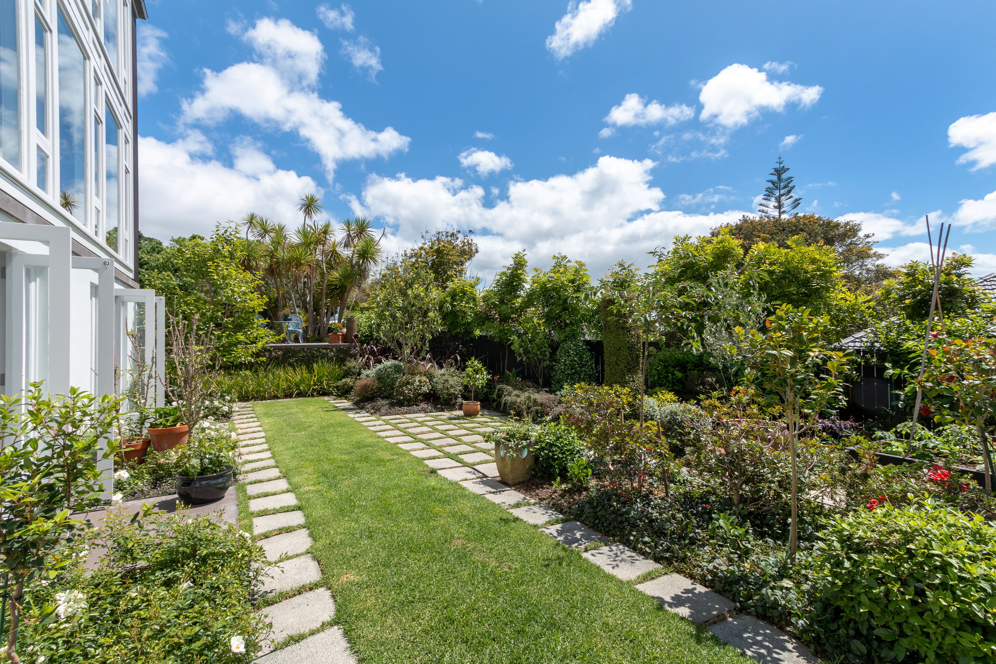 Mature structured landscaping ensures privacy yet a sense of space, with complementary zones each with a different use and feel.