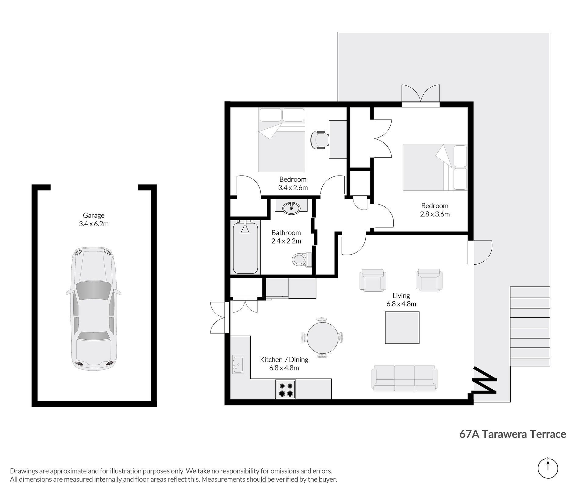 - Extra long garage providing off-street parking for 2 vehicles