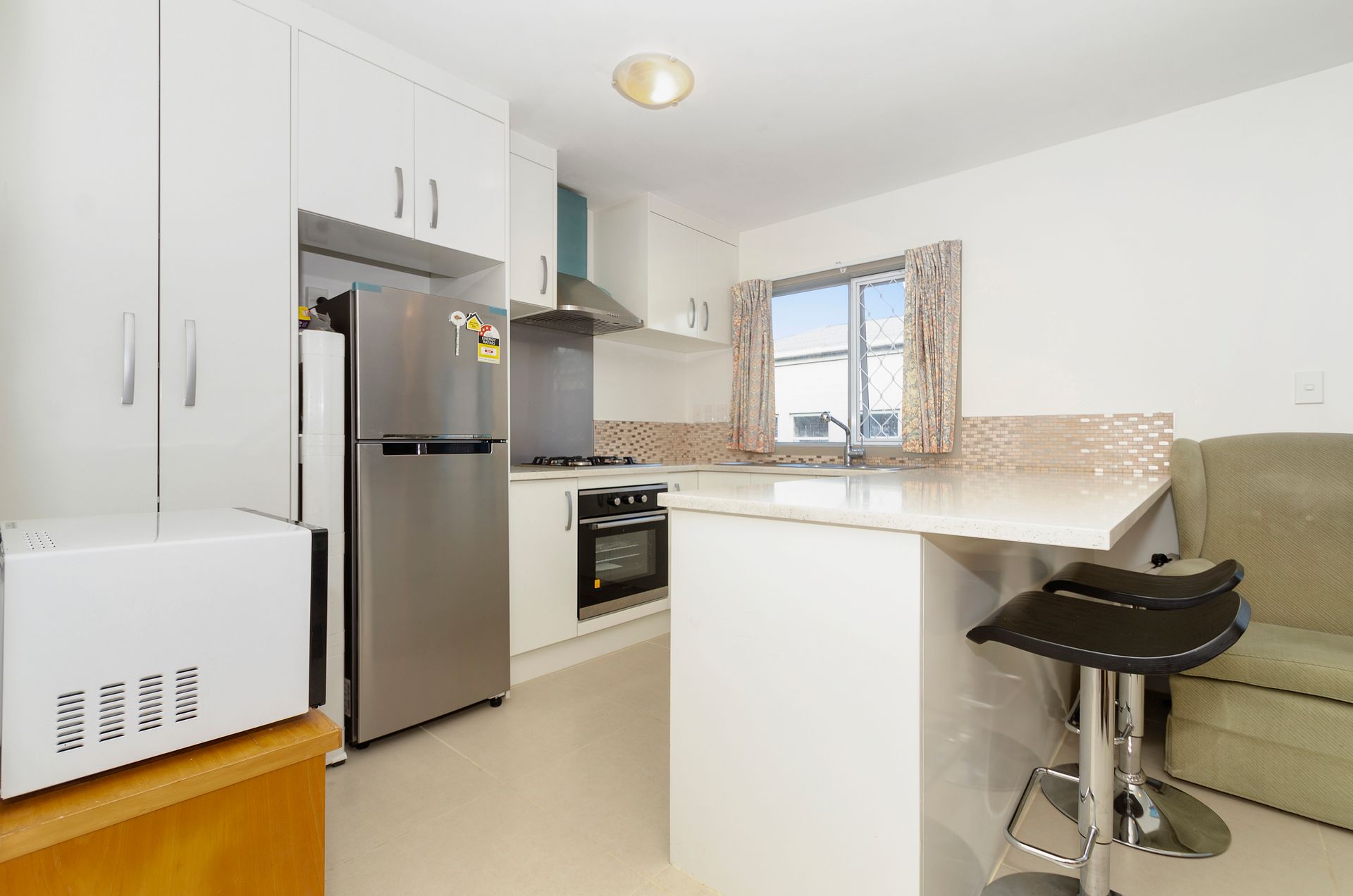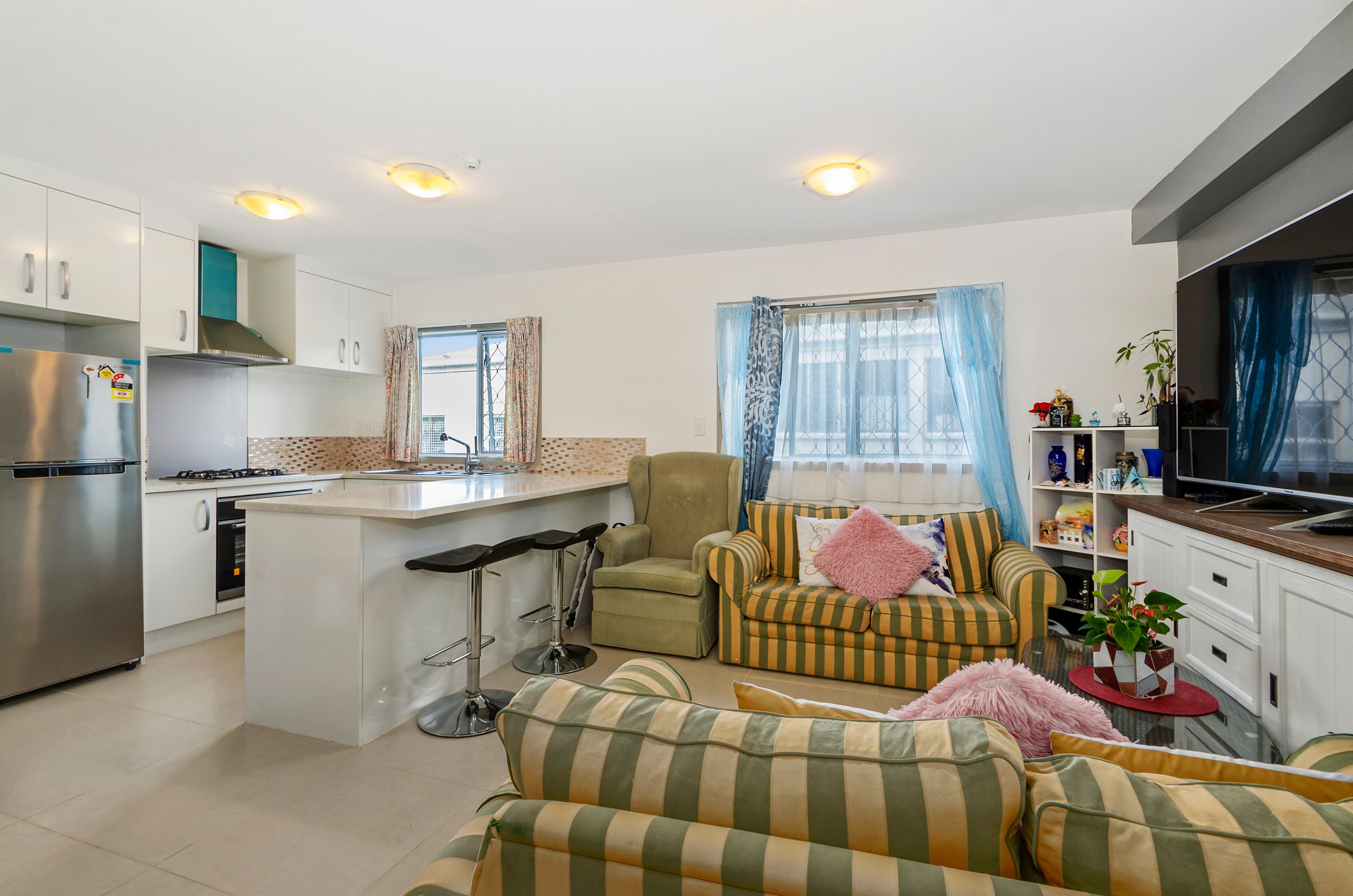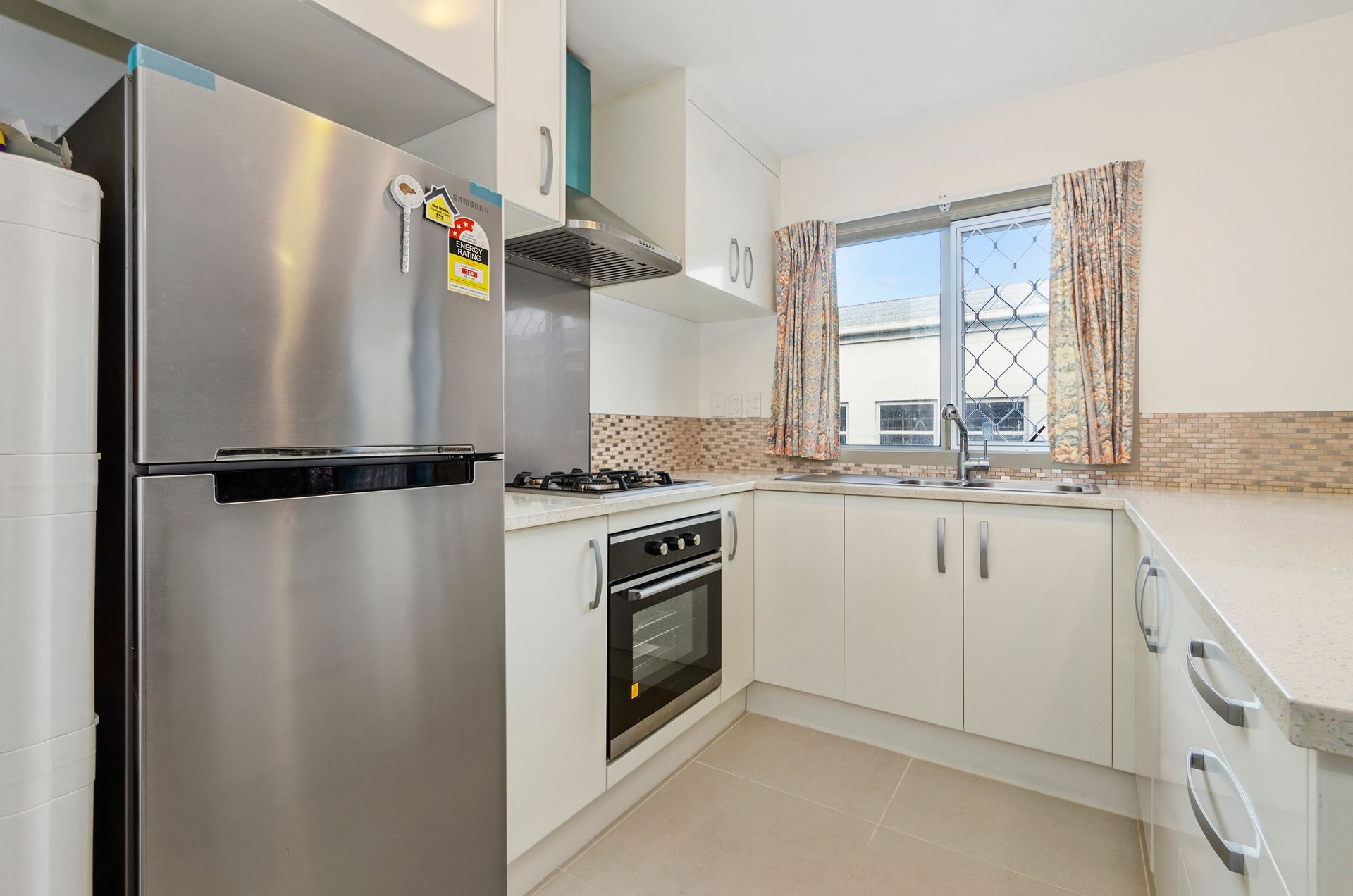 This property is situated on the ground level of the three storey, shared building. With 4 double bedrooms, spread accross an easy going 87m2 floor area, serviced by a generously sized bathroom, and a separate laundry room, there is enough space to comfortably accomodate the average sized family. Make an effortless transition into the open plan living area and kitchen, which features a delightful breakfast island, rangehood and sufficient storage and pantry space to keep your ingredients and appliances in order. This tidy, light filled open plan space enjoys a clean and neutral colour scheme throughout.