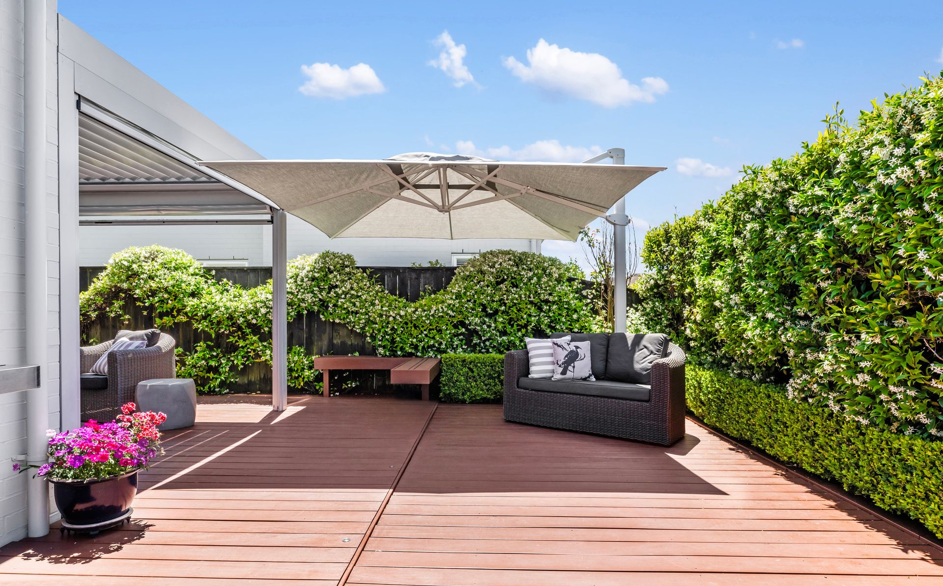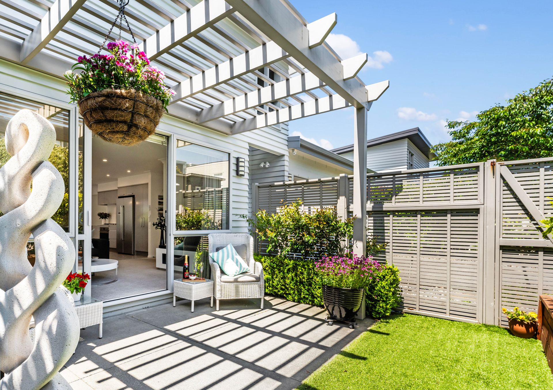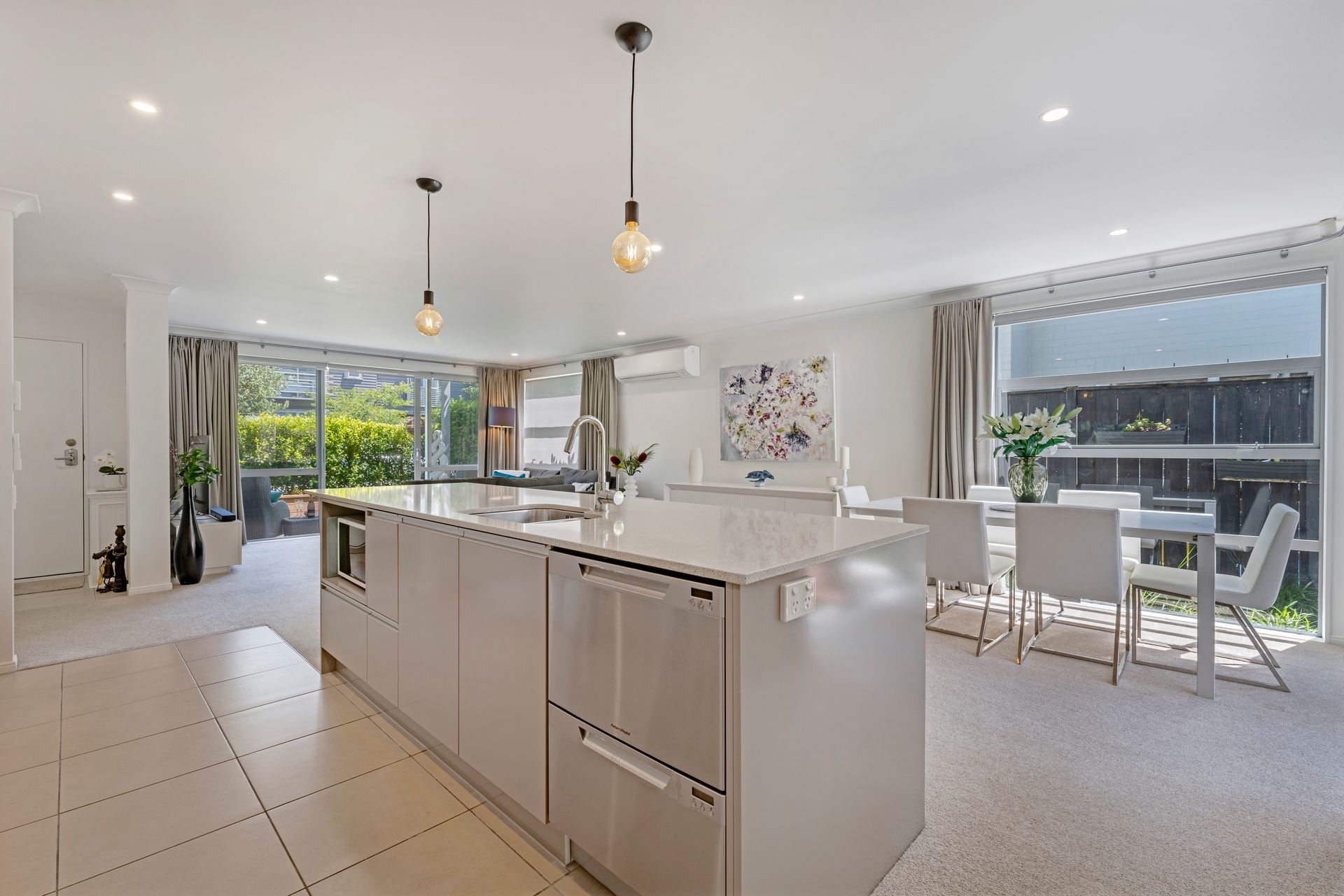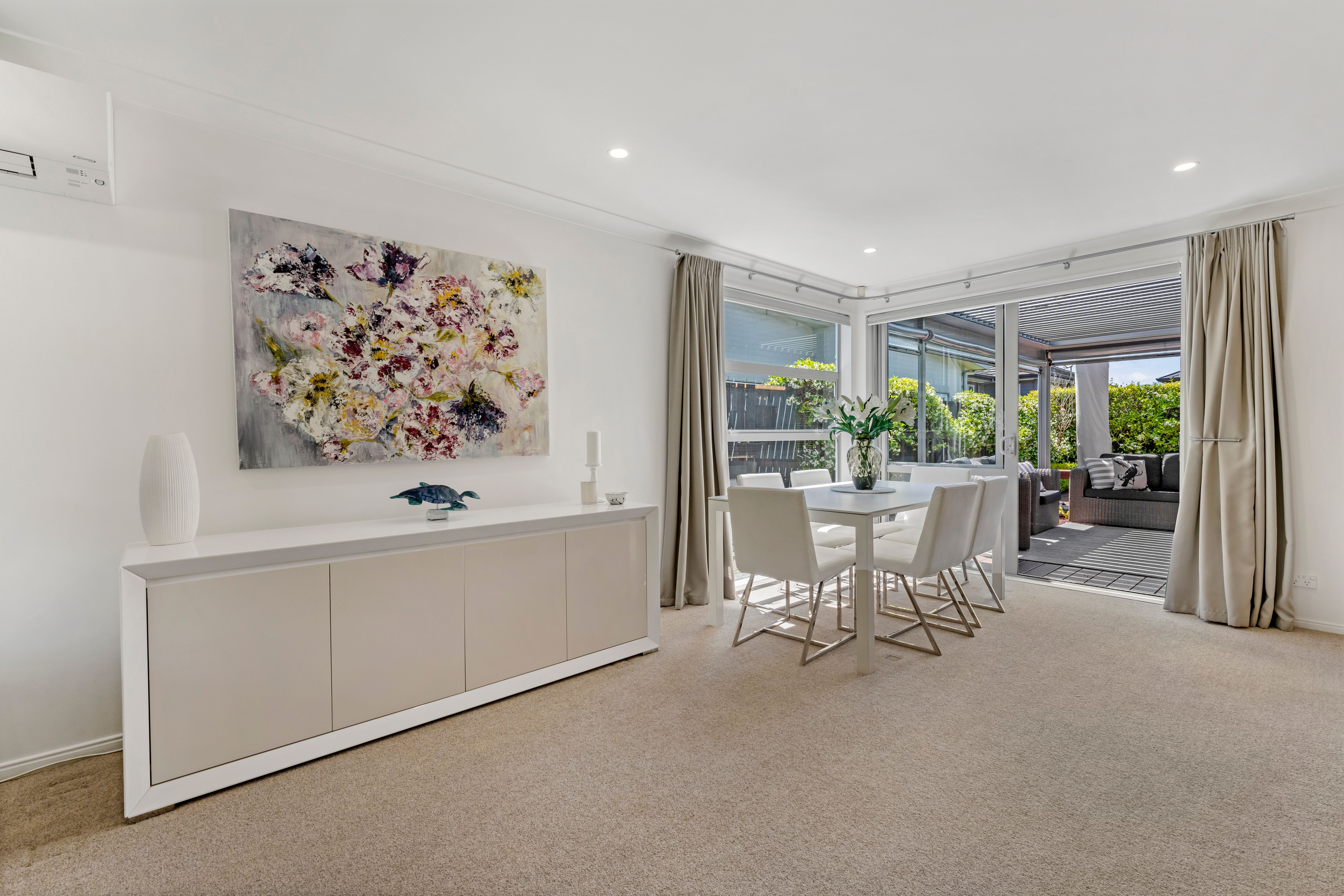With a well-designed and neutral interior, the 168m2 (approx.) home boasts a generous open plan dining and living area connecting seamlessly to a sunny front courtyard and secluded back deck, patio, and landscaped gardens. With extra exterior lighting, heaters, television, outdoor patio blinds, and an adjustable louvre roof system. This alfresco zone will be the perfect spot for all season's events and celebrations. The well-resourced kitchen with lots of cabinetry and contemporary appliances is a passionate foodie's happy place with a central island for social gatherings.