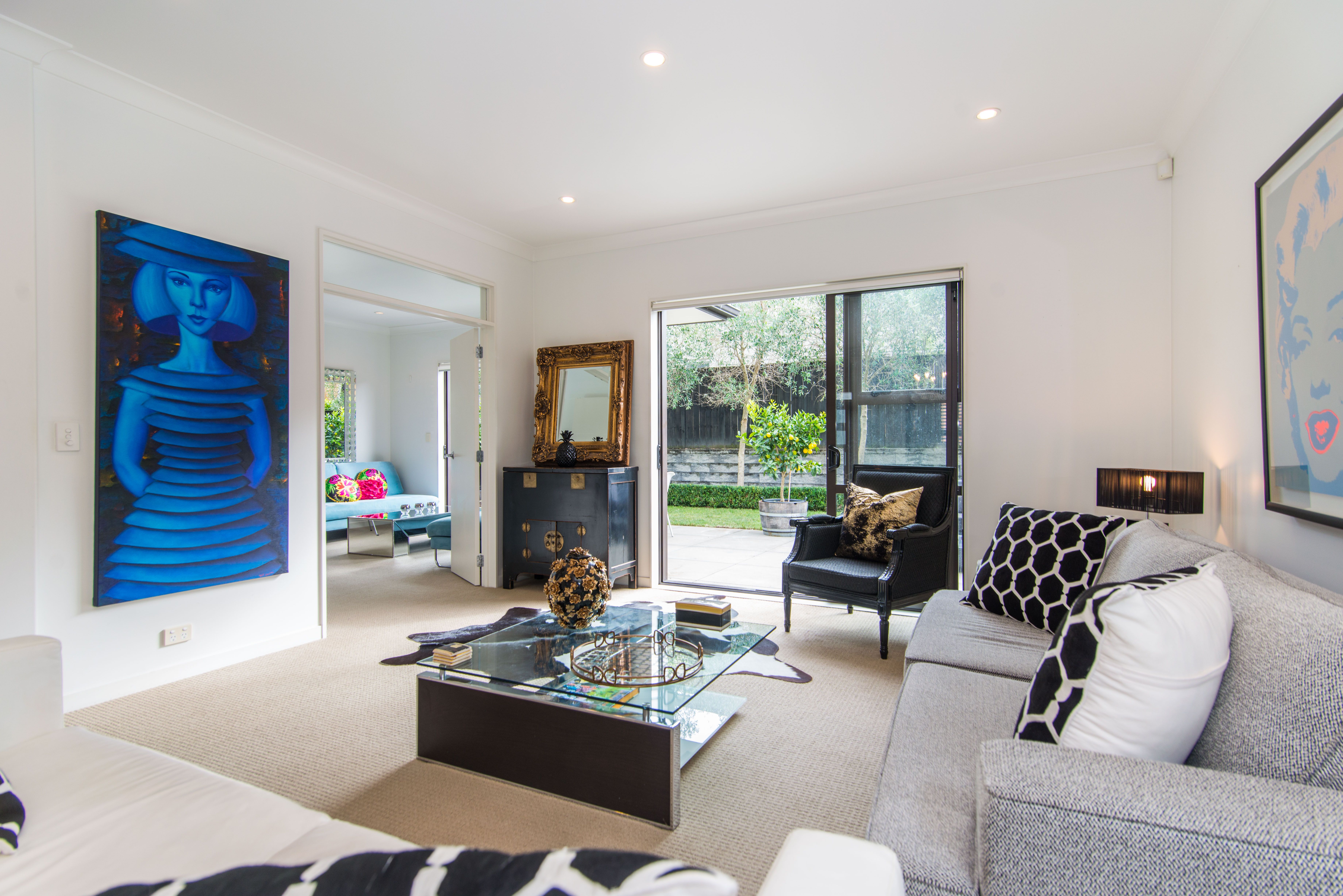 There's plenty of room upstairs, with four large bedrooms and a study. Wherever you are, enjoy the immediate sense of relaxation and comfort in a light, airy space. A double garage and extra off-street parking means no car juggling in the morning, and you're not far from the SH1 motorway on-ramp. You'll be close to Stonefields markets and lots of recreational centres.