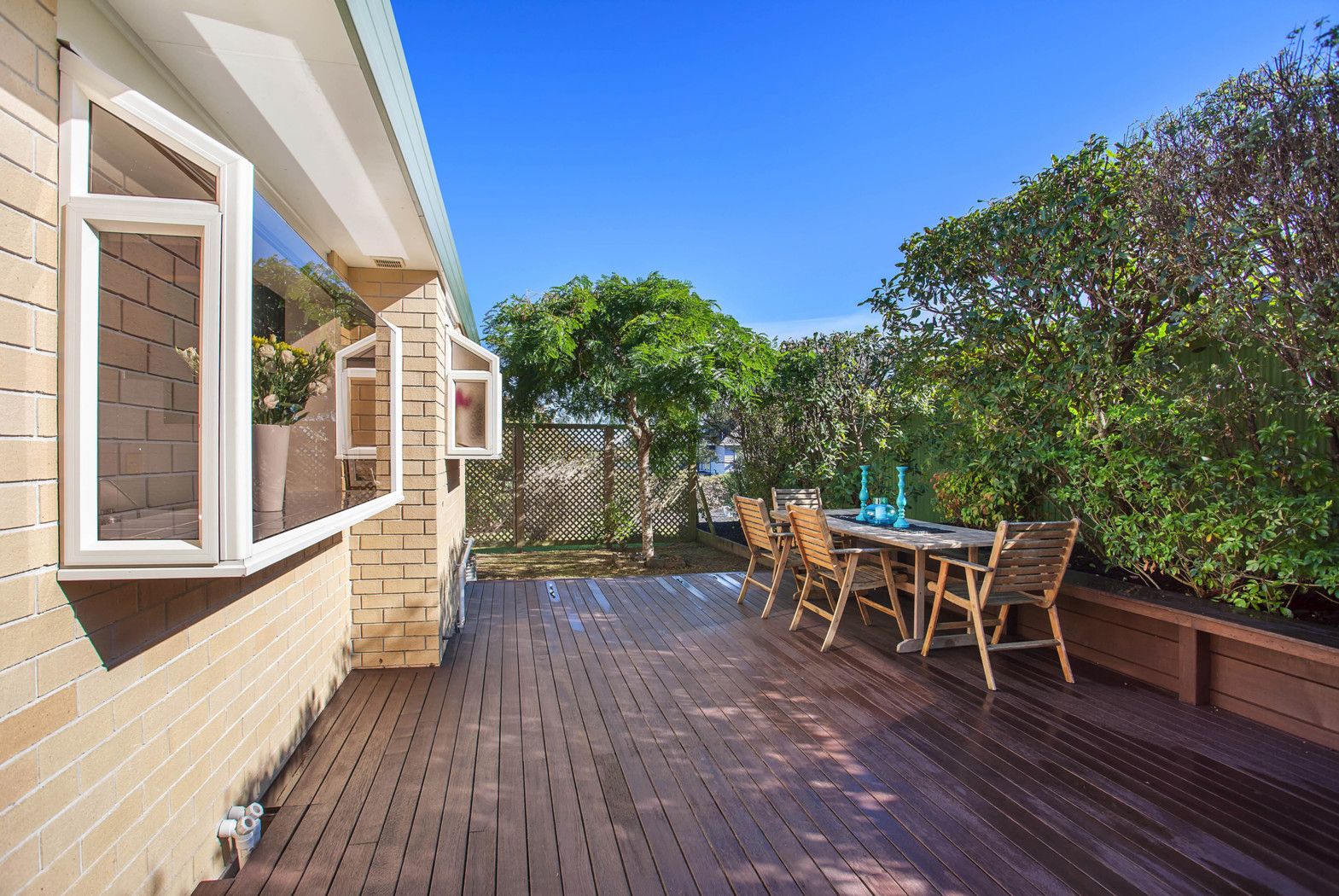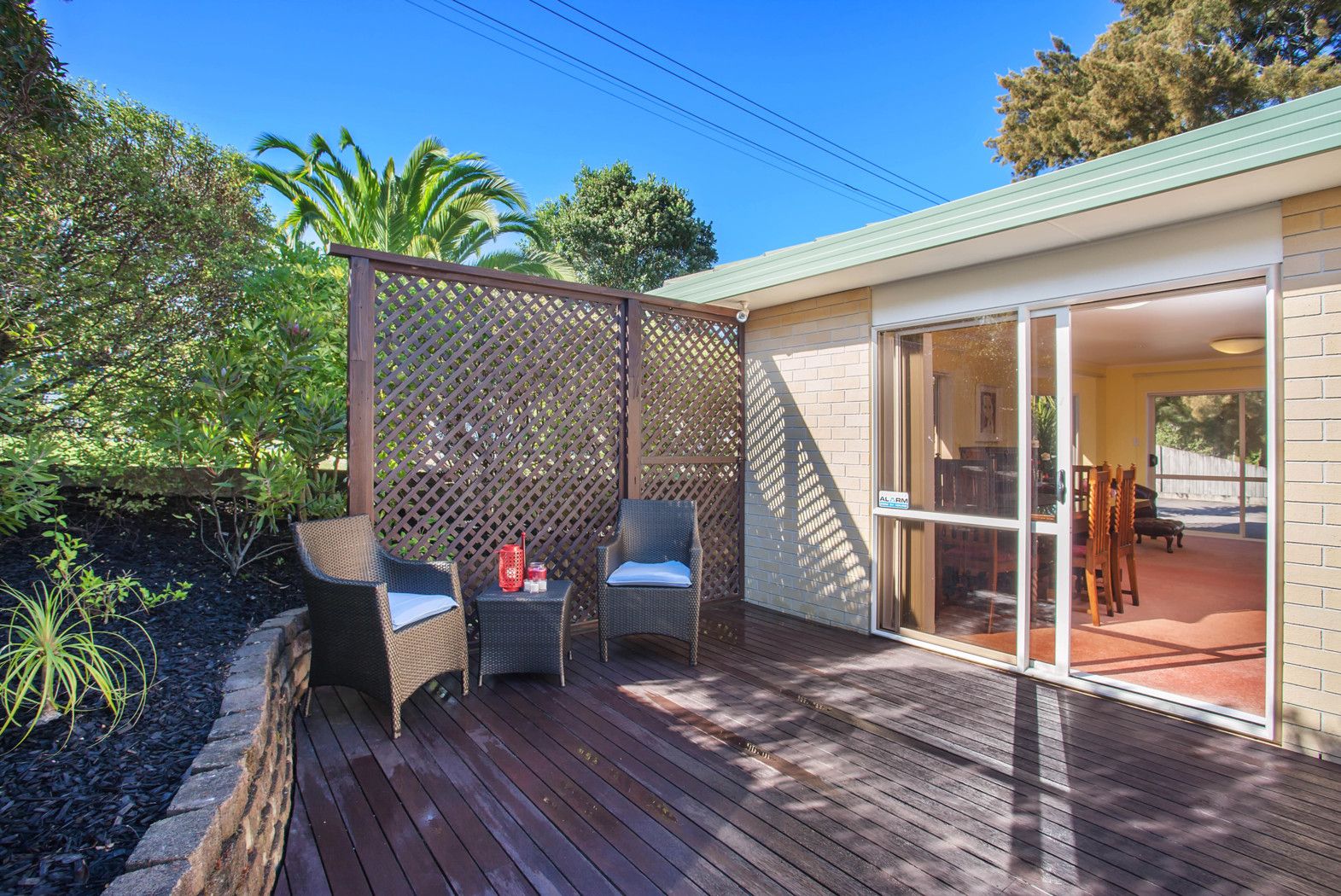 Open plan modern kitchen, living and dining flows onto a private North facing deck and garden.