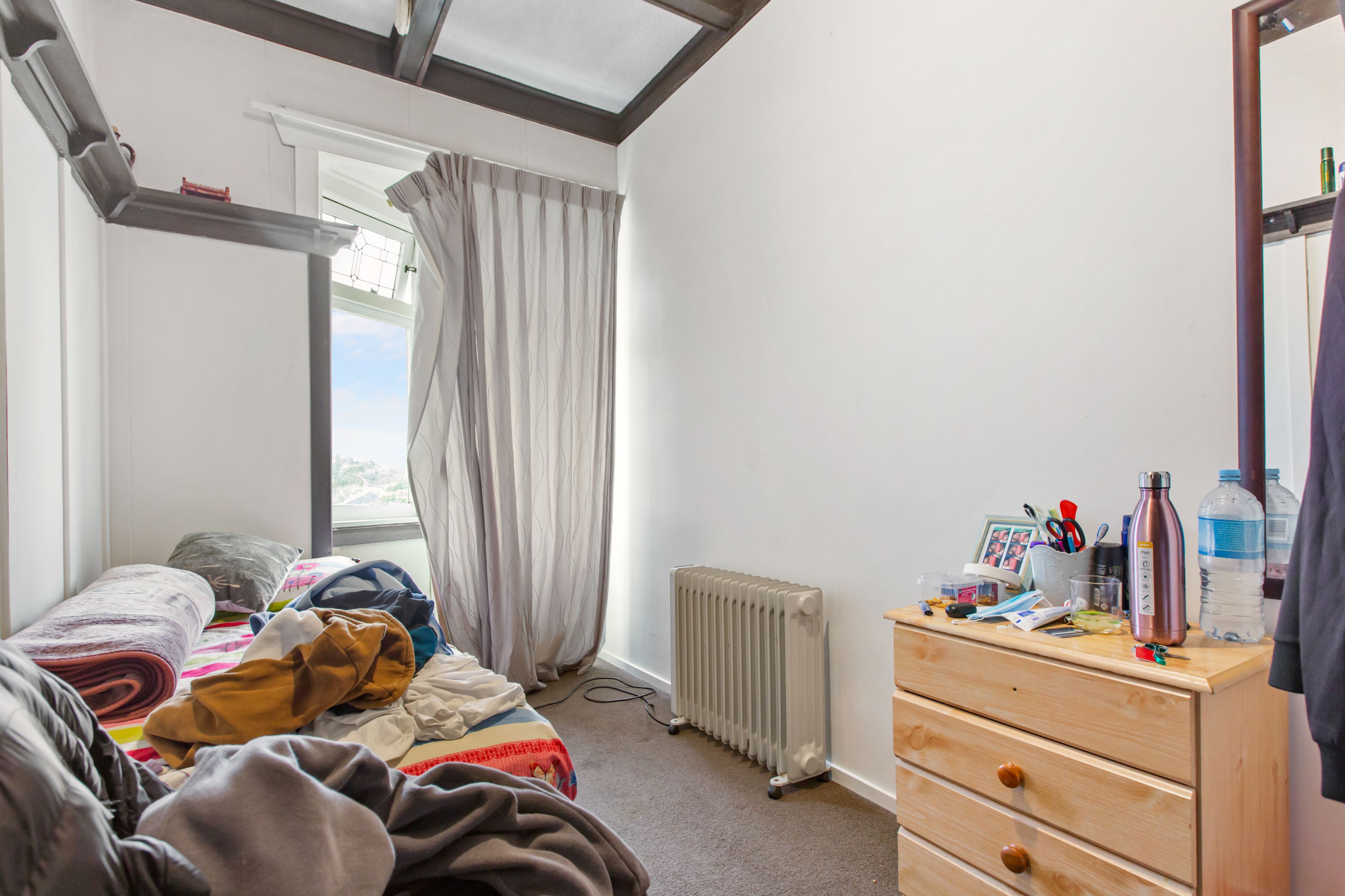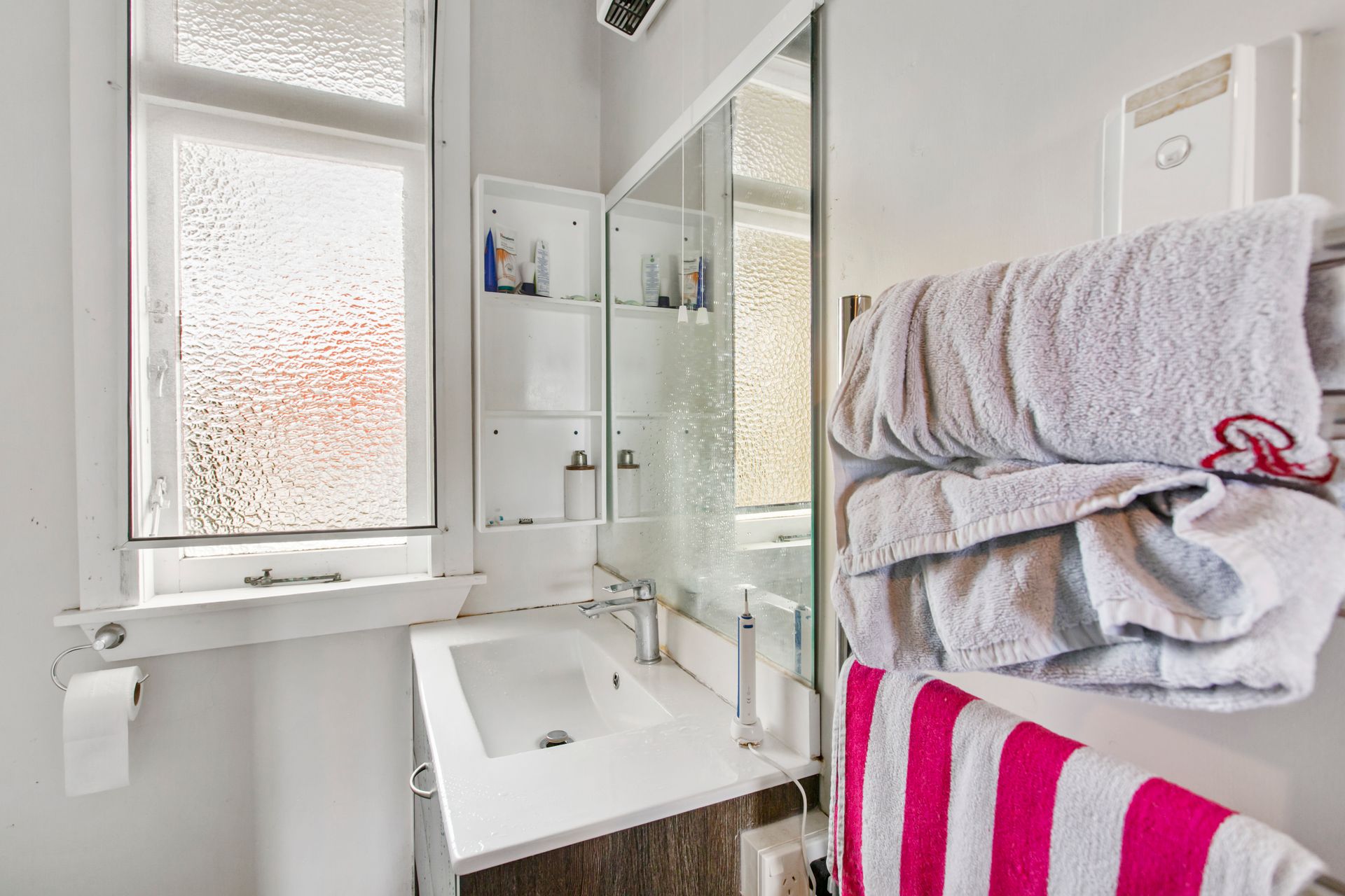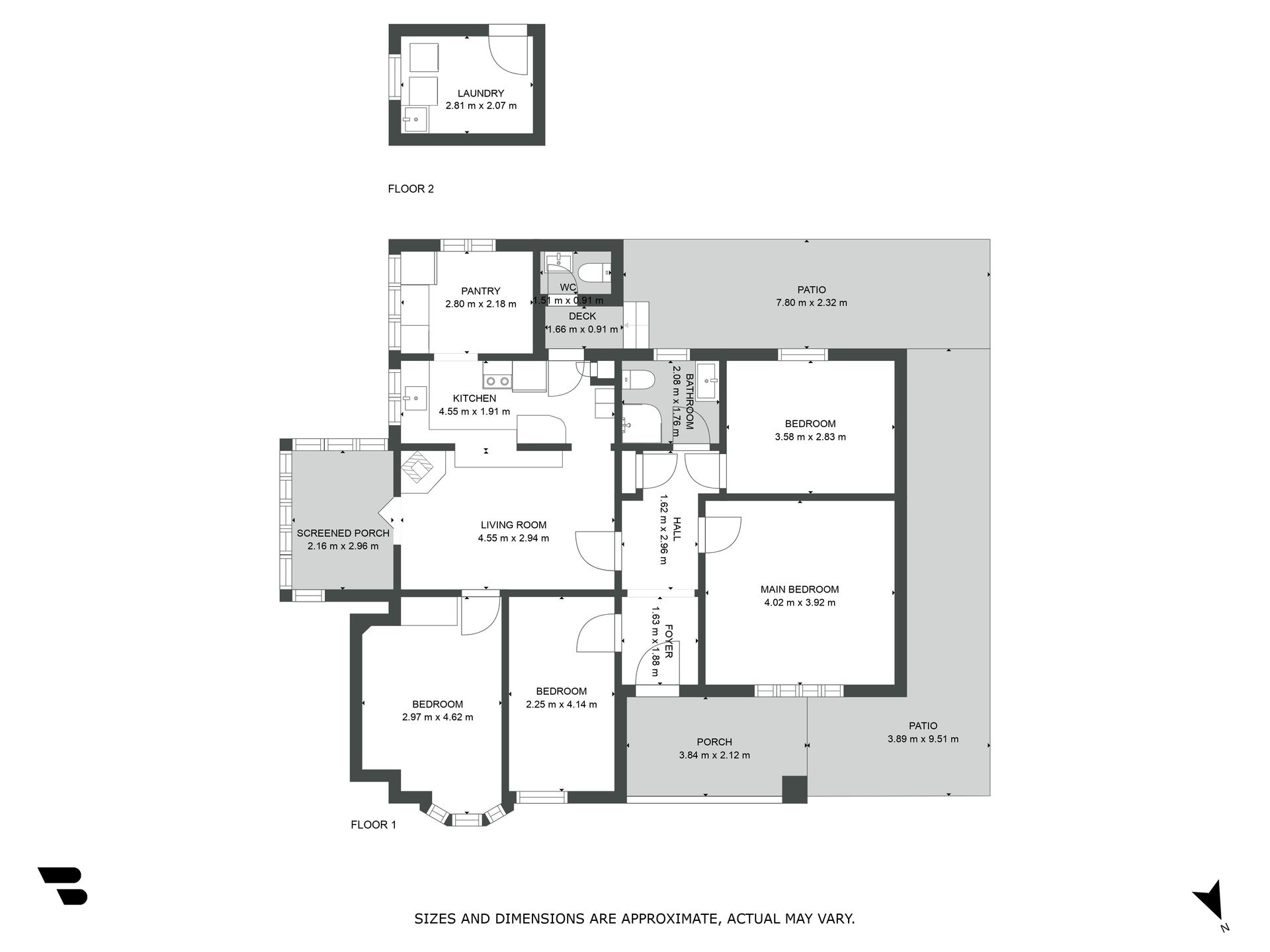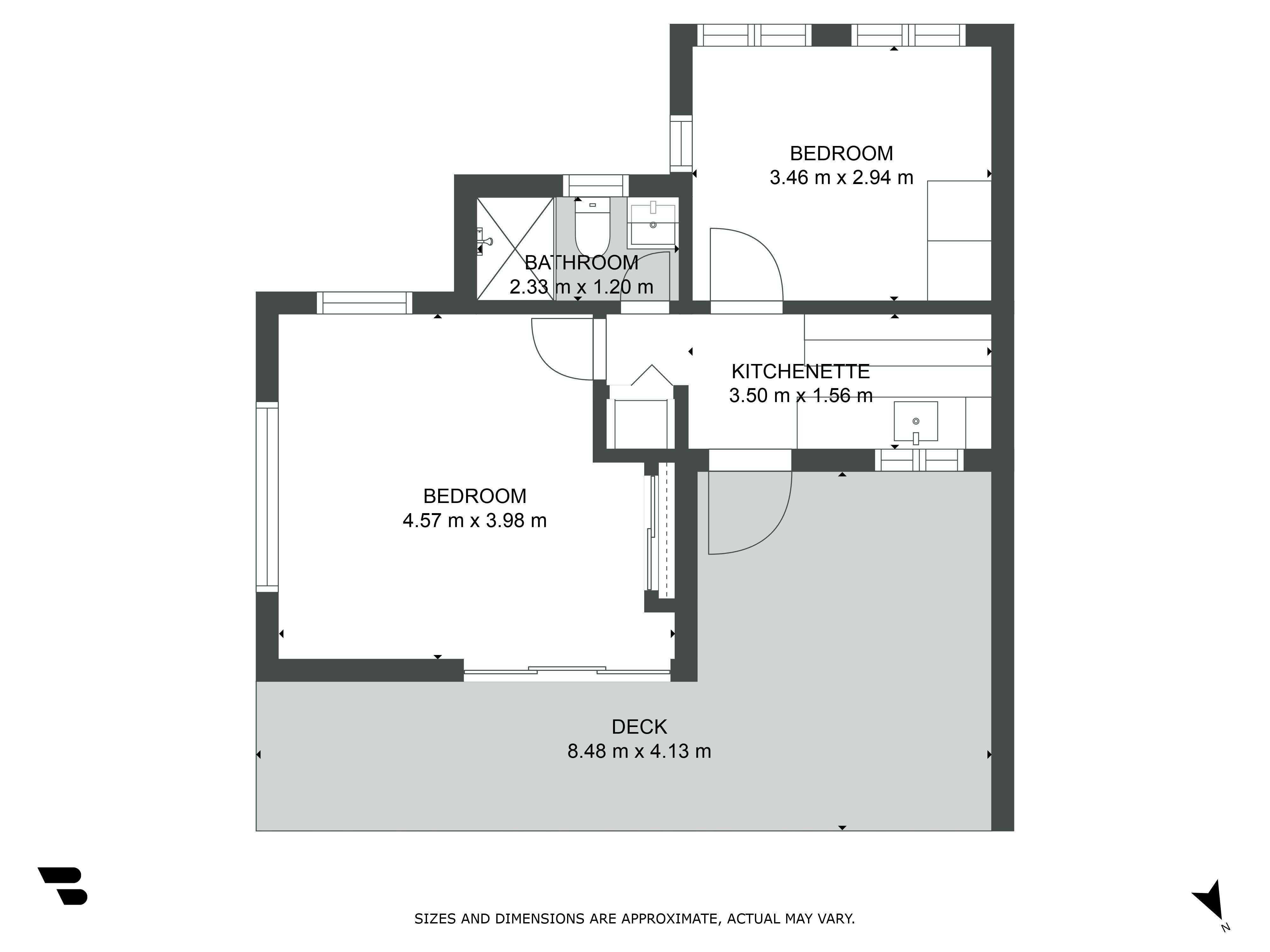 * Four sizable bedrooms leading off a central hallway and sharing a compact bathroom with toilet while an additional separate toilet is off the back deck