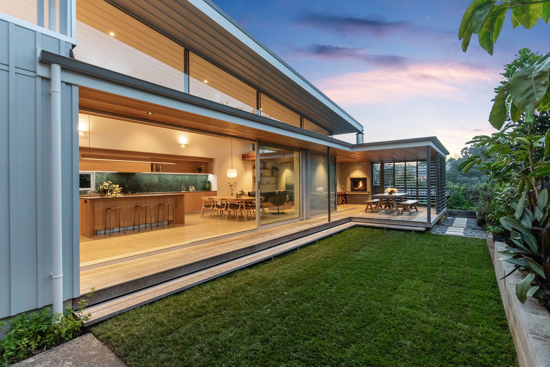 Combining architectural excellence with traditional charm, this classic four-bedroom bungalow has been meticulously renovated and then enhanced with a dramatic modernist extension, the vision of Andrew Meiring Architects.