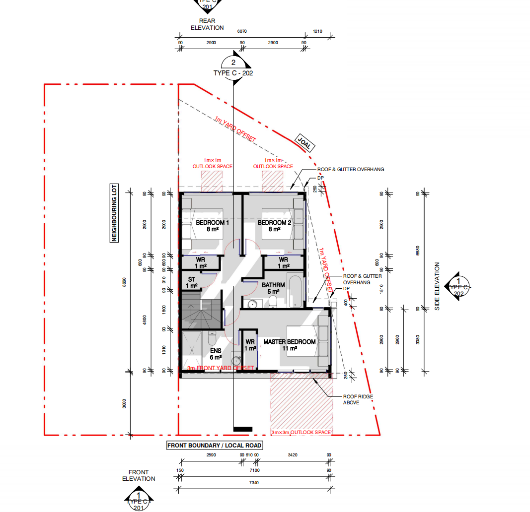 • Type C homes offer a similar two-storey design, with open living spaces, one guest toilet, three bedrooms (one master with ensuite), a shared bathroom, and off-street parking.