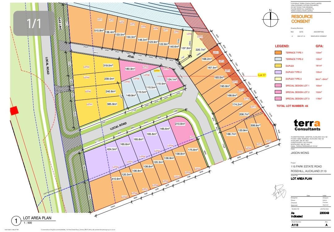115 Park Estate Road offers an exciting development opportunity in the rapidly growing suburb of Rosehill, within the Papakura District. This property features 5 lots (36, 37, 38, 39, 40) and is ideal for residential terrece house. Draft architectural plans and Resource Consent have already been granted for two distinct types of homes.