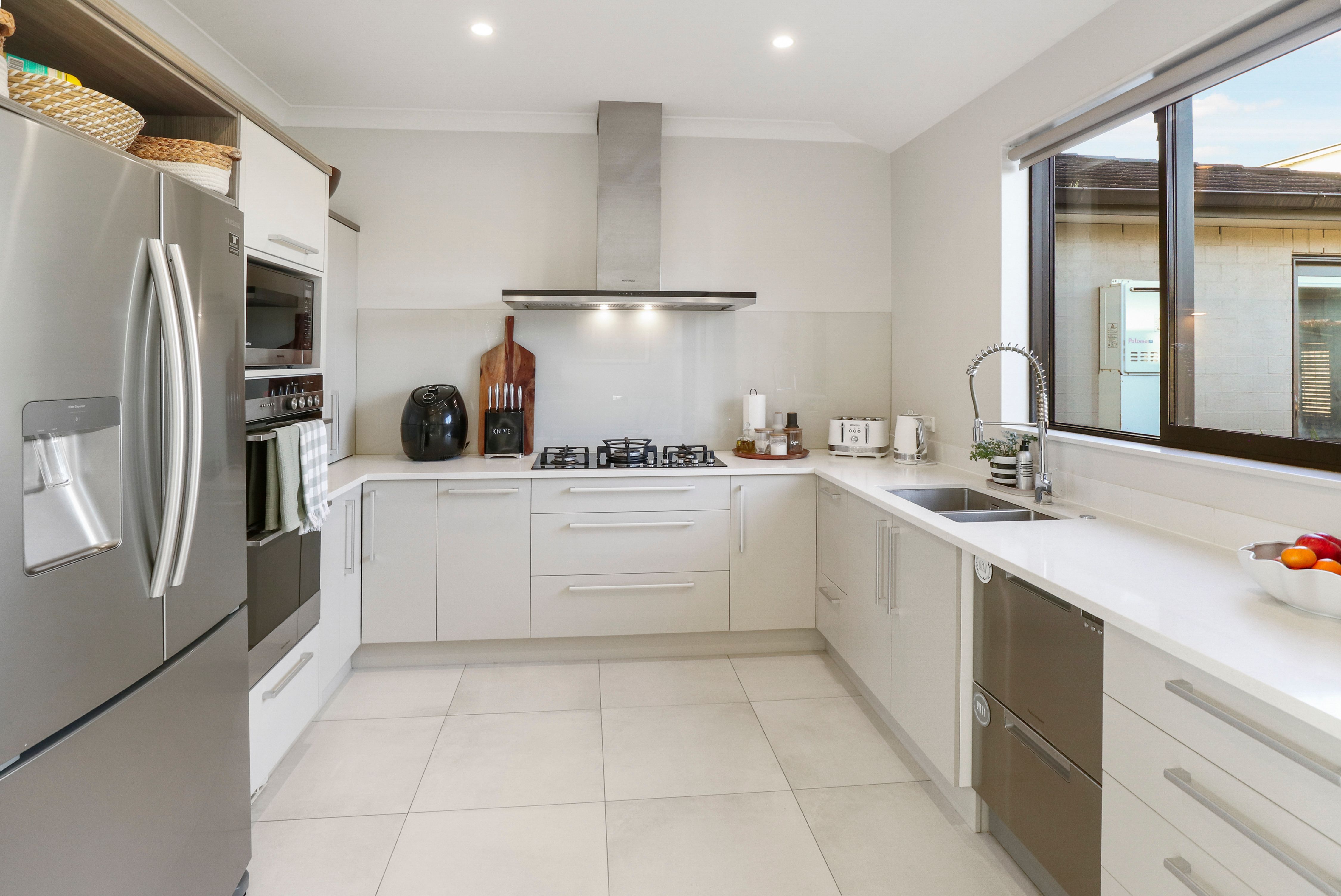 • Kitchen: The modern open-plan kitchen and dining area is the heart of the home, ideal for family gatherings and meal times.
