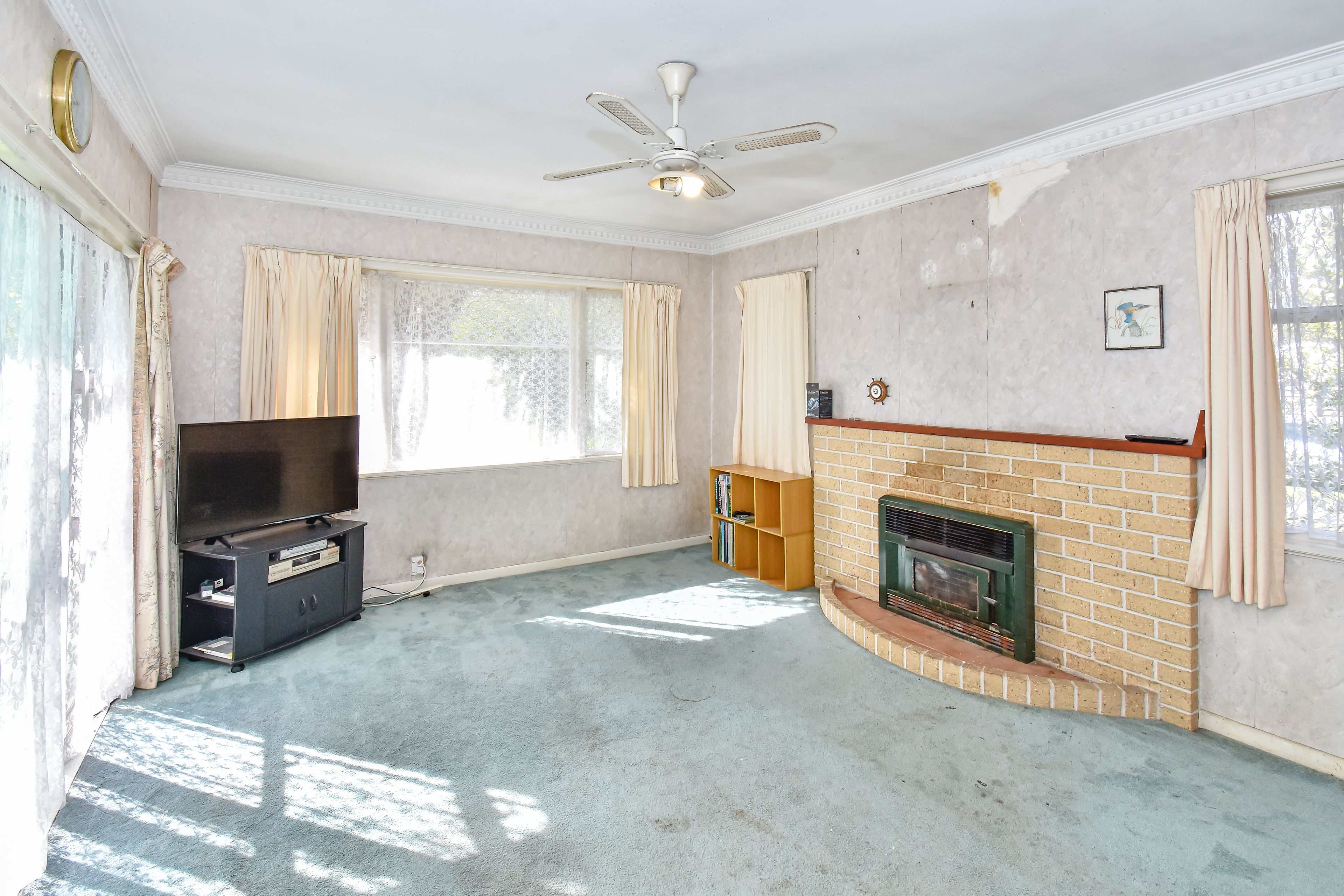 Other features include original carpet and timber floors (that will be stunning with a sand and varnish and the covered in rear porch that backs onto a private yard with established trees, and huge garage and carports.