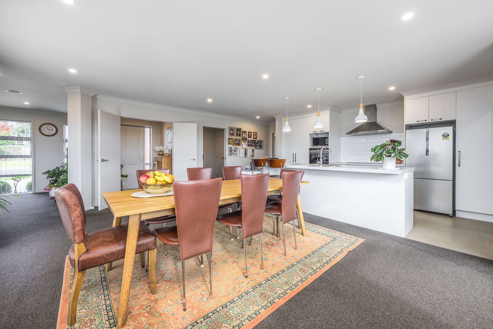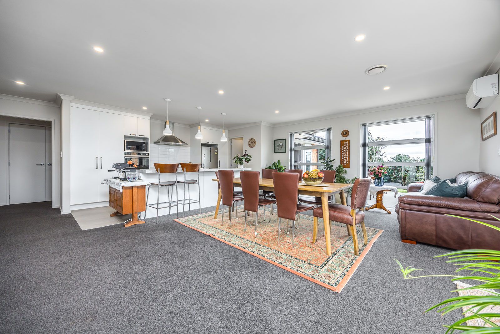 Additional features include an insulated carpeted double garage, providing ample storage space, and extensive off-street parking that can accommodate cars, boats, and caravans. Modern comforts such as double glazing and a heat pump ensure year-round comfort.