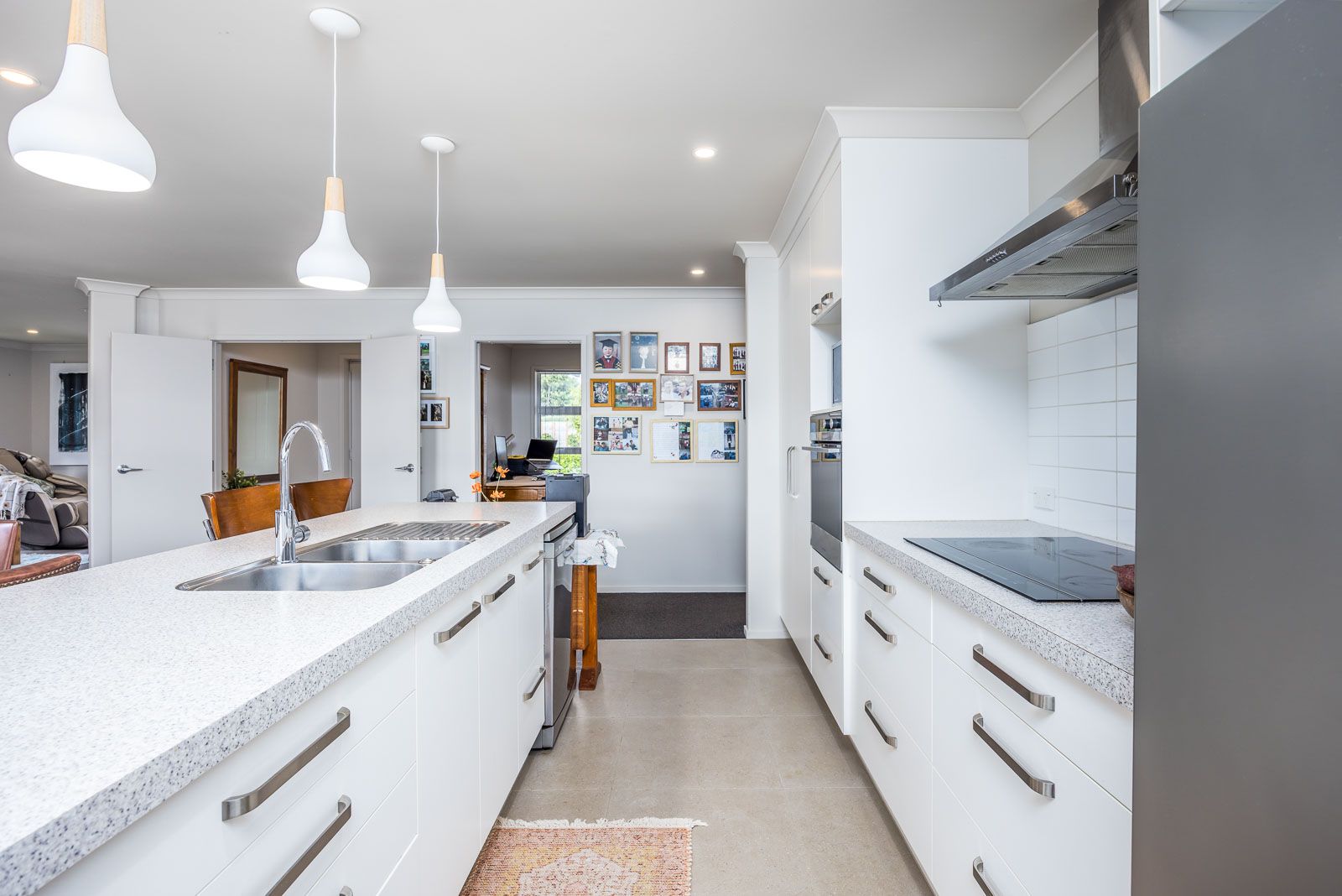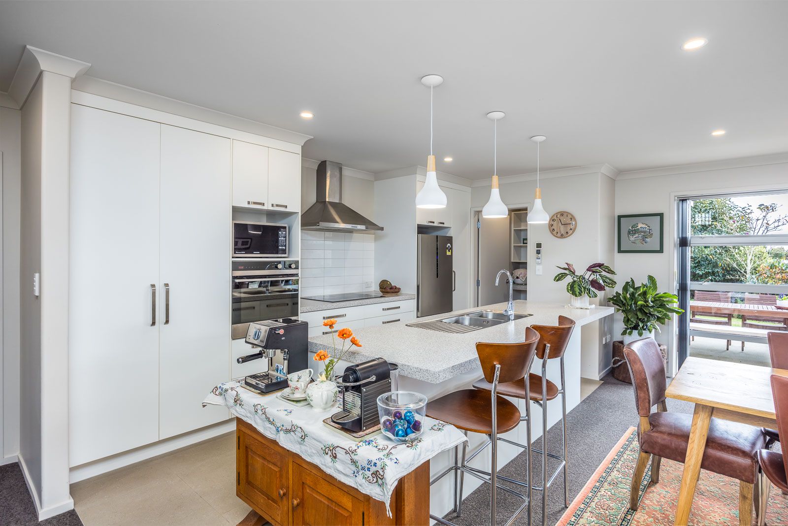 You'll love the spacious, light-filled open-plan living area, complete with a sophisticated butler's pantry, induction cooktop, and heat pump. The formal lounge offers an open plan and cozy setting for fun family gatherings. Rooms include four generously sized double bedrooms, highlighted by a master suite with a walk-in wardrobe, ensuite, and French doors opening to the serene garden. Also included is a contemporary main bathroom and a separate toilet.