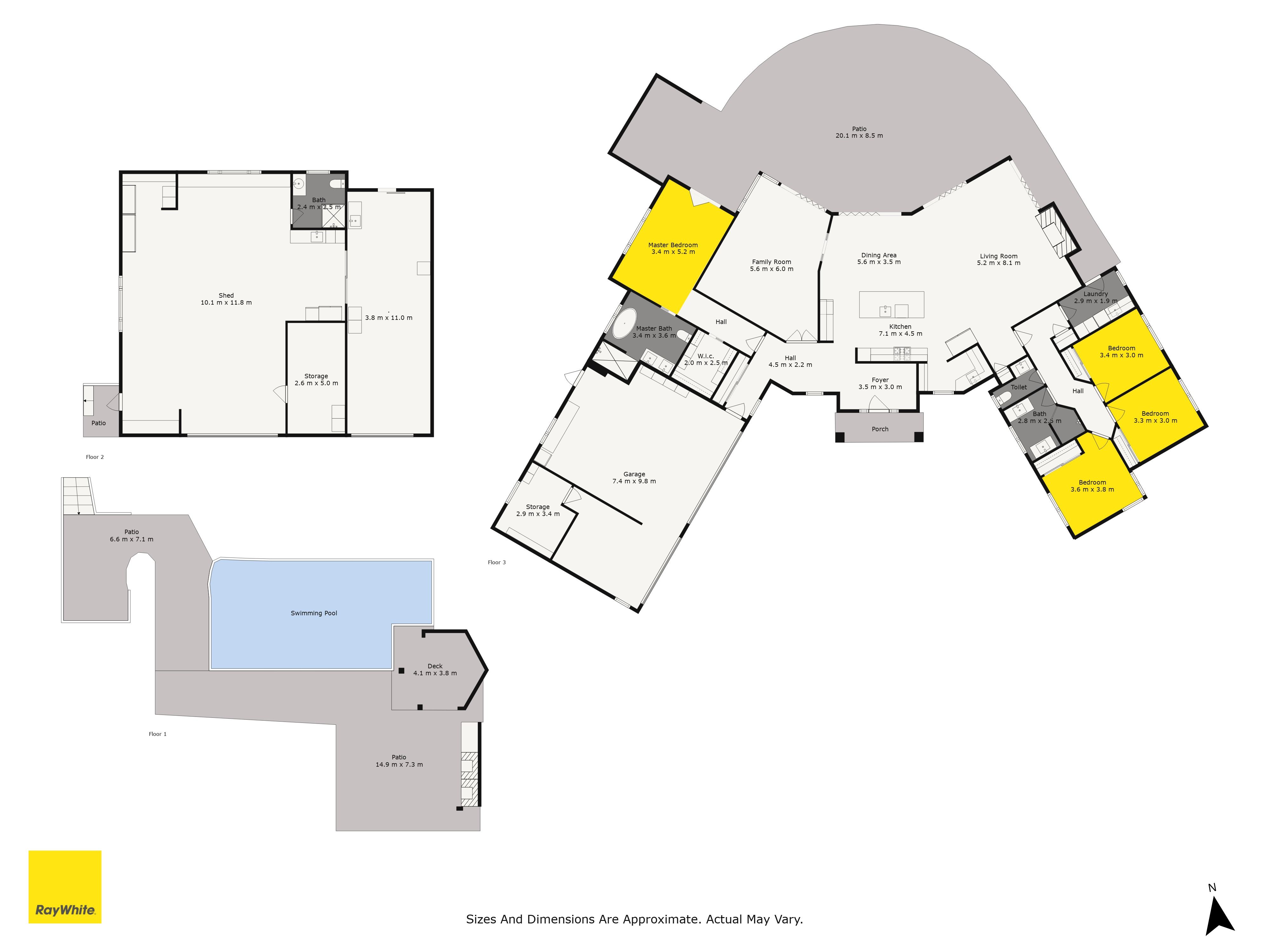 Additional features include three-car garaging, a separate laundry, and an office/storage room, while a ducted heat pump guarantees year-round comfort.