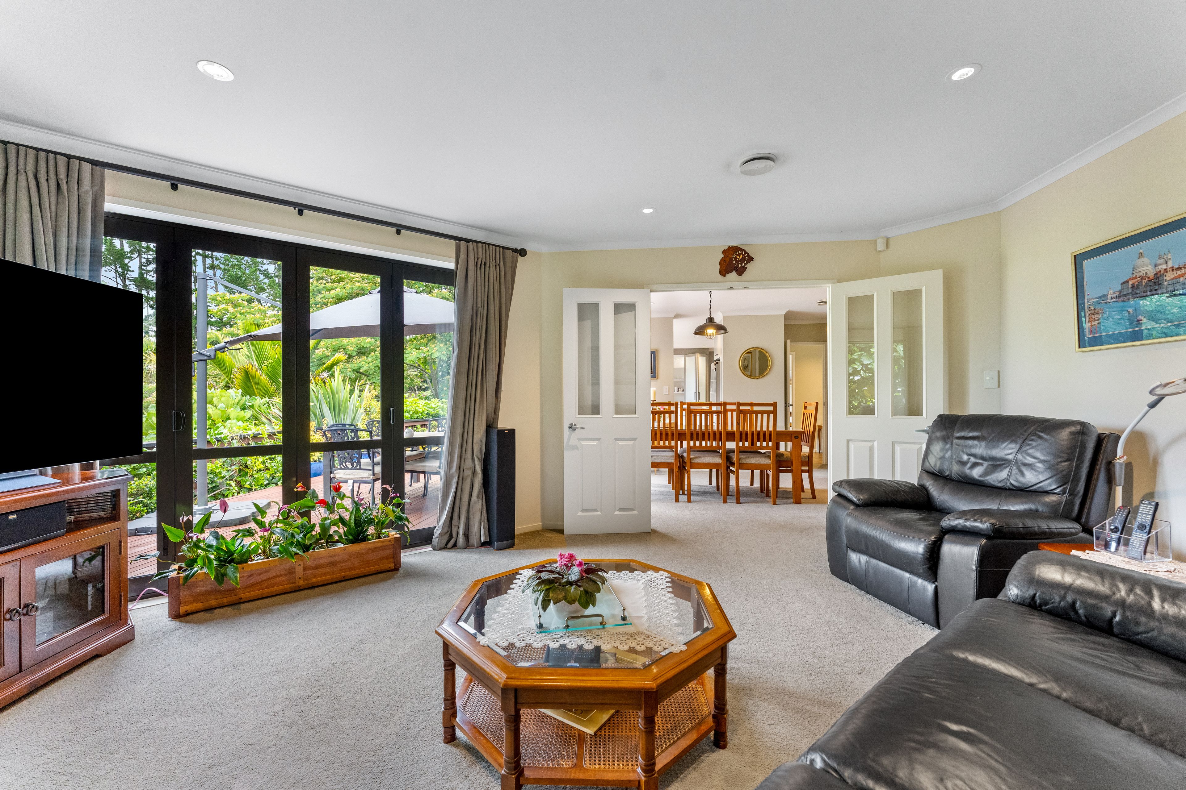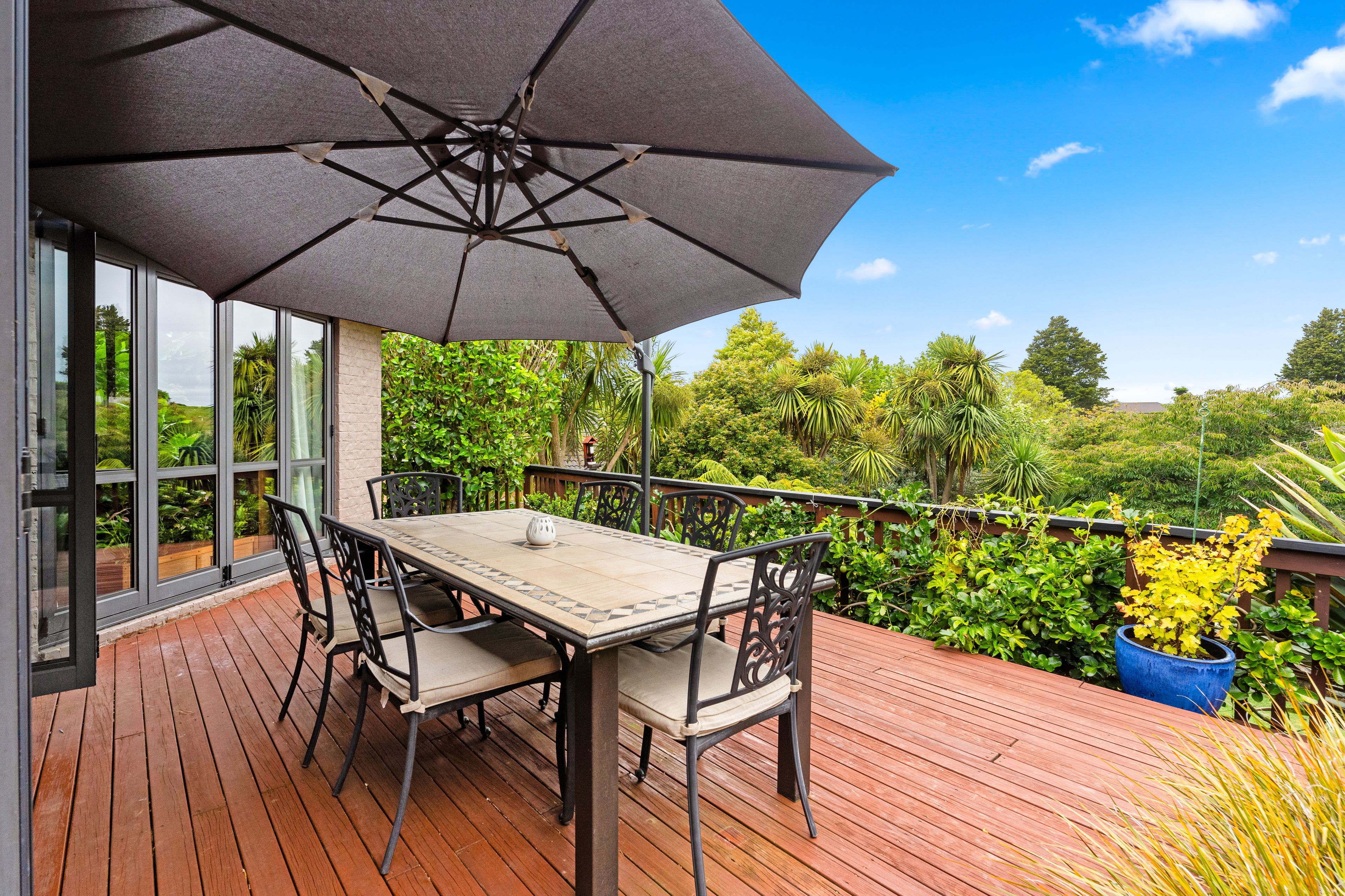 Amazing outdoor living here with views across trees and garden. A beautiful private, peaceful setting that backs onto Reserve.