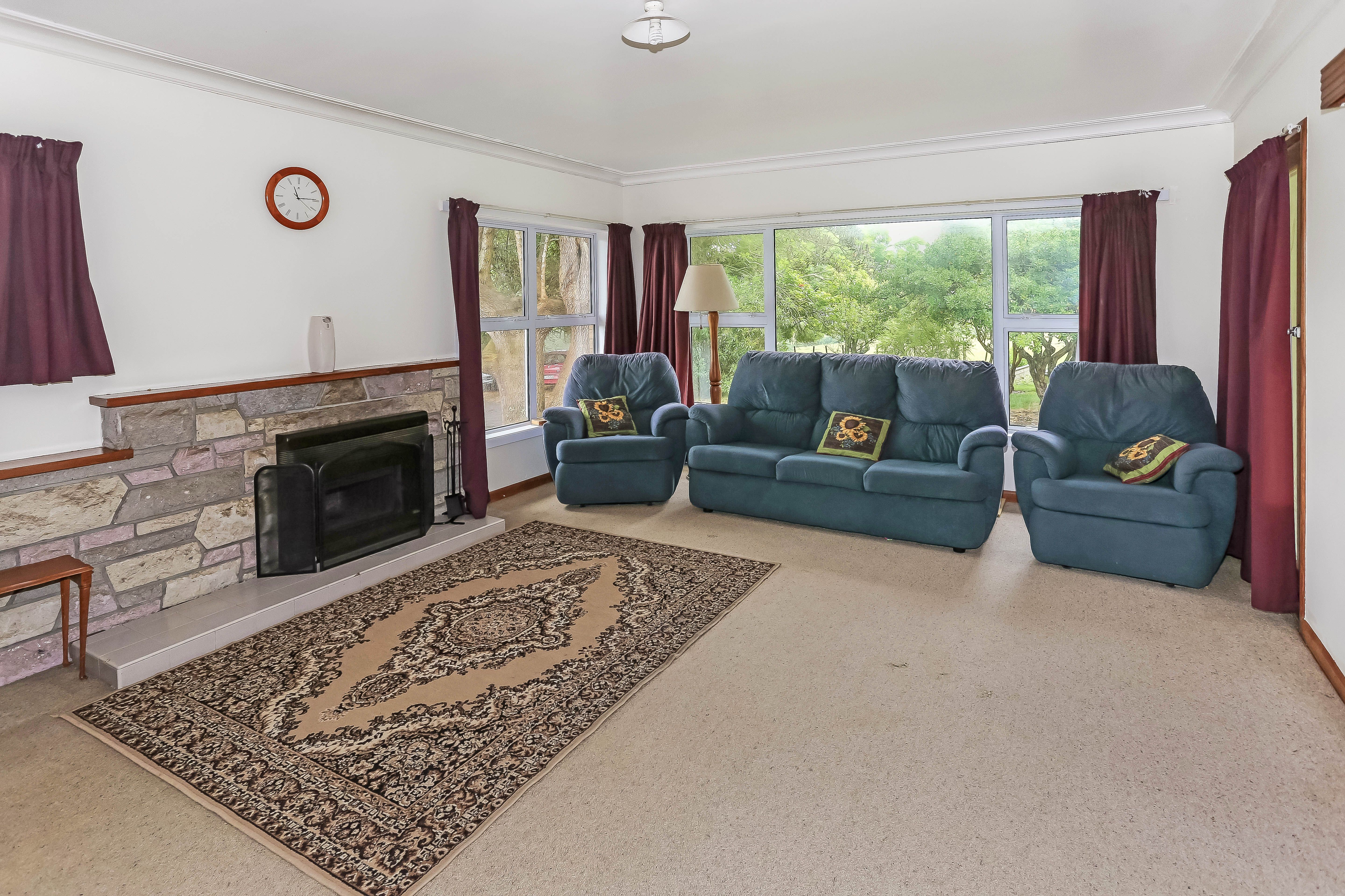 The generous sized separate lounge is fitted with an open fire to keep you cosy on the cooler evening. Open plan kitchen/dining room leads out to the patio and lovely rural views across the neighbouring fields and valley behind the property.