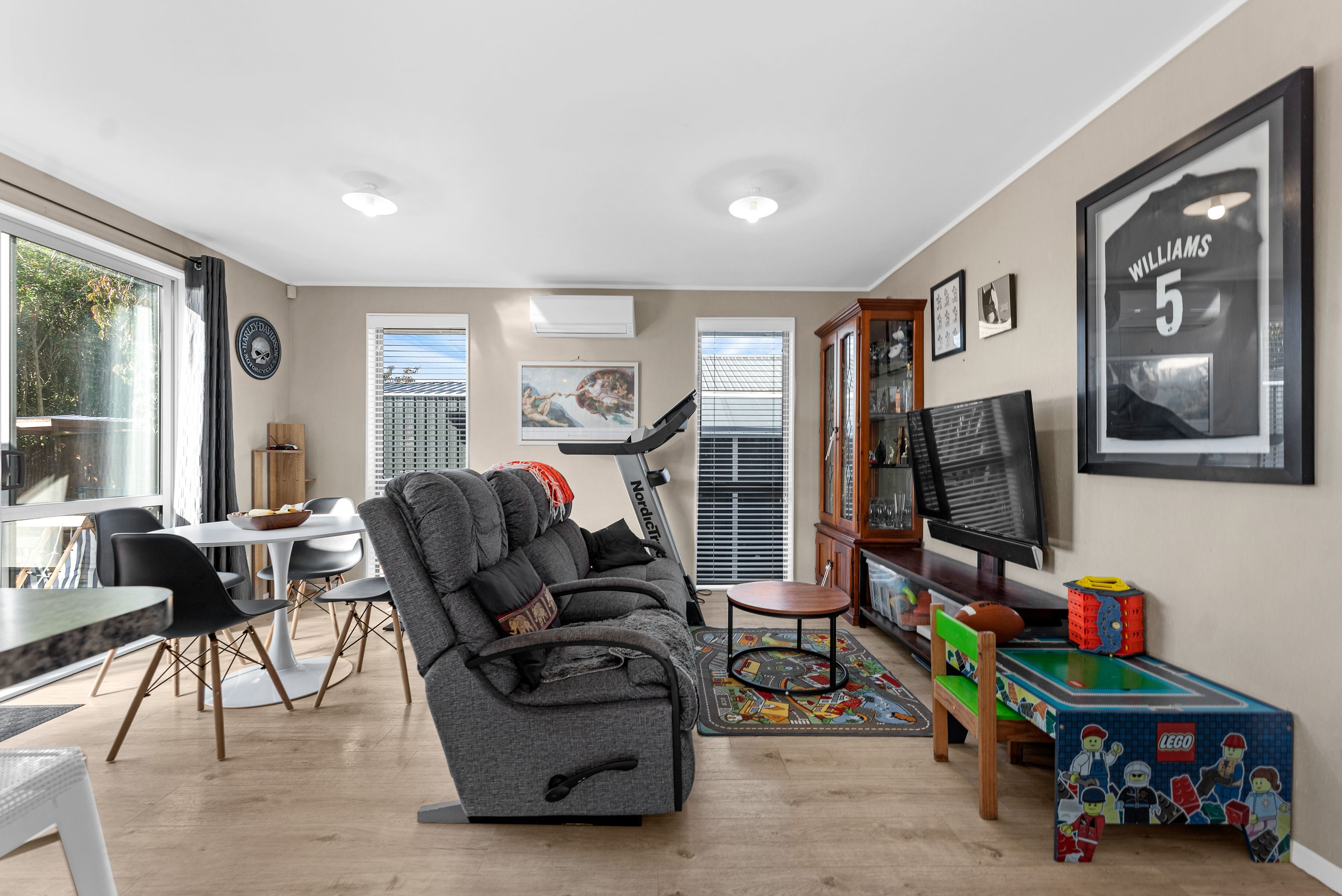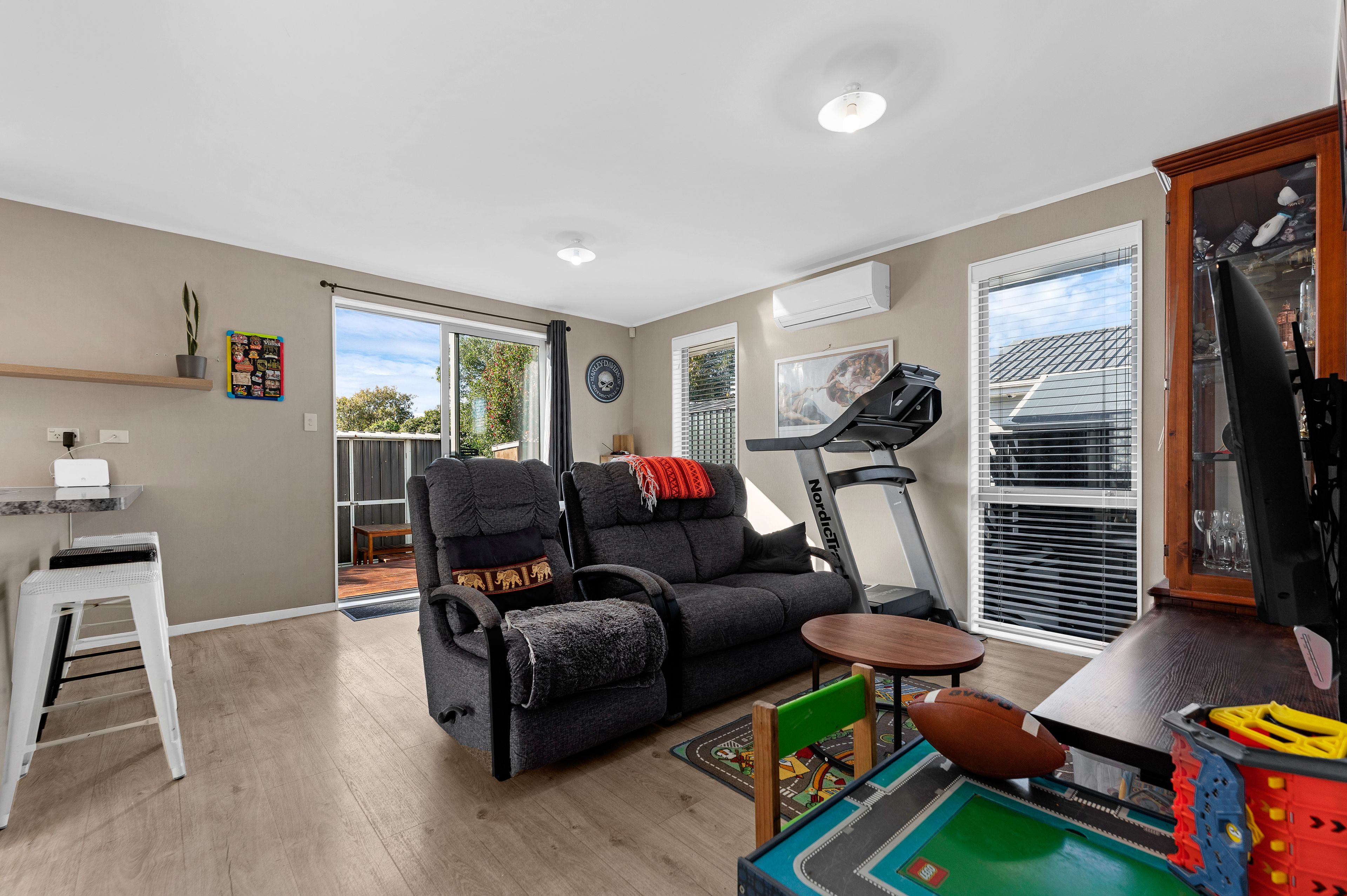 Enjoy the spacious light filled open plan dining and lounge room equipped with a heat pump to keep you warm during the winter months ahead.