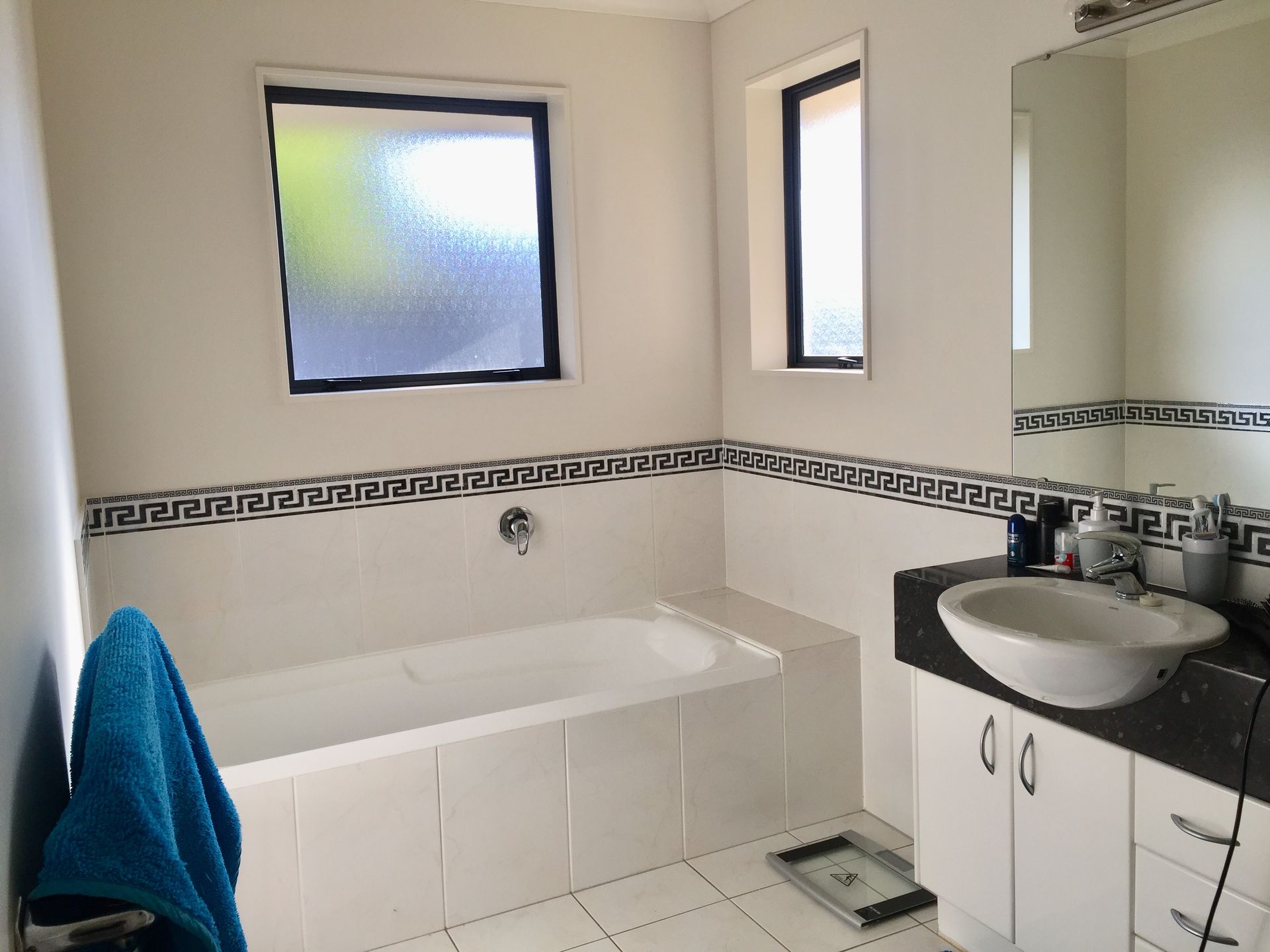 Main bathroom includes bath and shower