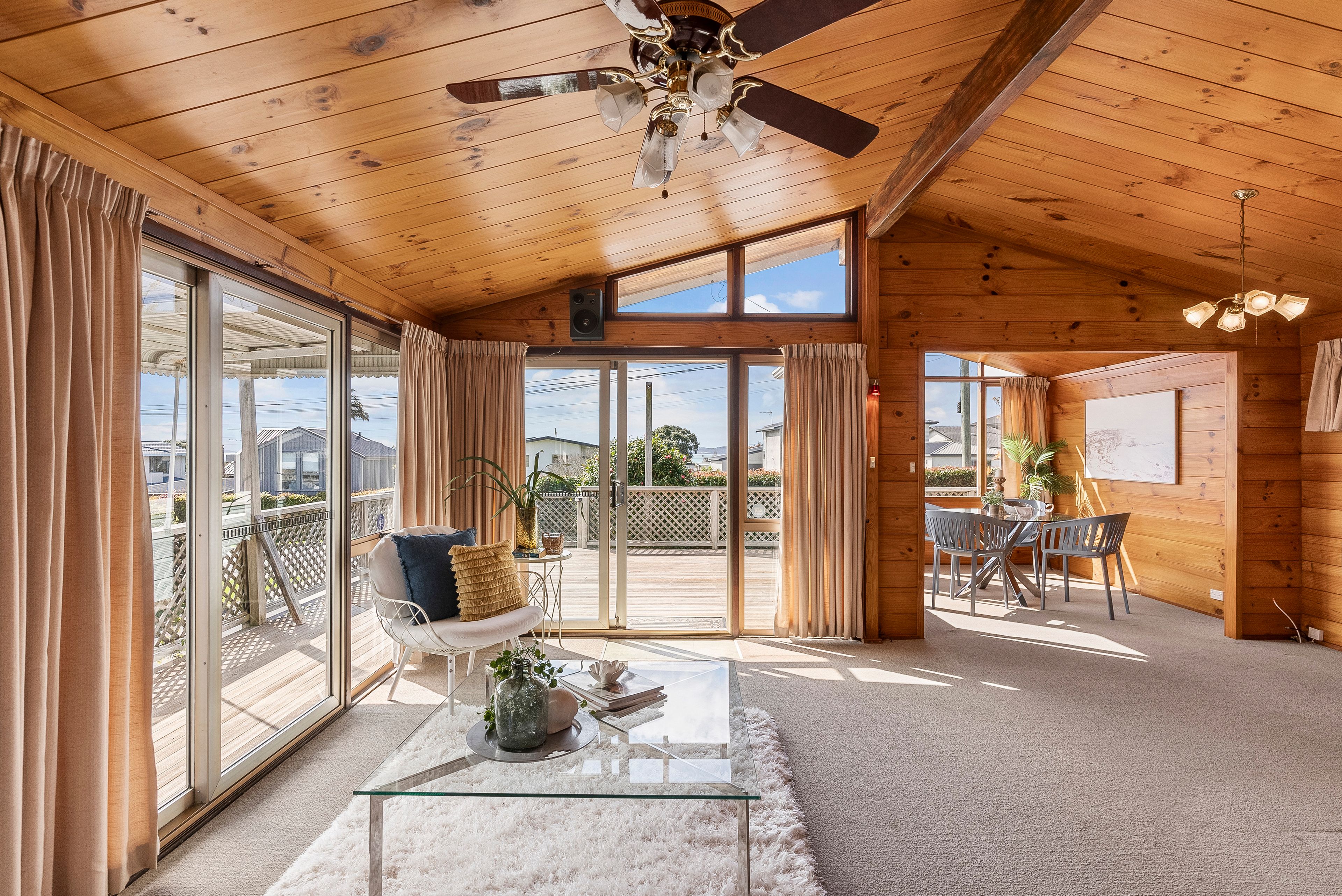 The home features three comfortable bedrooms and a generous main bathroom. The family kitchen and dining area offer direct access to the deck, creating an easy indoor-outdoor flow, perfect for relaxed living. Sitting on a full quarter-acre section, this original Beachlands property boasts ample space. A large shed for the toys is located down one side, while the other offers plenty of grass for the kids or pets to enjoy.
