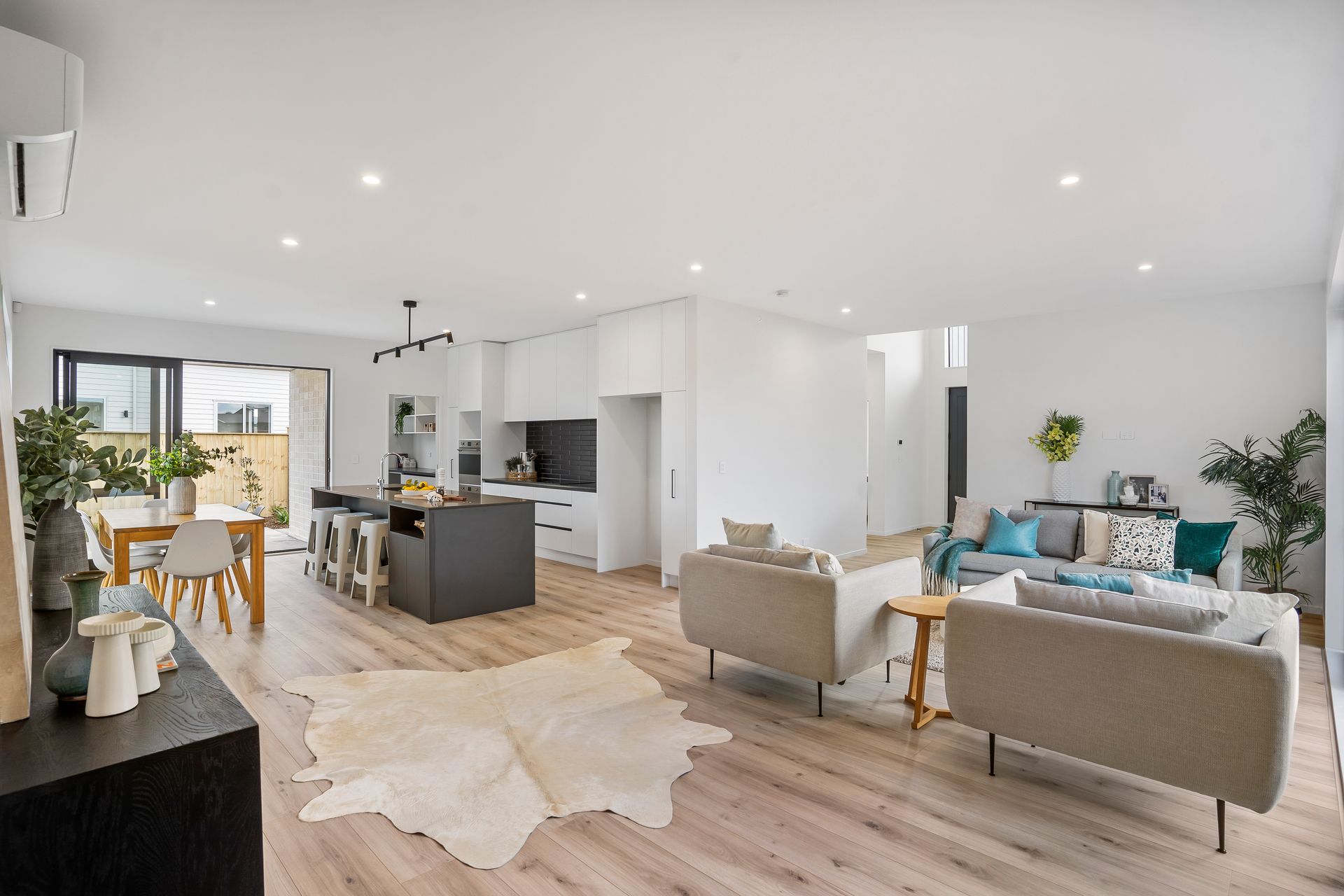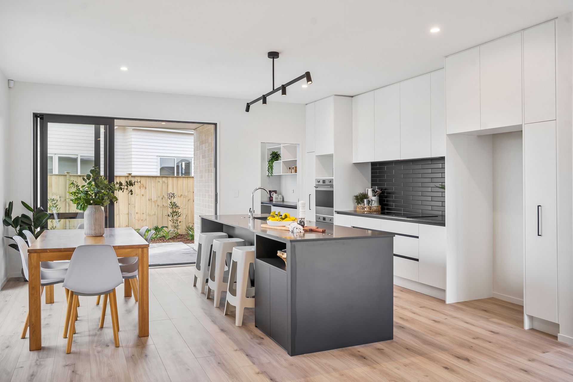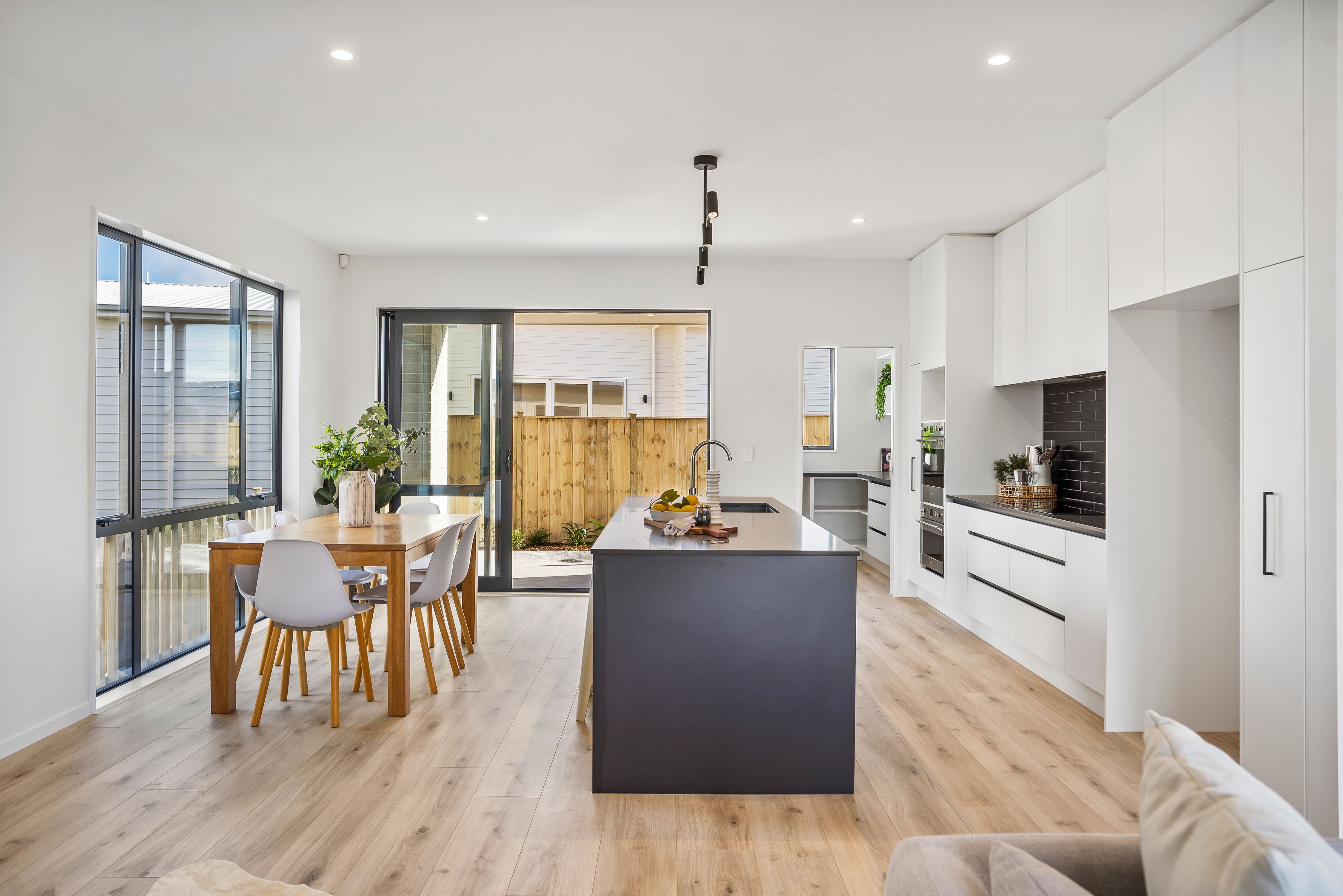 As you enter the property, you will be greeted by a beautifully designed interior that exudes both comfort and style. The open-plan living and dining area provide a perfect space for entertaining guests or spending quality time with your loved ones. In addition, the separate lounge can be closed off to create a cosy retreat, or throw the doors open to really take advantage of your entertaining and living options. The modern kitchen is equipped with high-quality appliances and ample storage space, making it a dream for any home chef.