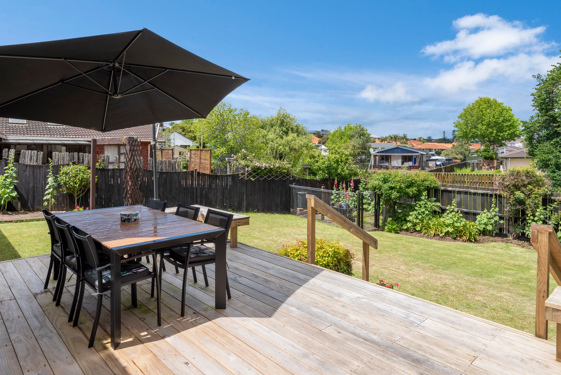 The home has both formal and family living spaces along with three bedrooms and two bathrooms. There is certainly an opportunity to add even more value with a little tickle up here and there, but overall you will feel good about your decision to take a look and see for yourself what's on offer. Some rooms on the ground level having the advantage of double glazing installed along with the beautiful front entrance door. Split over two levels with one bedroom downstairs, a full bathroom, and separate toilet, plus two very large bedrooms upstairs along with another tidy bathroom, providing more than enough space to spread out. The living areas flow into the kitchen and dining space and out to the new wooden deck that overlooks the extensive garden.